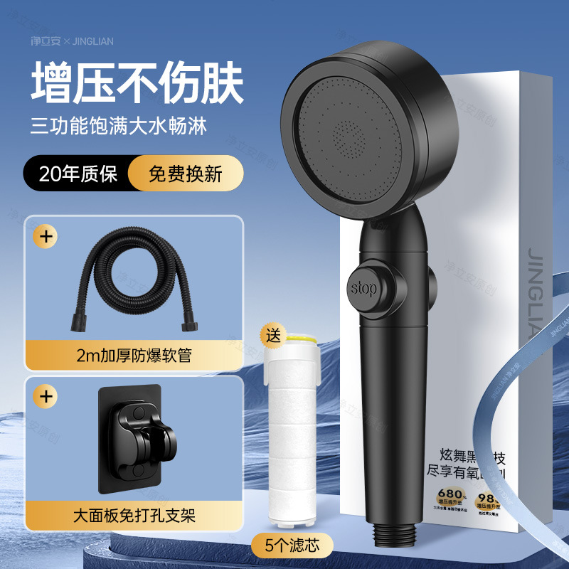 • [우아한 블랙 세트 4] 가압식 샤워기 + 방폭 호스 2.0m개(필터 엘리먼트 포함*5)