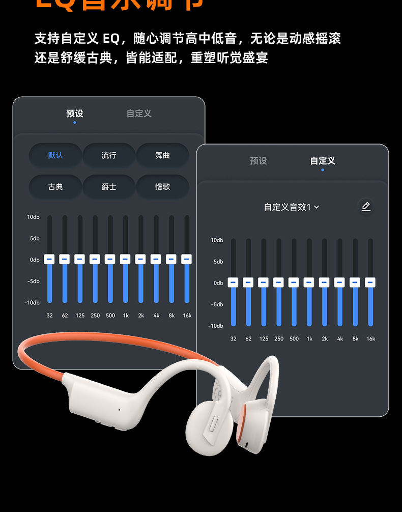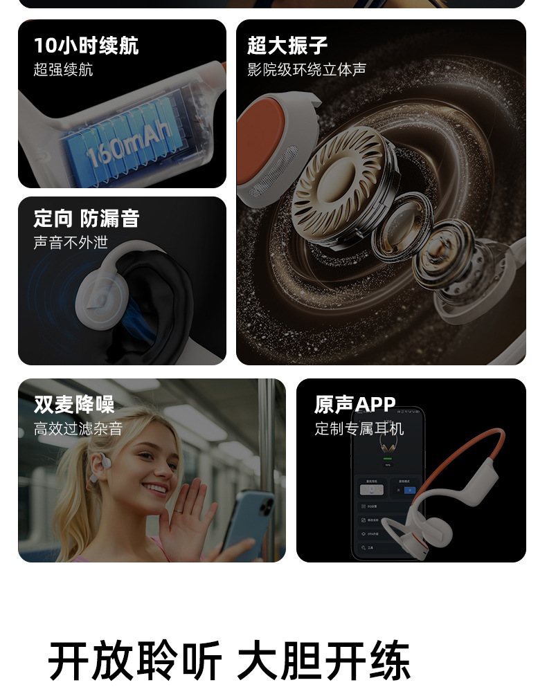 국경 간 k08 전문 사이클링 및 달리기 스포츠 귀에 들어가는 골격 전도 블루투스 헤드셋, 긴 배터리 수명, 통화 및 음악 듣기