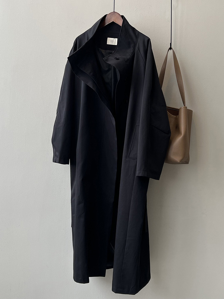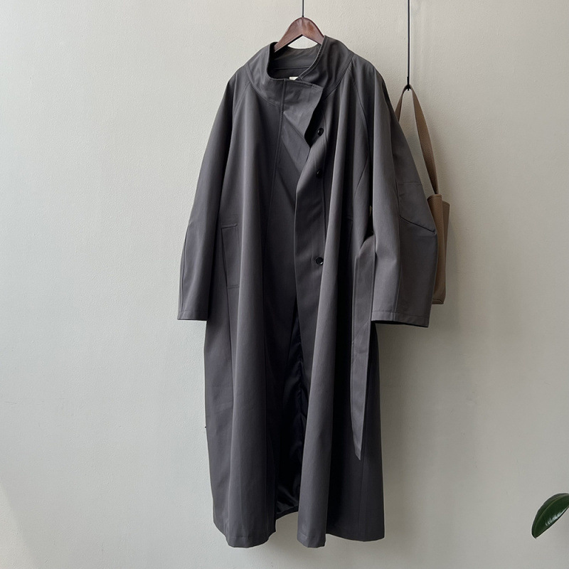 봄과 여름 2025 새로운 중간 길이의 윈드 브레이커 코트 여성 칼라 한국 스타일 느슨한 우아한 윈드 브레이커 영국 코트스토어 가기