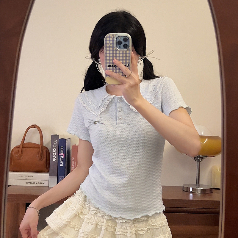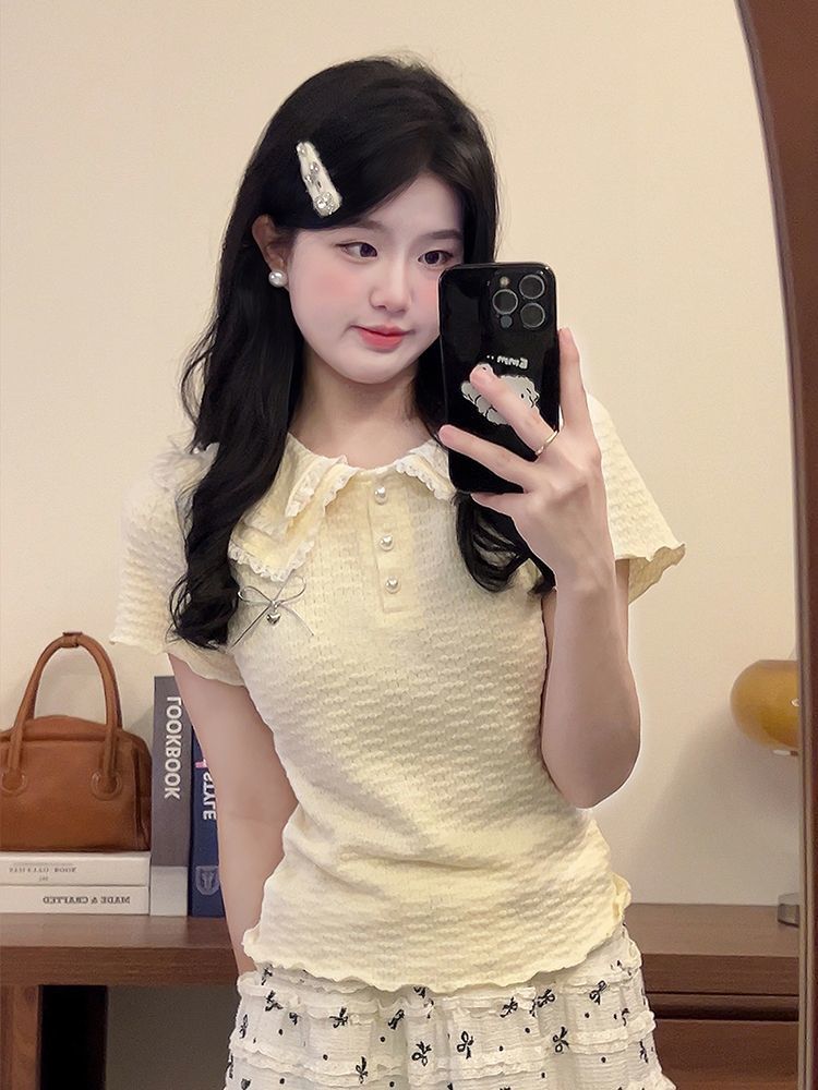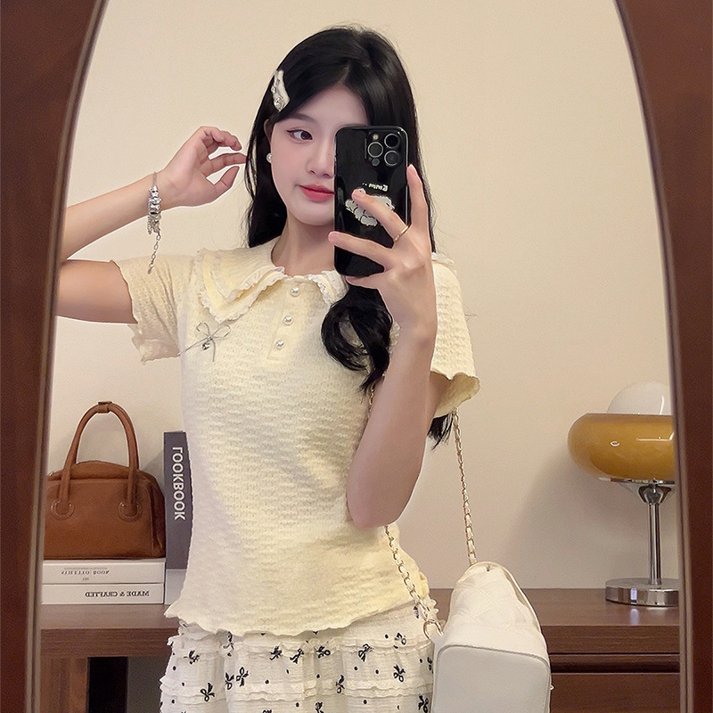 봄과 여름 2025 새로운 공주 칼라 폴로 셔츠 반팔 최고 여성 활 달콤한 핫 슬림 핏 슬리밍 쇼트 티셔츠
