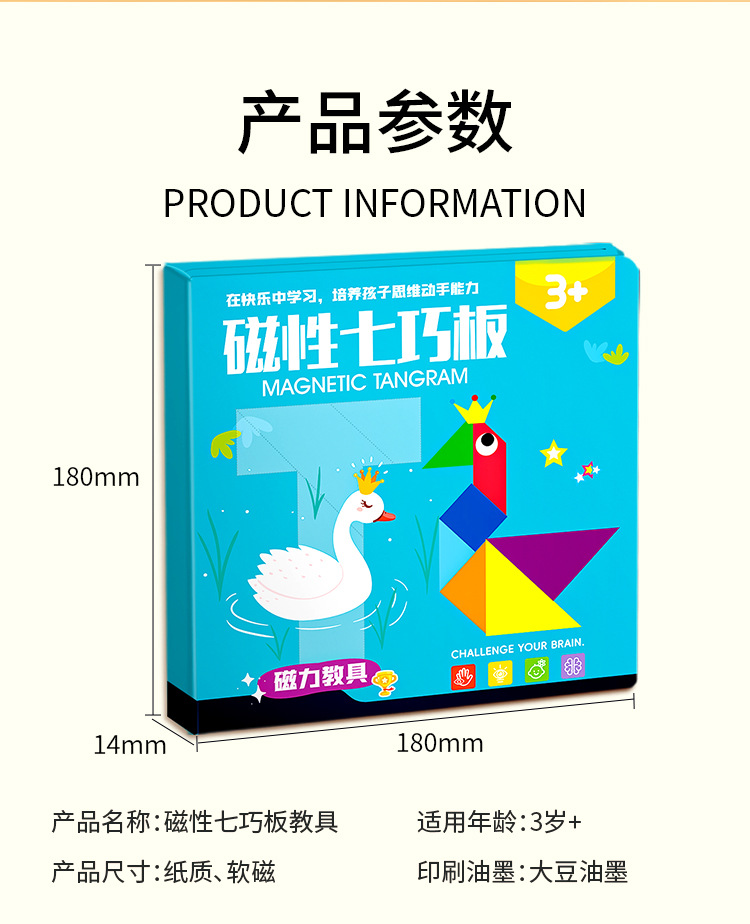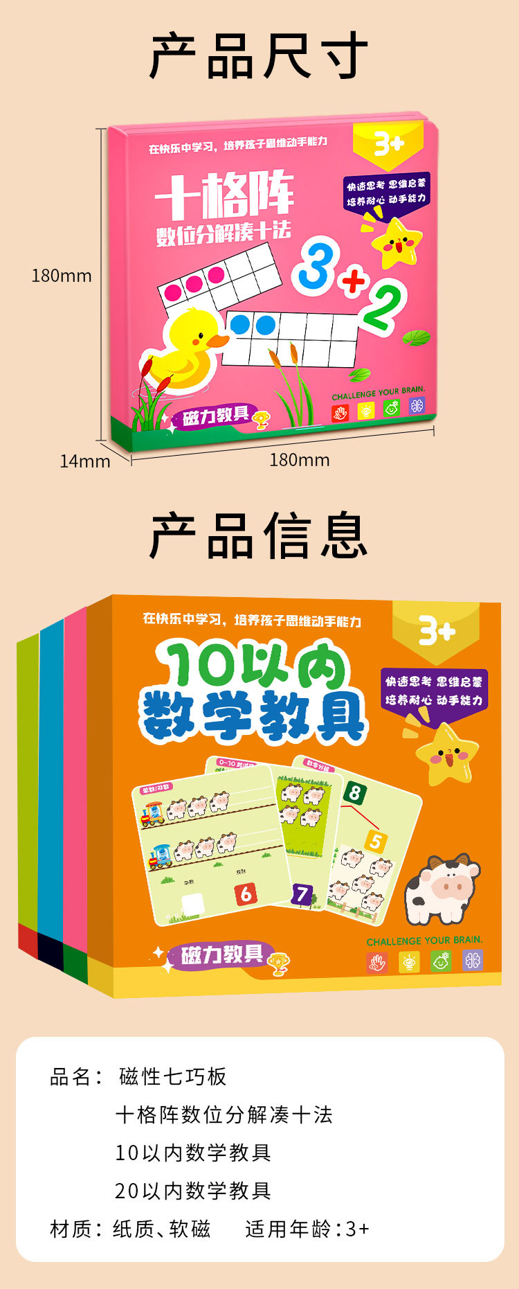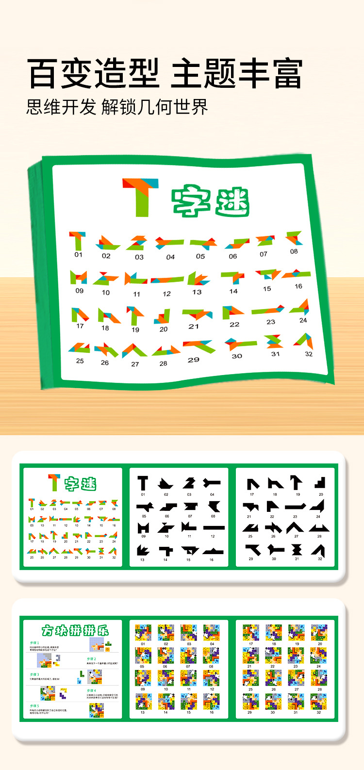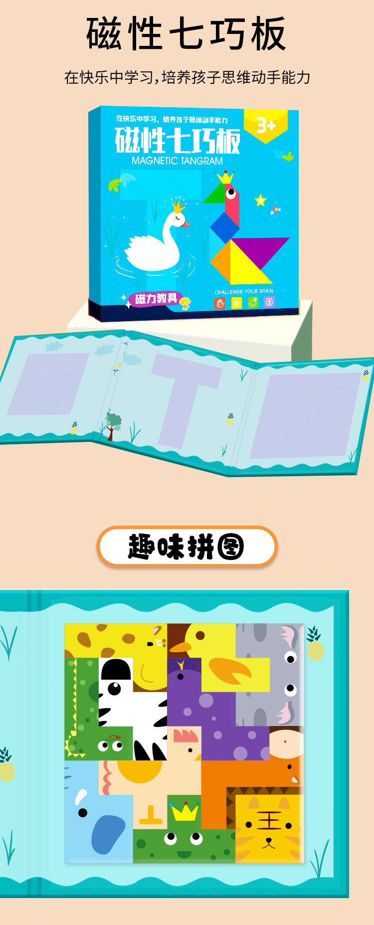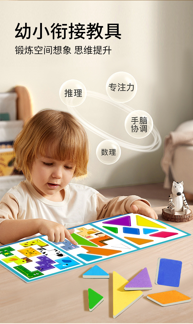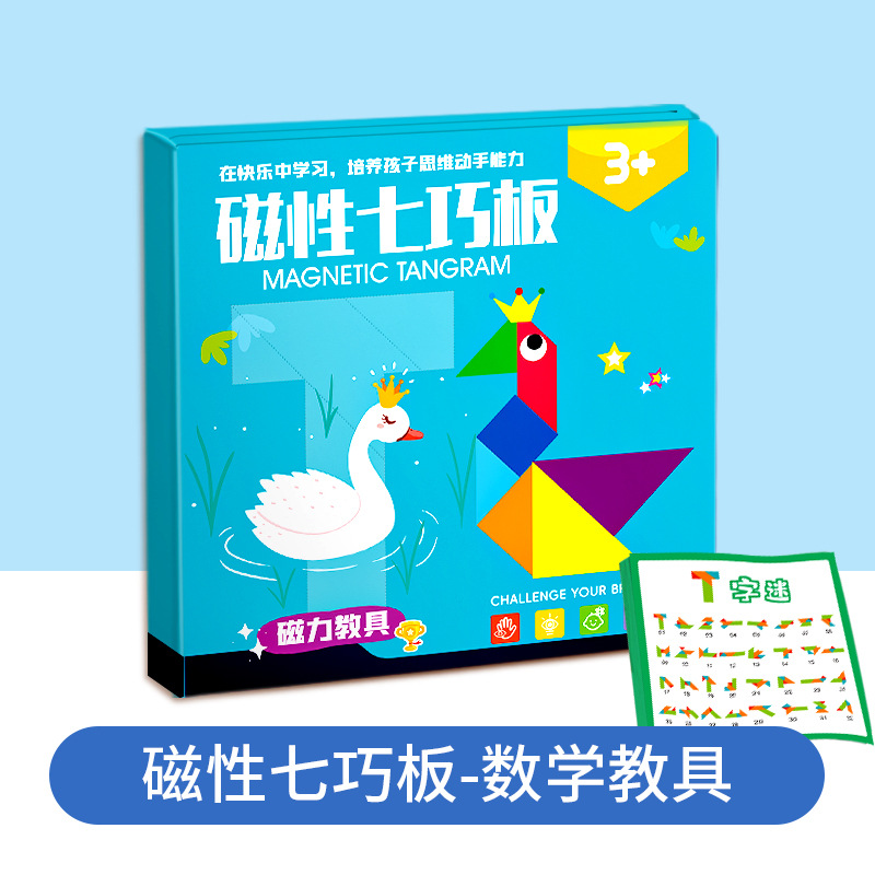 어린이 자석 칠교형 퍼즐 T자형 보드 자석 퍼즐 초등학생 수학 교구 유치원 계몽 교육용 장난감스토어 가기
