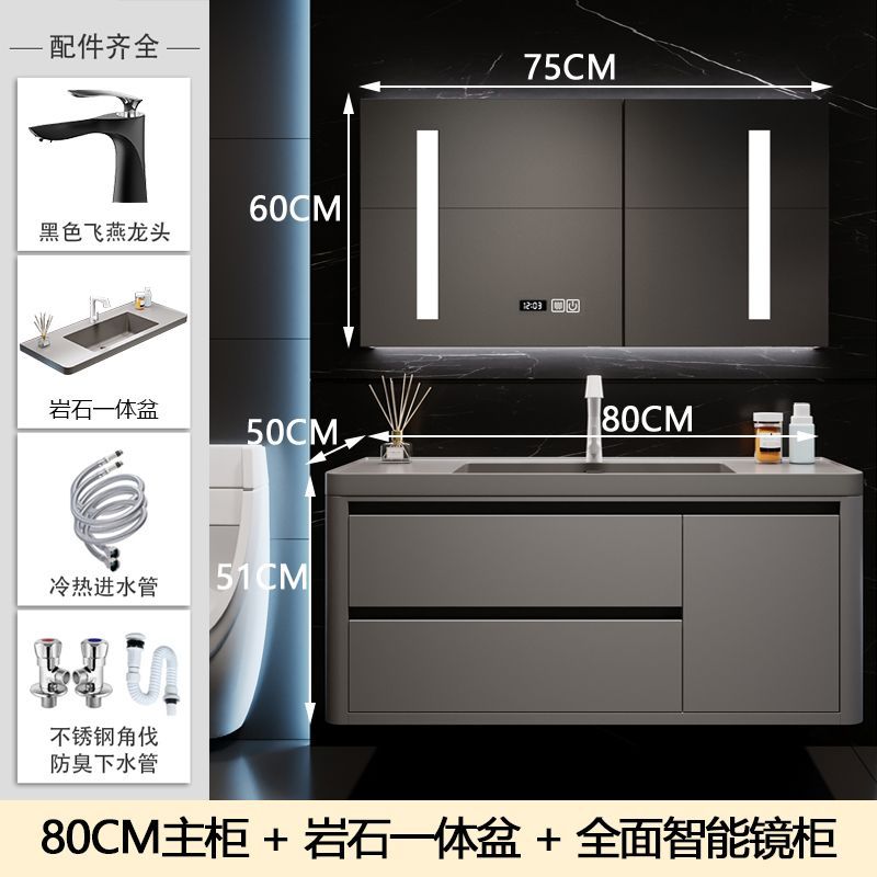 • 80CM 종합 스마트 거울 캐비닛 아크 록 통합 세면대