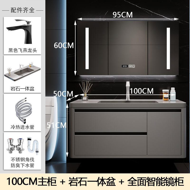 • 100CM 종합 스마트 거울 캐비닛 아크 록 통합 세면대