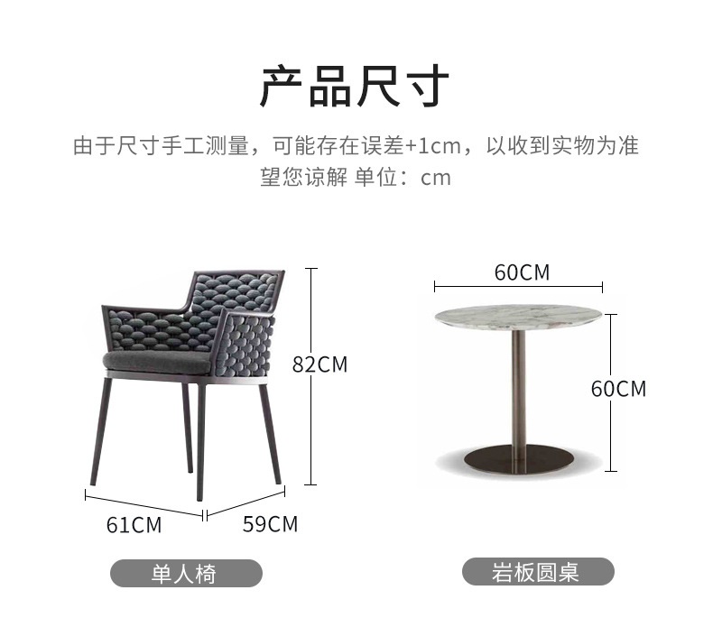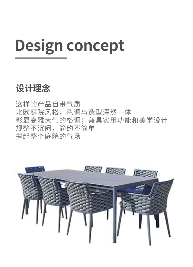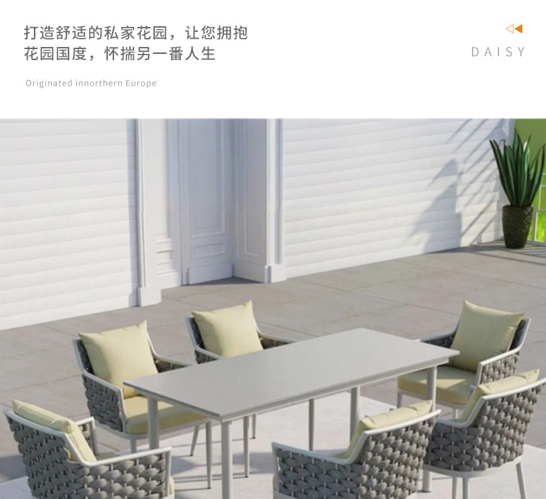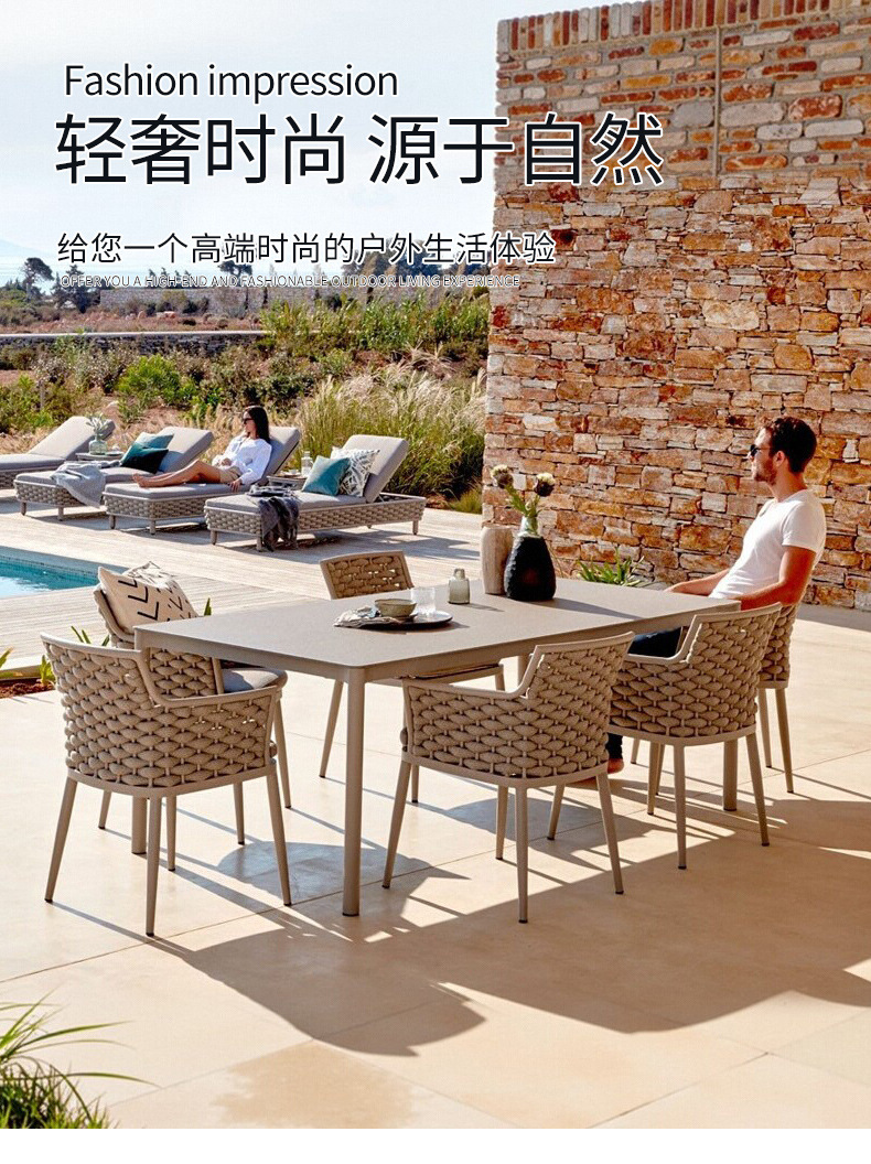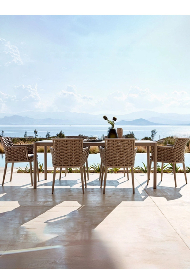 야외 로프 테이블과 의자, 안뜰 정원 슬레이트 식탁과 의자, 호텔 발코니 야외 방수 고급 조합 가구스토어 가기