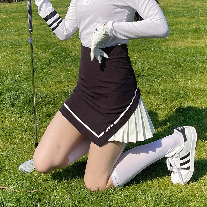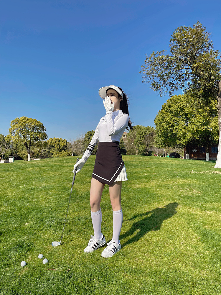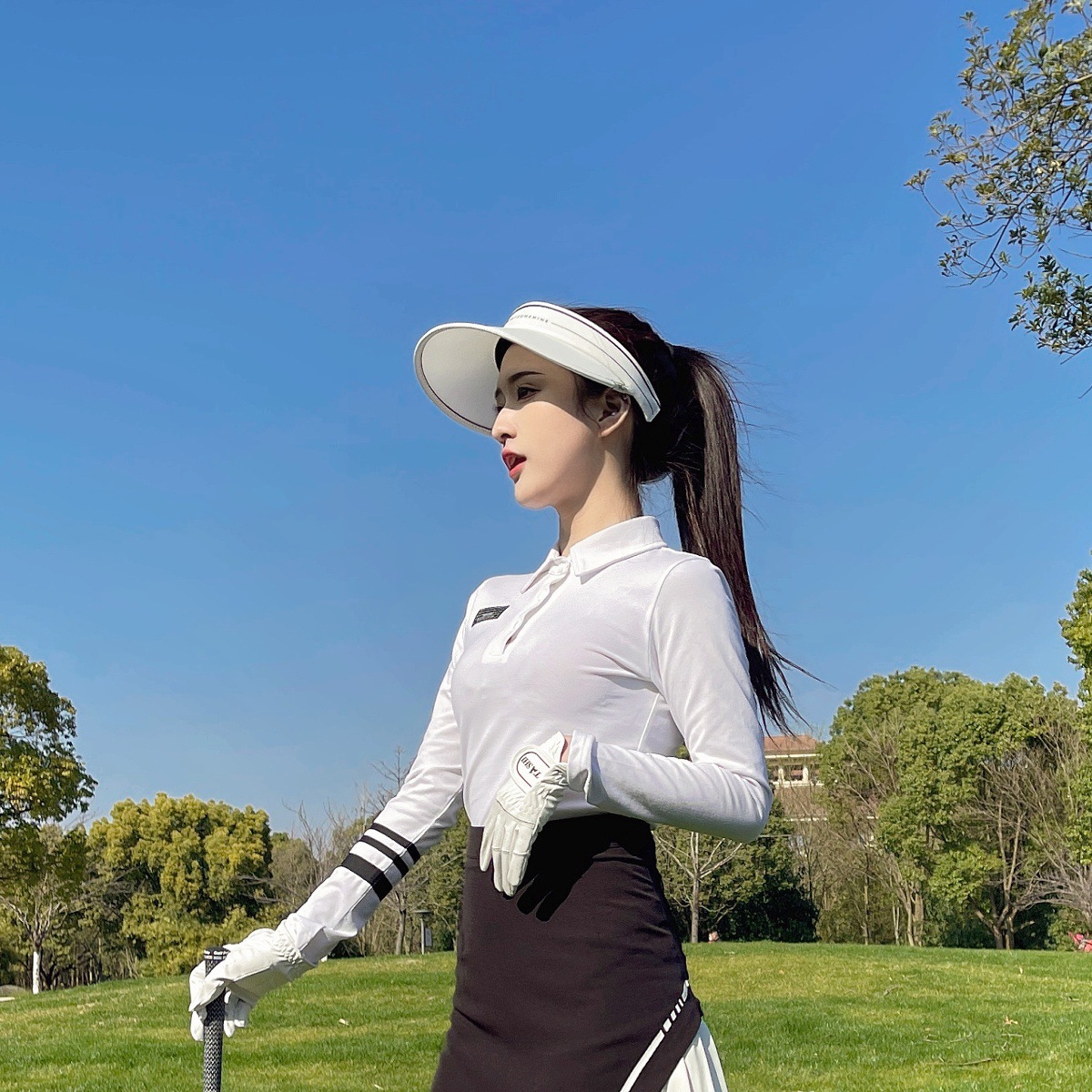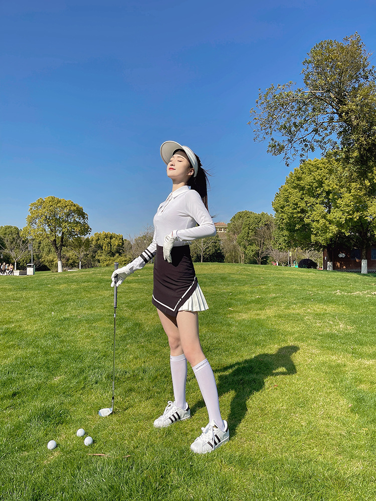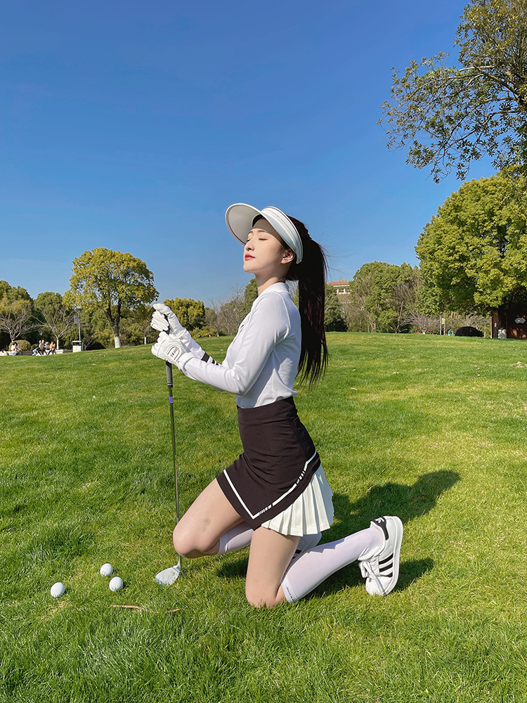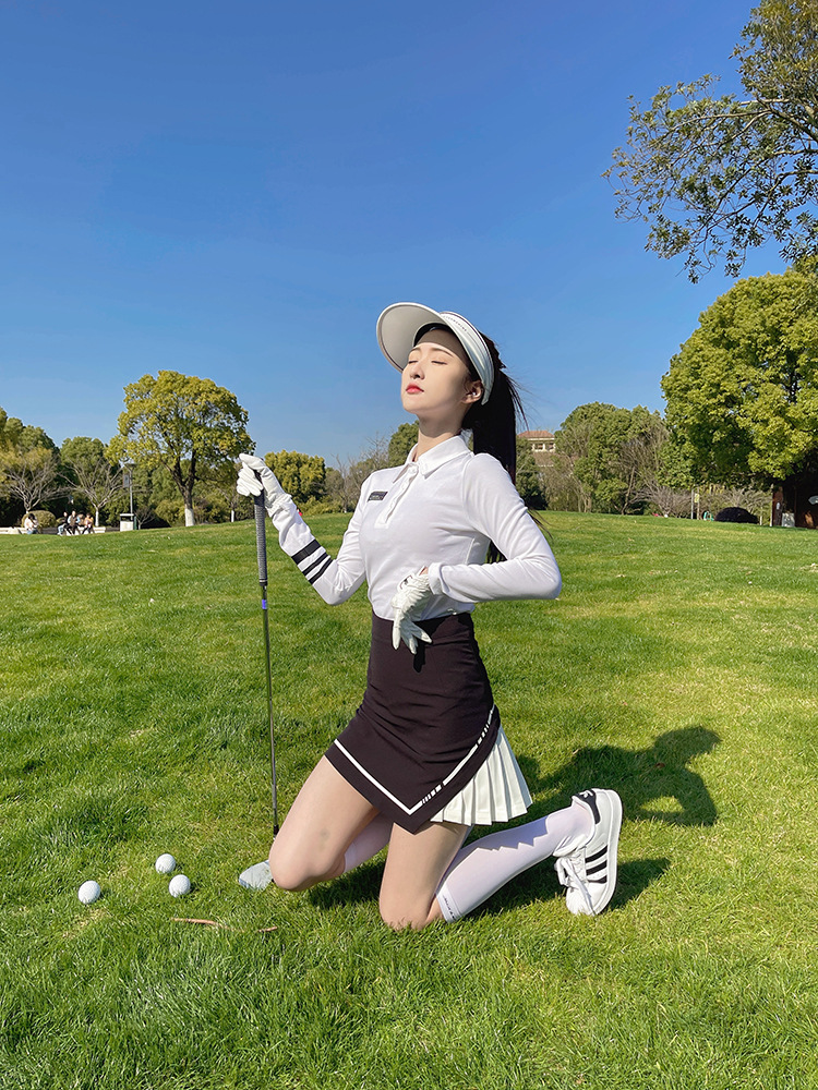 골프웨어 여성 정장 여름 신작 화이트 폴로 긴팔 탑 슬리밍 속건성 플리츠 스커트스토어 가기