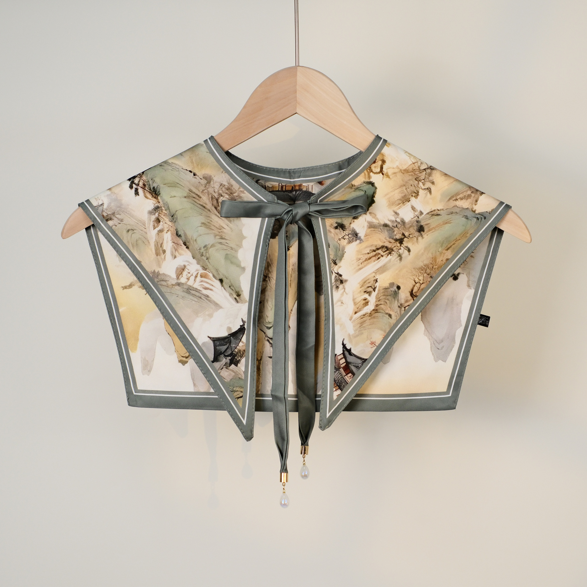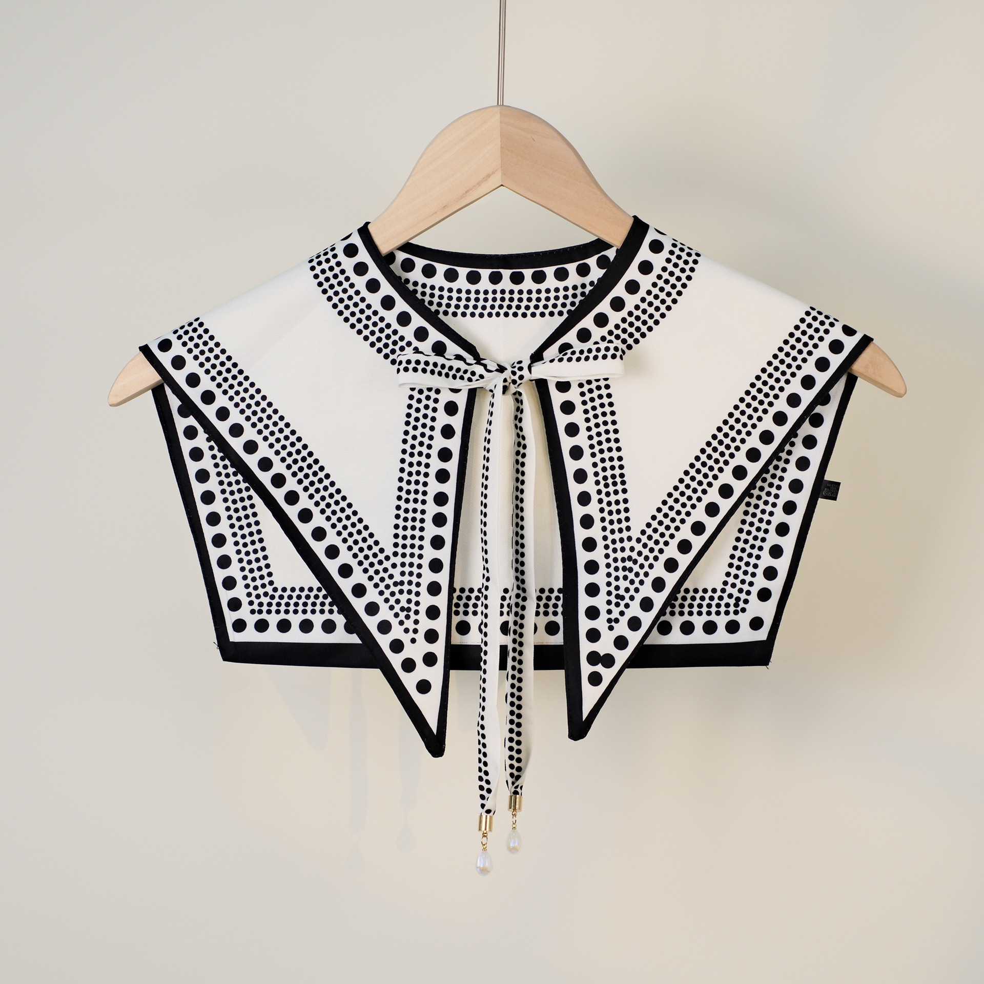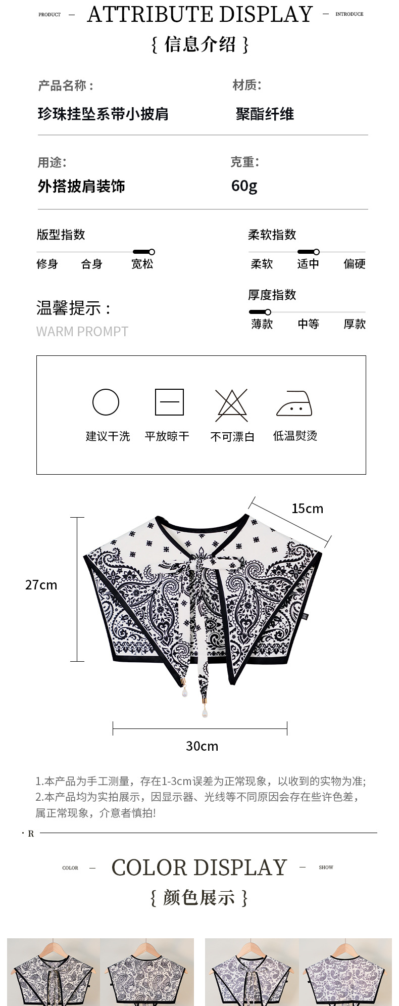 여성을위한 프랑스 복고풍 진주 펜던트 유화 스타일 레이스 업 숄 봄, 가을 얇은 양복 조끼 가짜 칼라 목 보호대