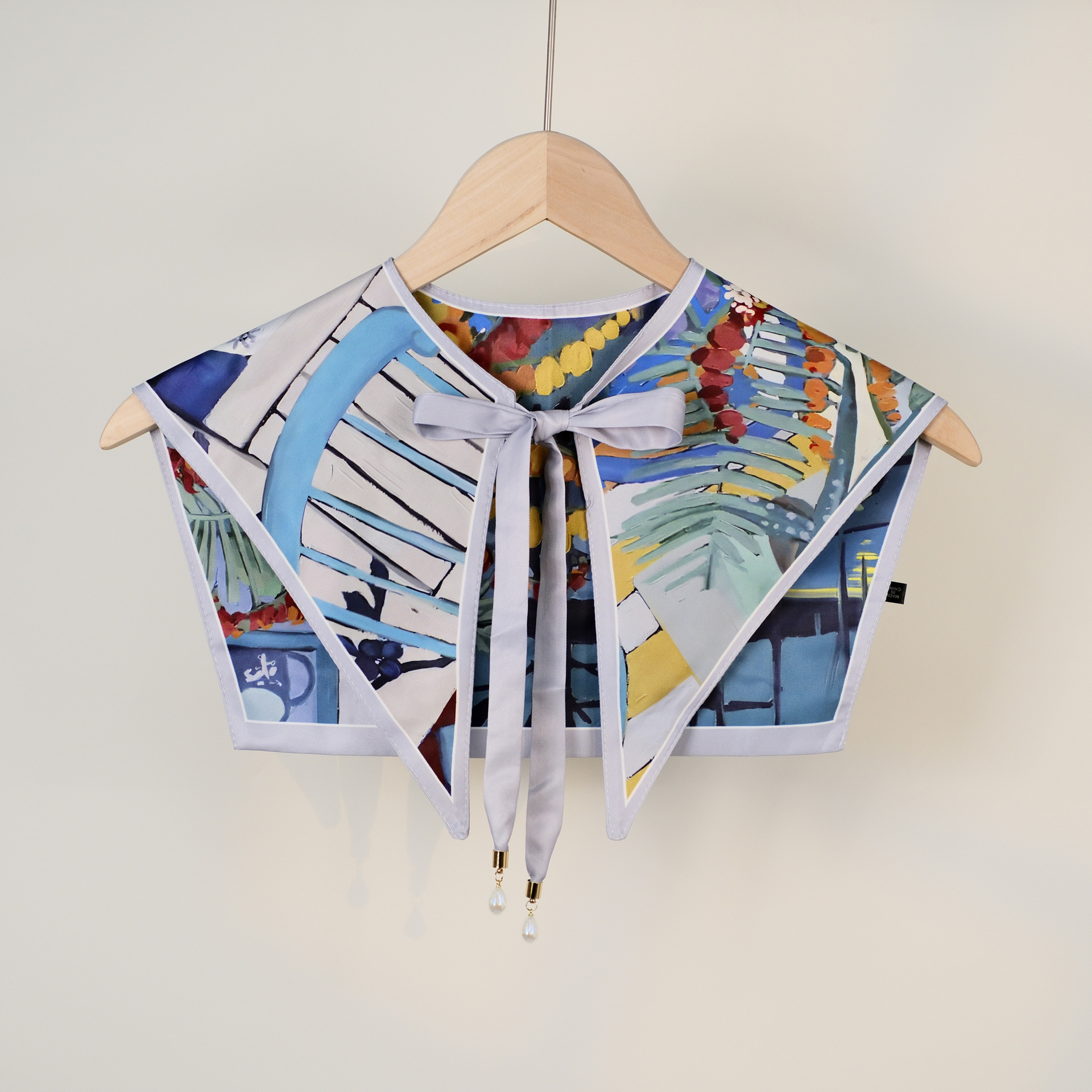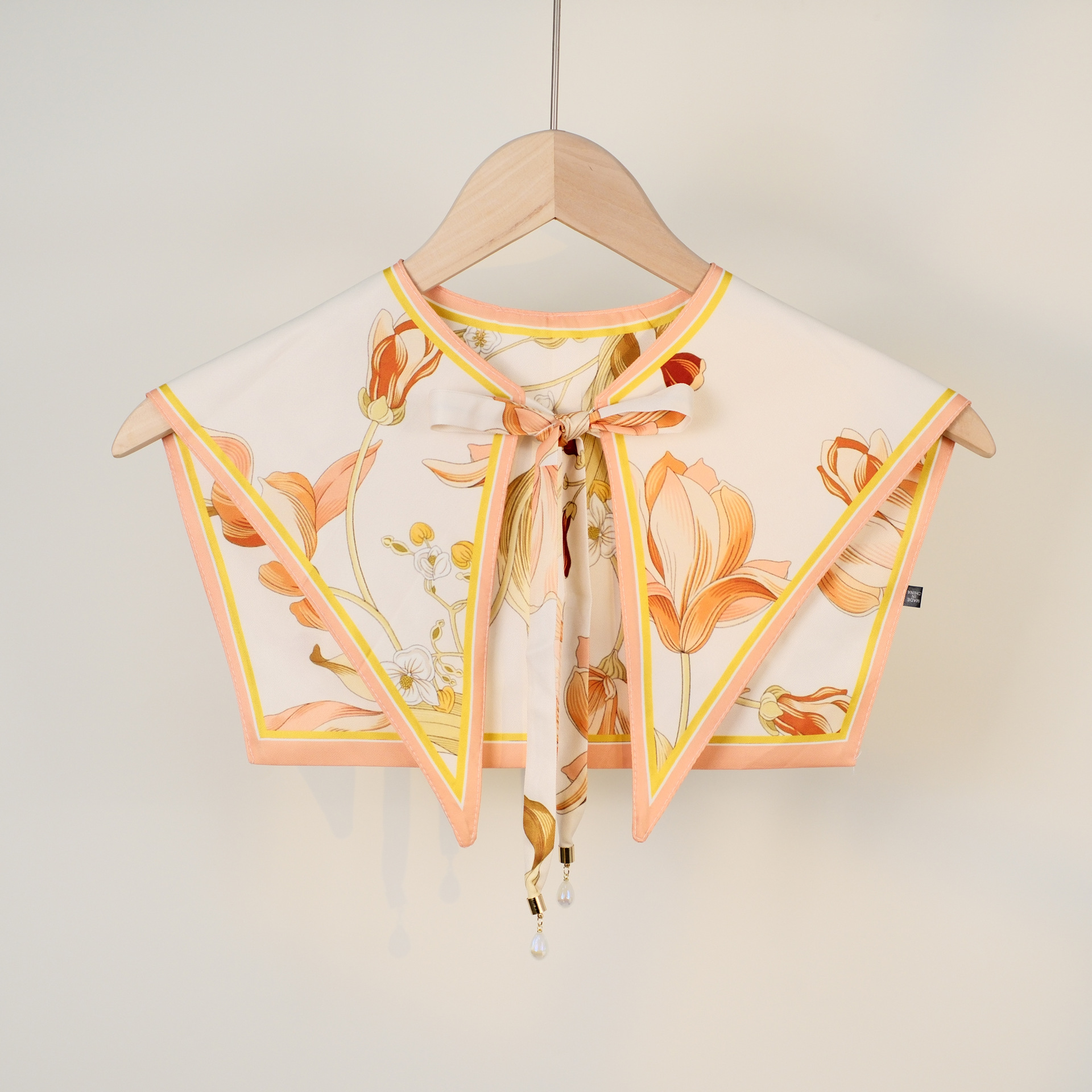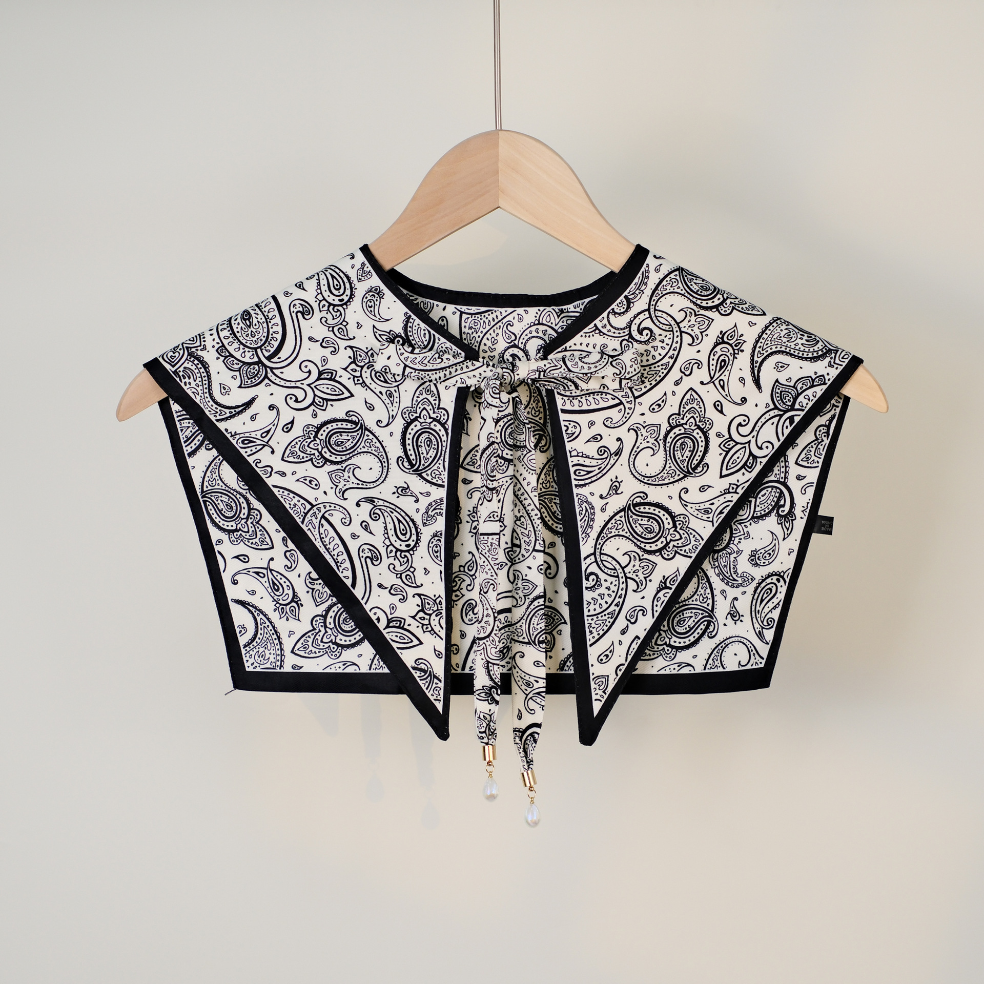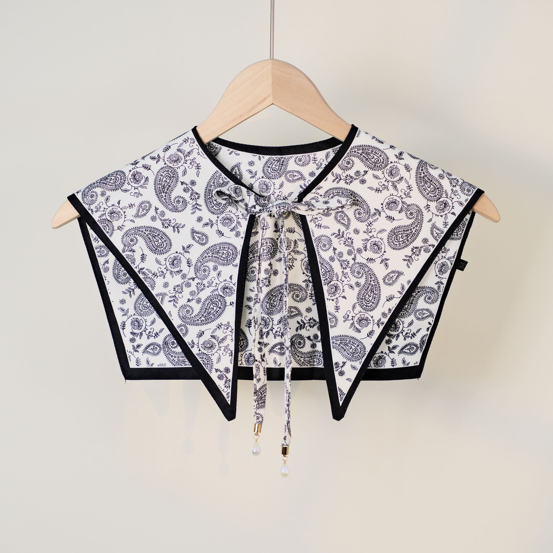 여성을위한 프랑스 복고풍 진주 펜던트 유화 스타일 레이스 업 숄 봄, 가을 얇은 양복 조끼 가짜 칼라 목 보호대스토어 가기