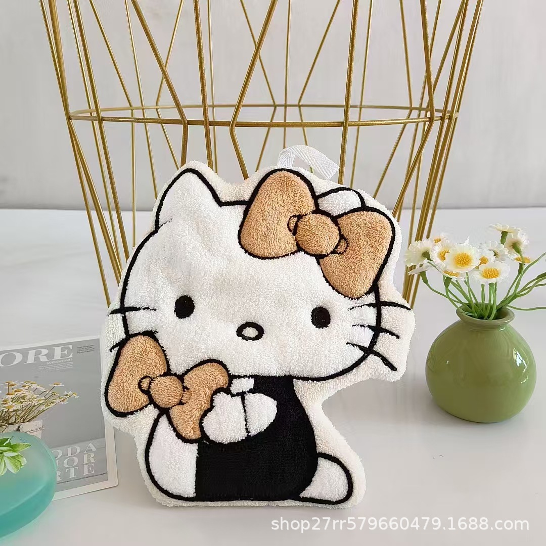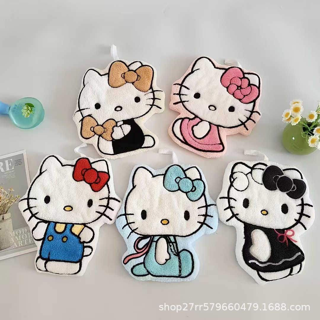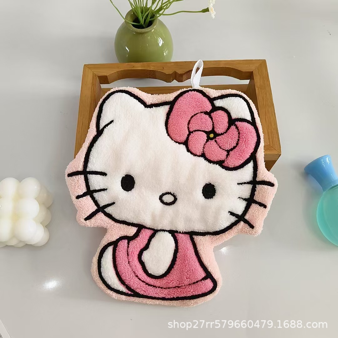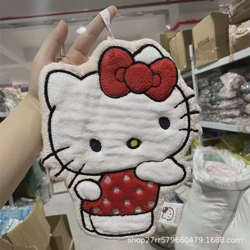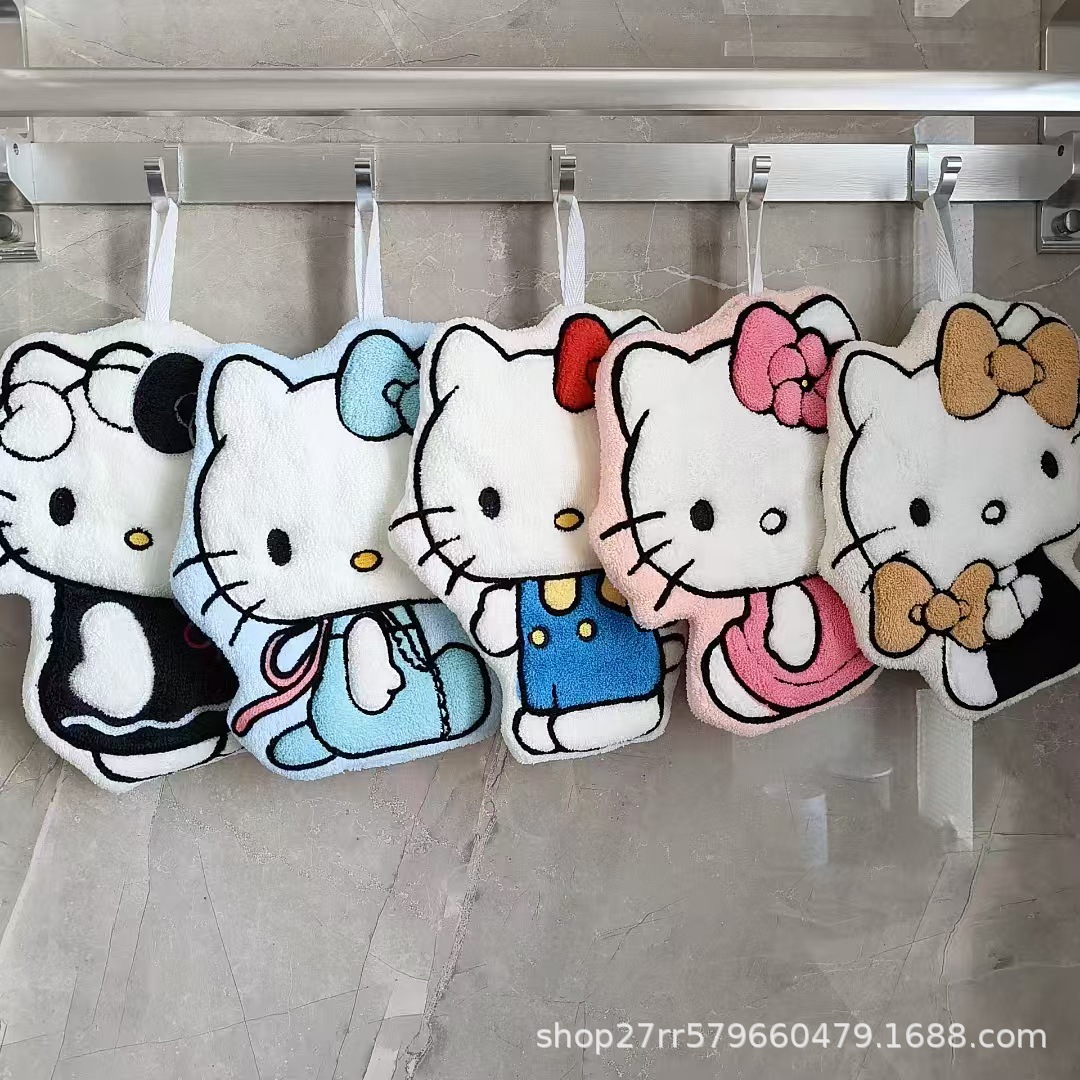 새로운 헬로키티 두꺼운 핸드 타올은 산호 벨벳으로 걸 수 있으며 물을 흡수하고 속건성이 있으며 보푸라기가 없는 가정용 침실 타월입니다.스토어 가기