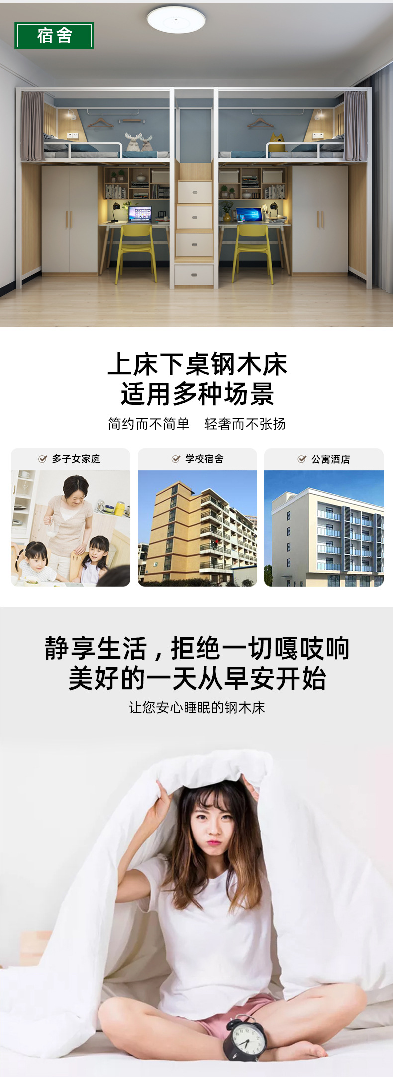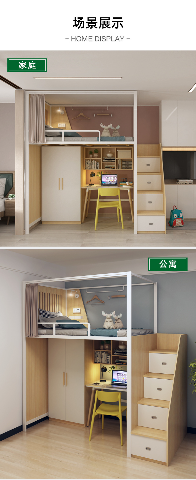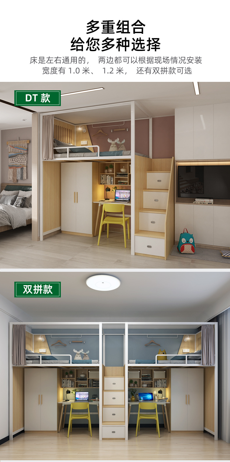 공장 도매 민박 호텔 철제 침대 어린이 침실 로프트 침대 가정용 상하 겸용 침대 테이블 일체형 침대스토어 가기
