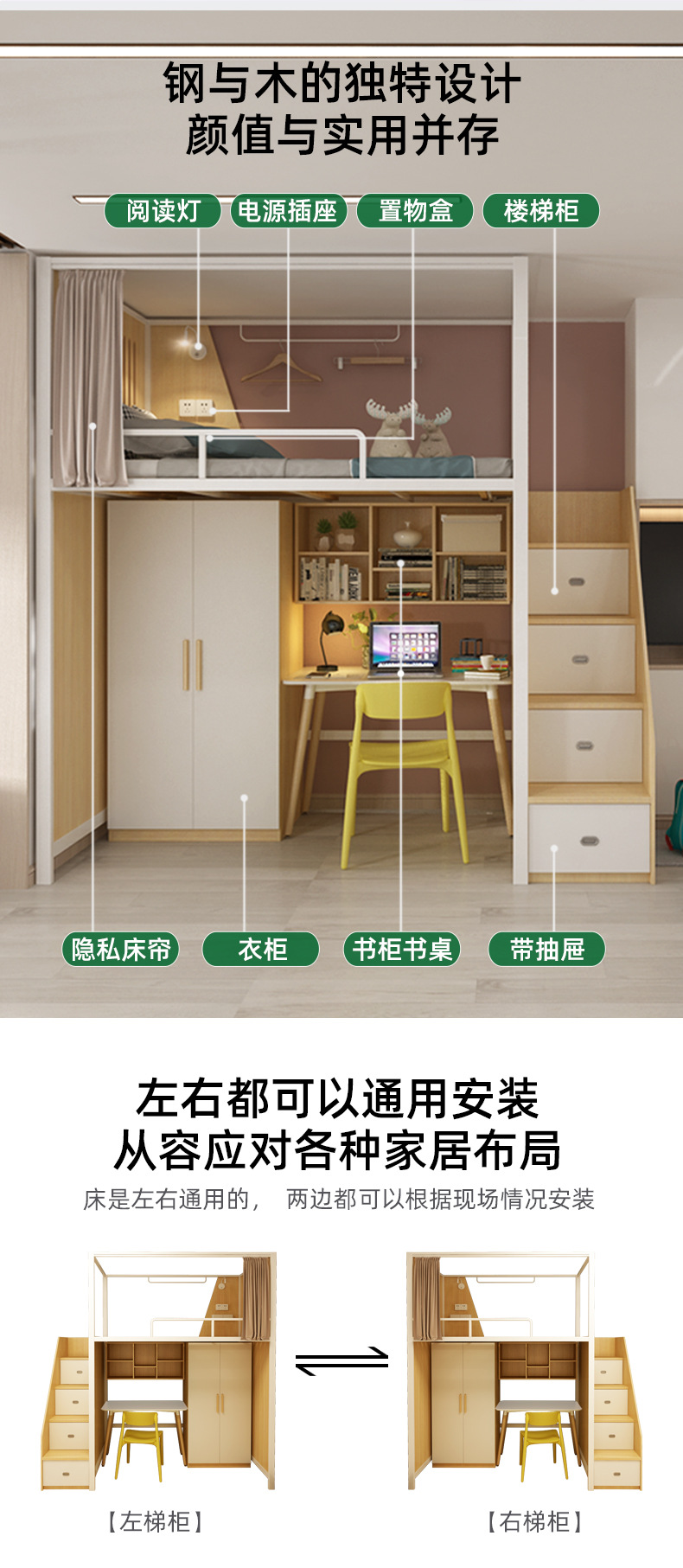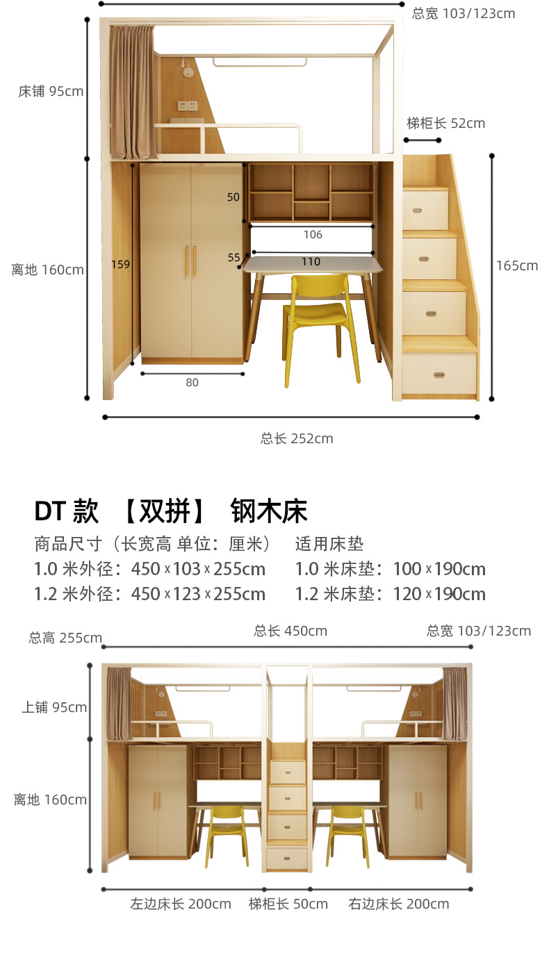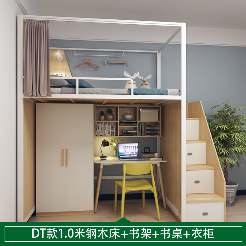 • DT [더블 스타일] 1.2m 철제 원목 침대 + 옷장 + 책장 + 이מס 테이블