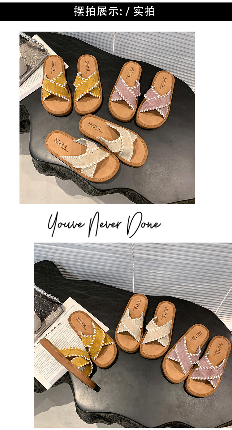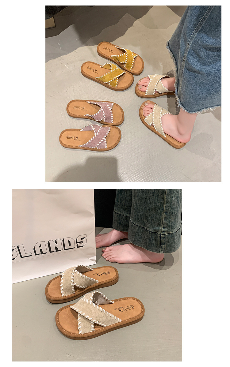 슬리퍼 2025 여름 신작 플랫 바닥 크로스 슬리퍼 여성 캐주얼 패션 다재다능한 외부 게으른 슬리퍼스토어 가기
