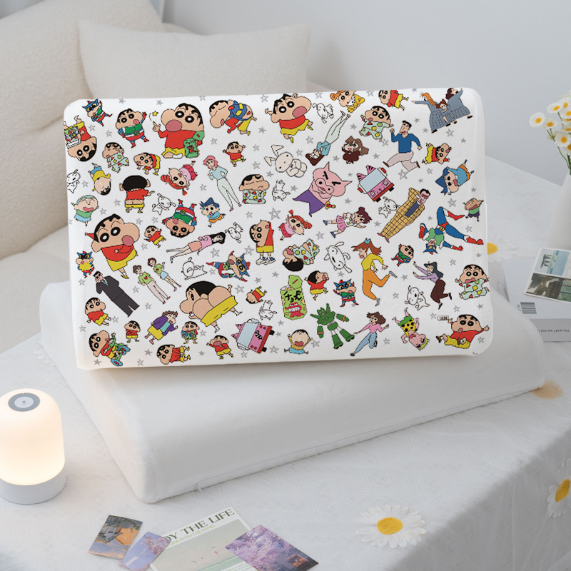 신상품 크레용신짱 라텍스 베개 어린이용 밀크 벨벳 베개 커버 30x50CM 싱글 베개 커버 학생 기숙사 베개 커버