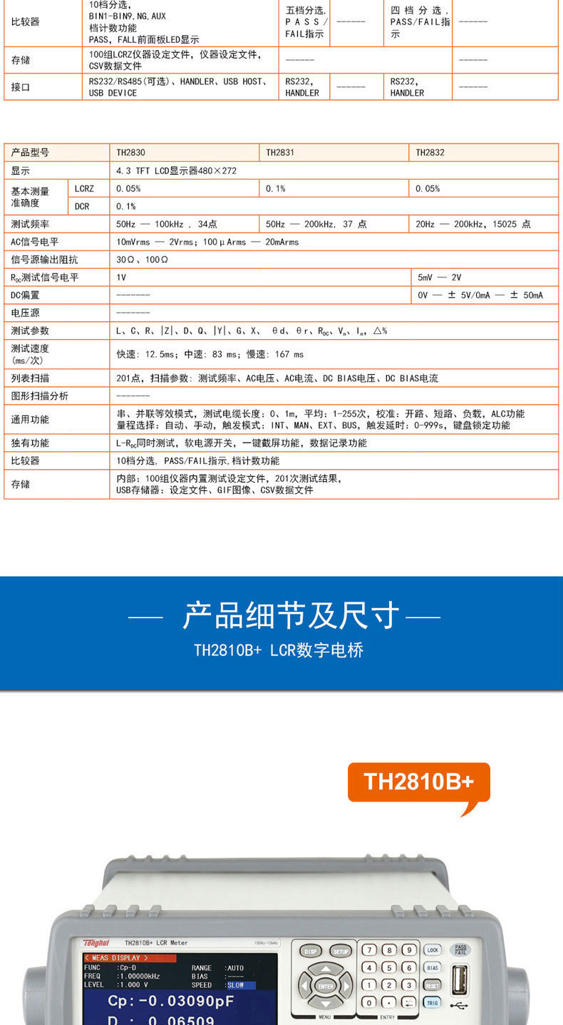 Tonghui LCR 디지털 브리지 TH2810B TH2810B + 커패시턴스 저항 인덕턴스 부품 측정기 다중 주파수스토어 가기