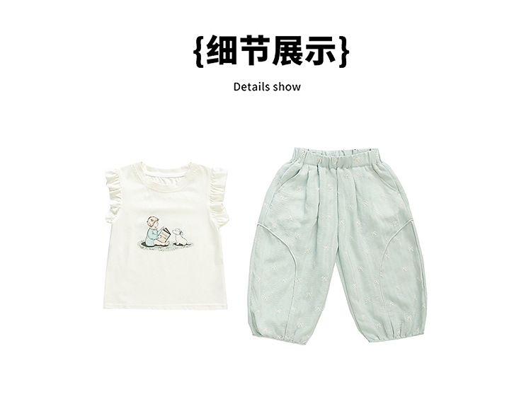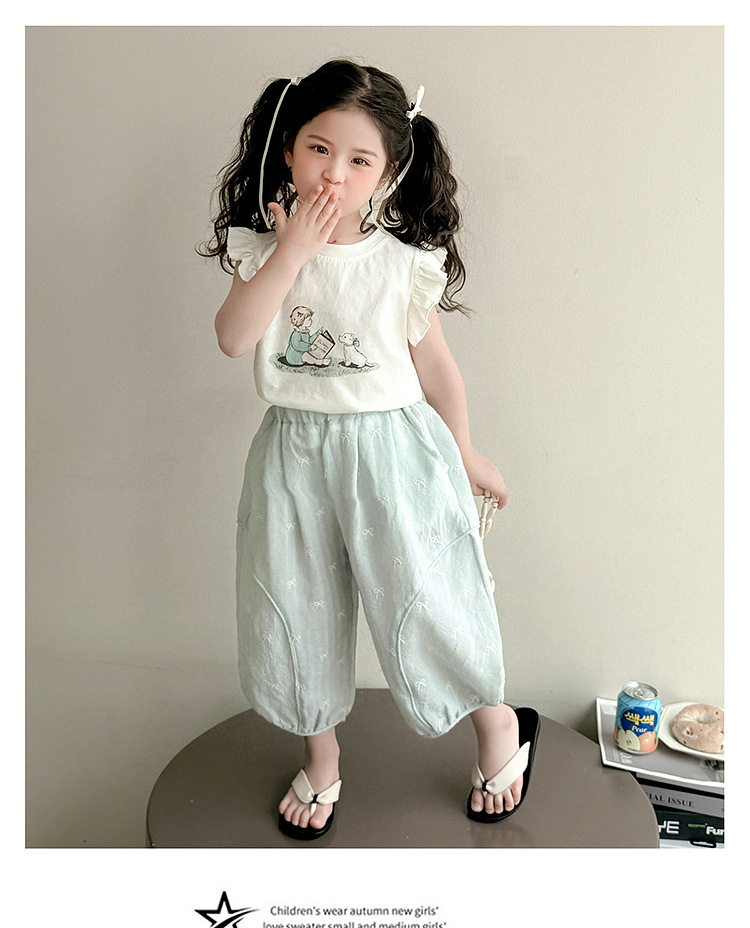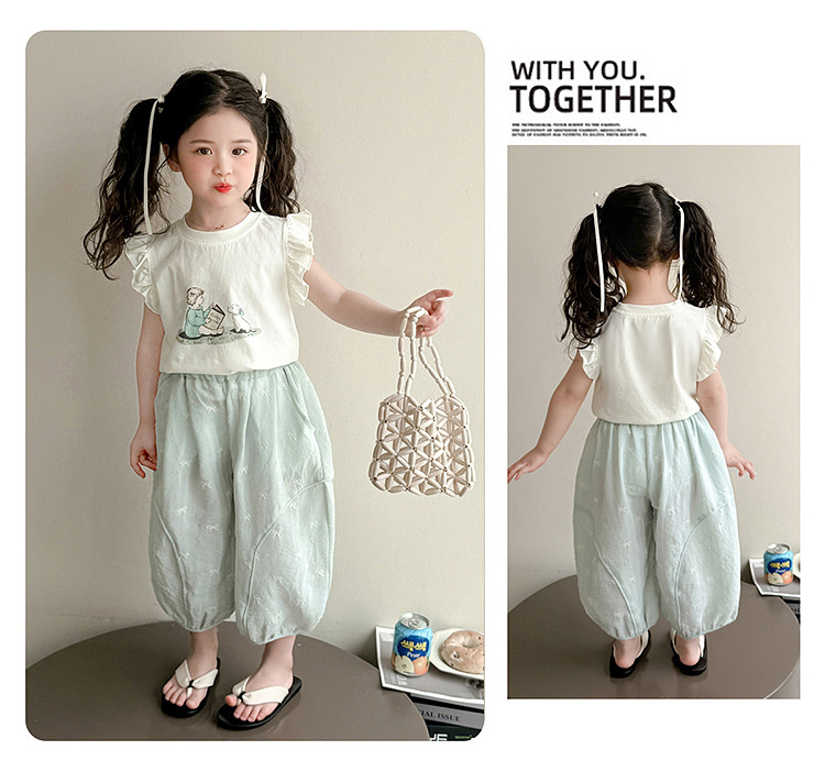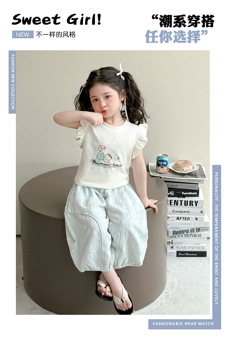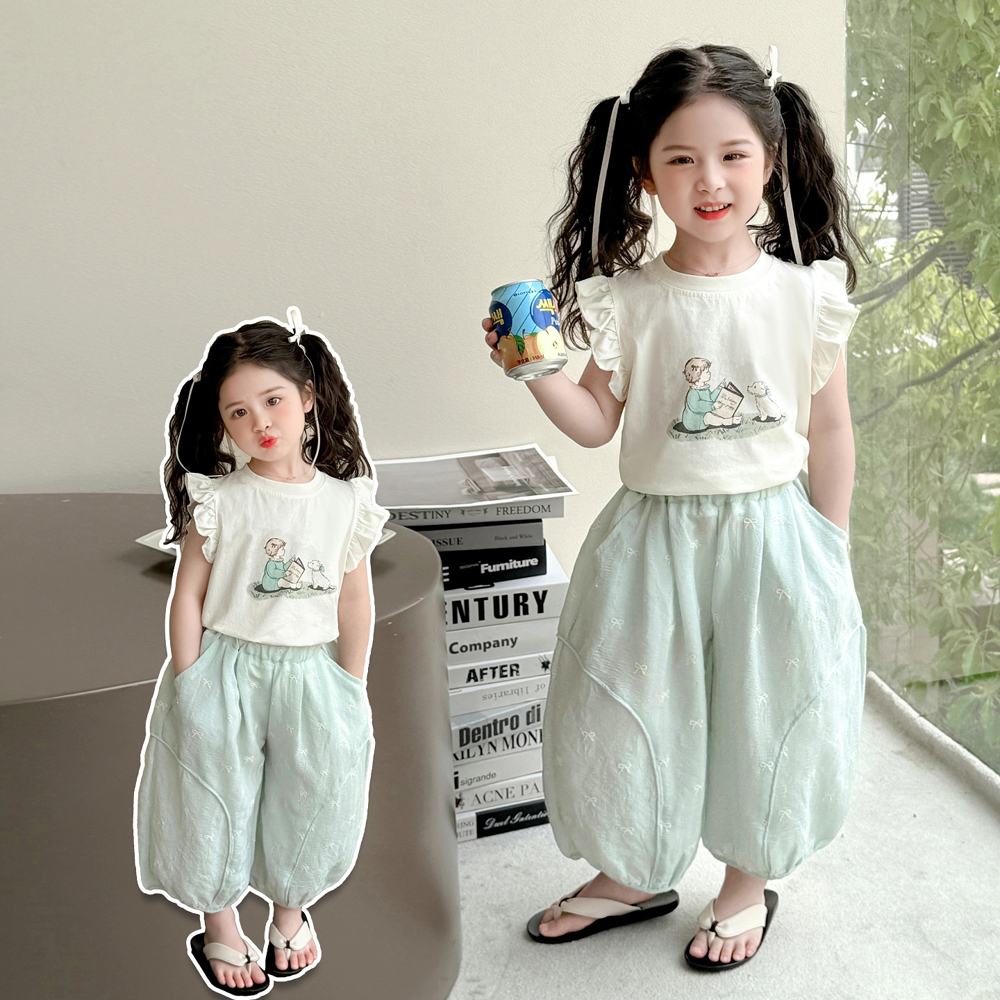 여아 여름 정장 2025 새로운 스타일의 어린 소녀와 아기 반팔 아동 바지 유행 여름 투피스 세트스토어 가기