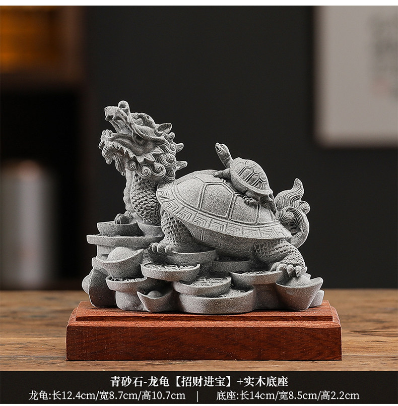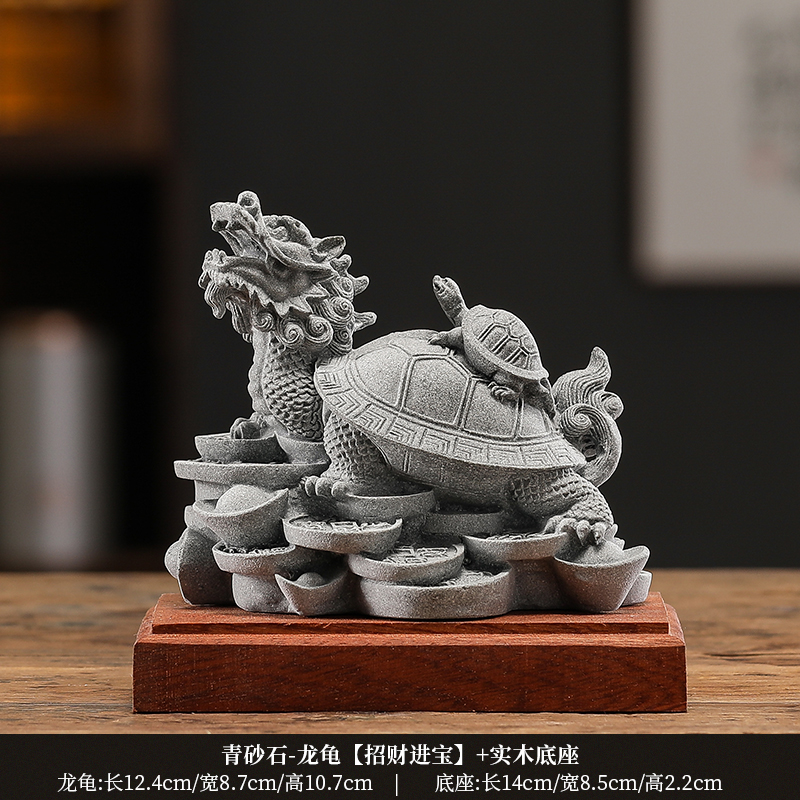 • 9 녹색 사암 - 용 거북이 [부와 보물을 유치] + 단단한 나무 베이스