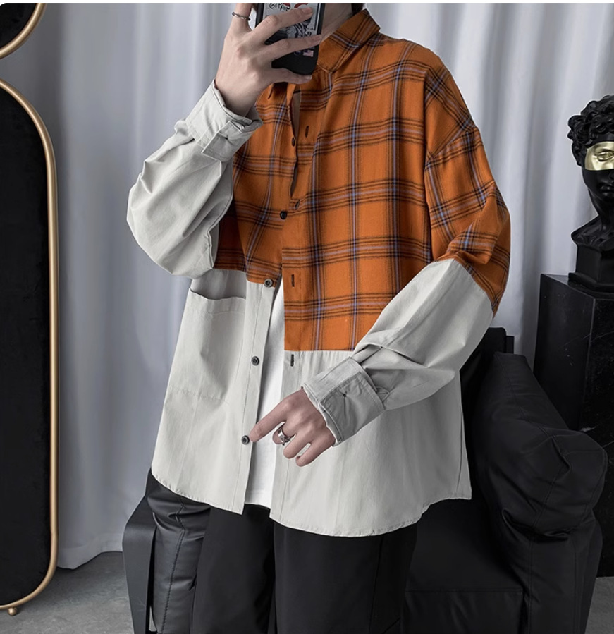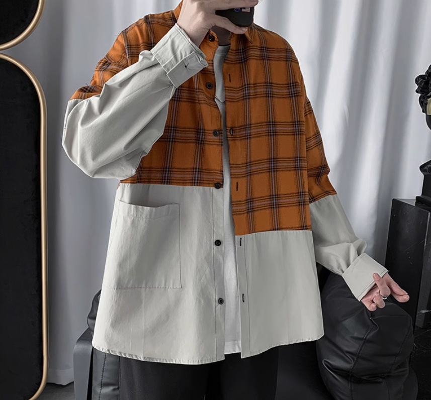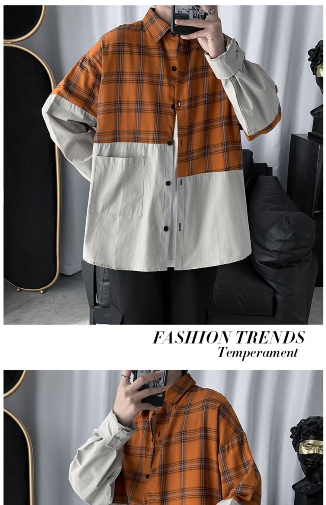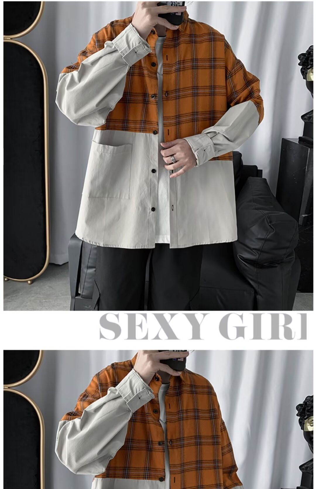 2025 새로운 봄과 여름 남자 격자 무늬 긴팔 셔츠 남자 한국 유행 잘 생긴 남자 홍콩 스타일 일본 재킷스토어 가기