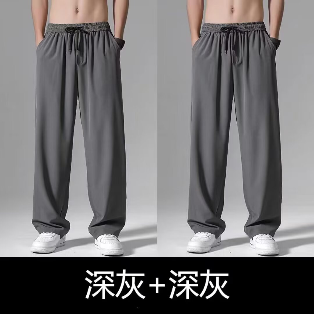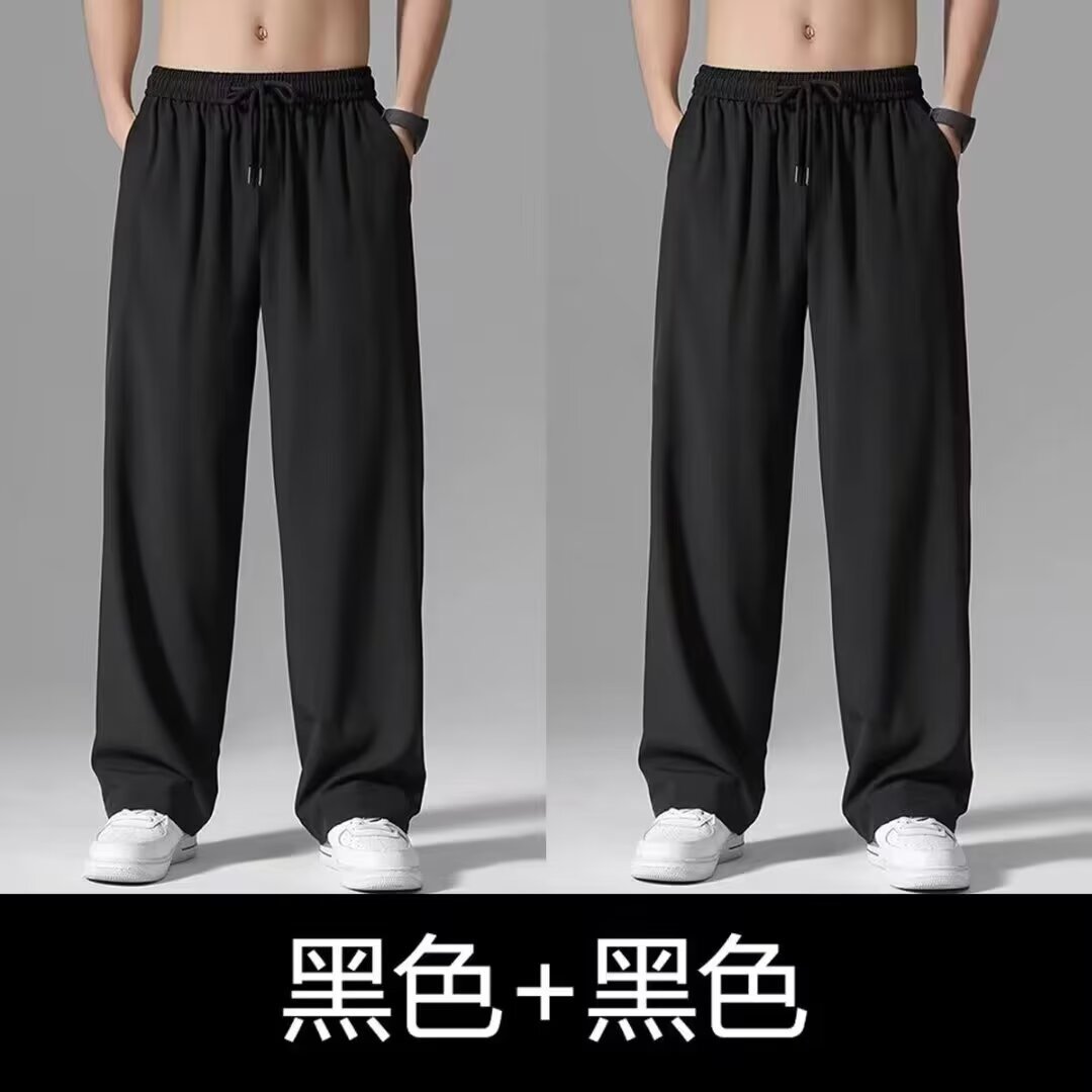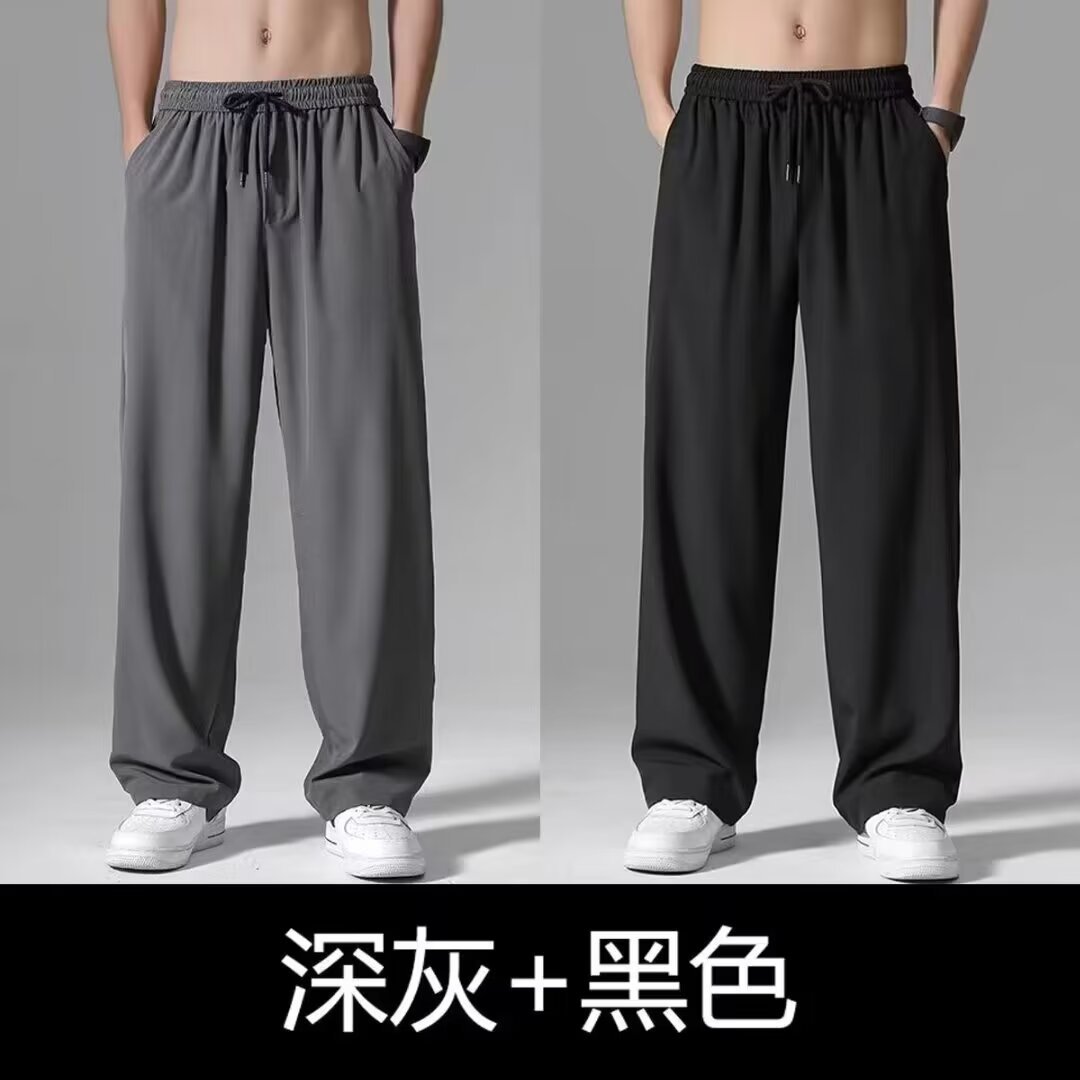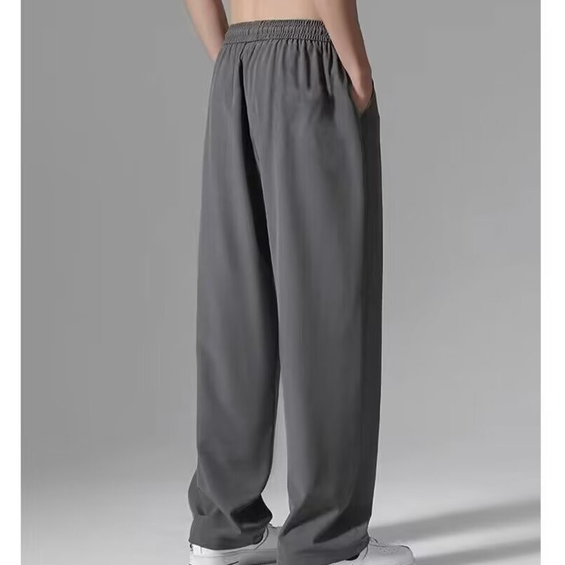 남성용 바지 2025 신상 여름 스트레이트 아이스 실크 캐주얼 바지 루즈한 얇은 소년 스포츠 바지 와이드 레그 바지