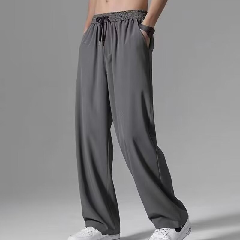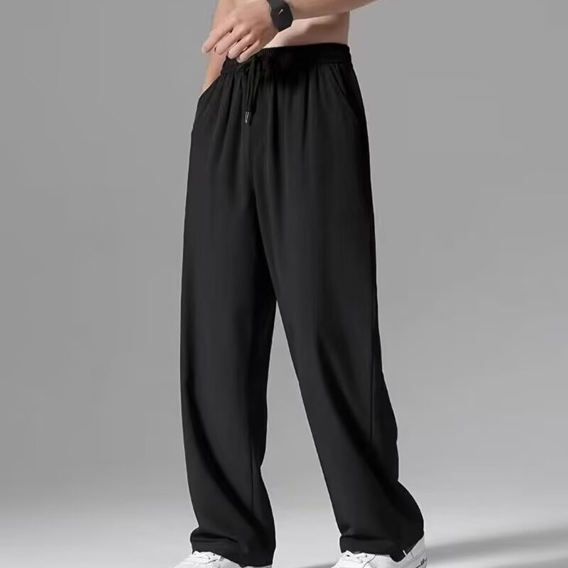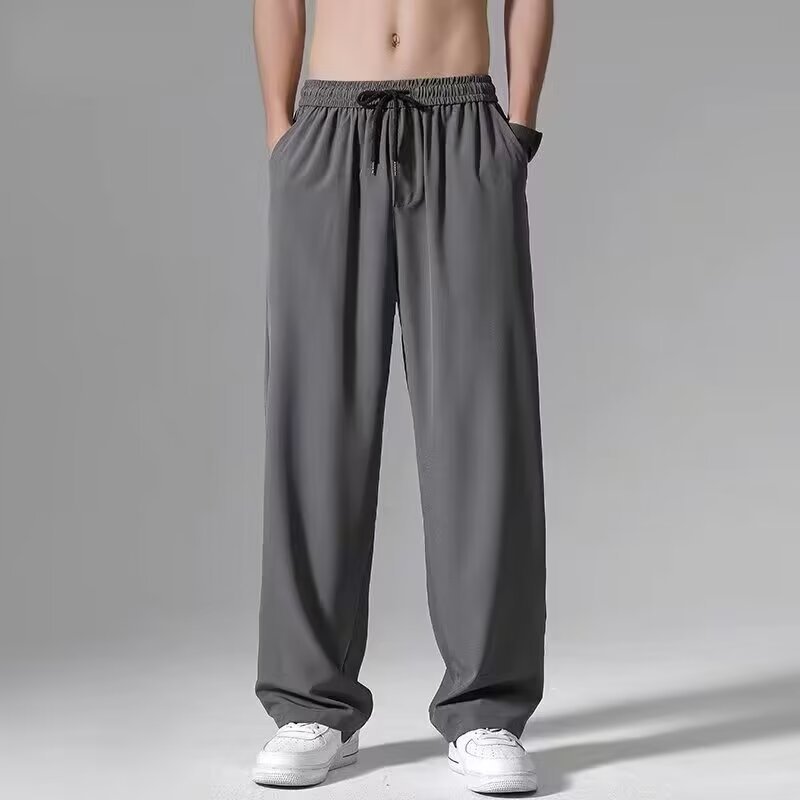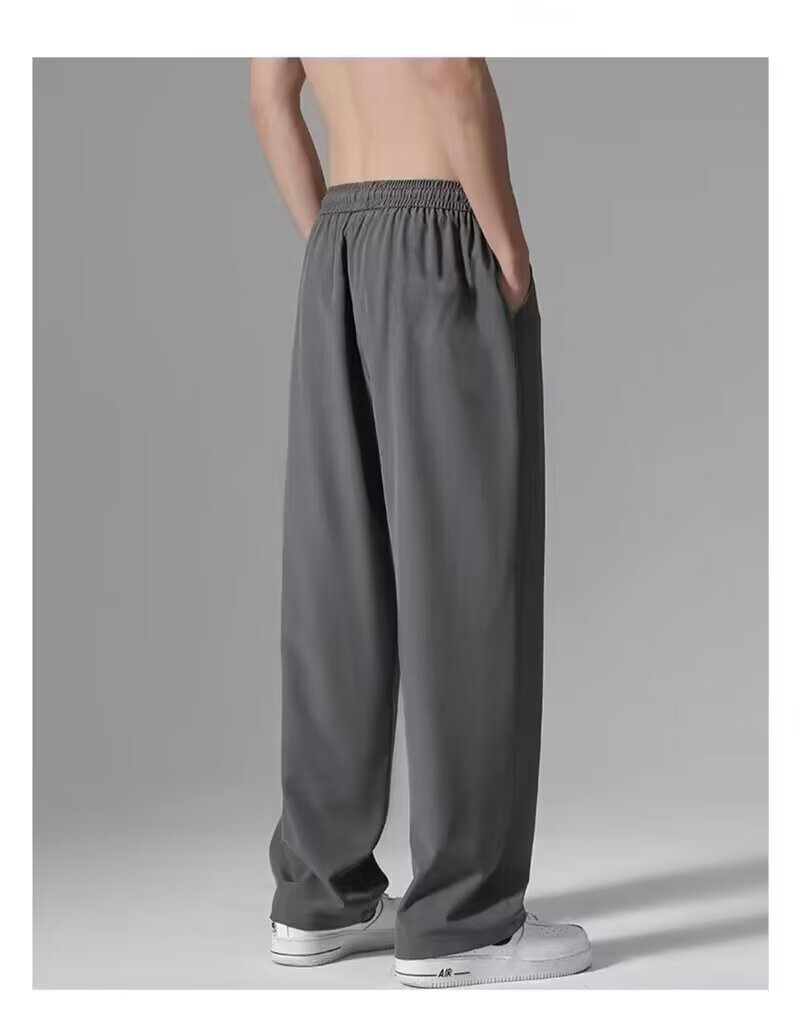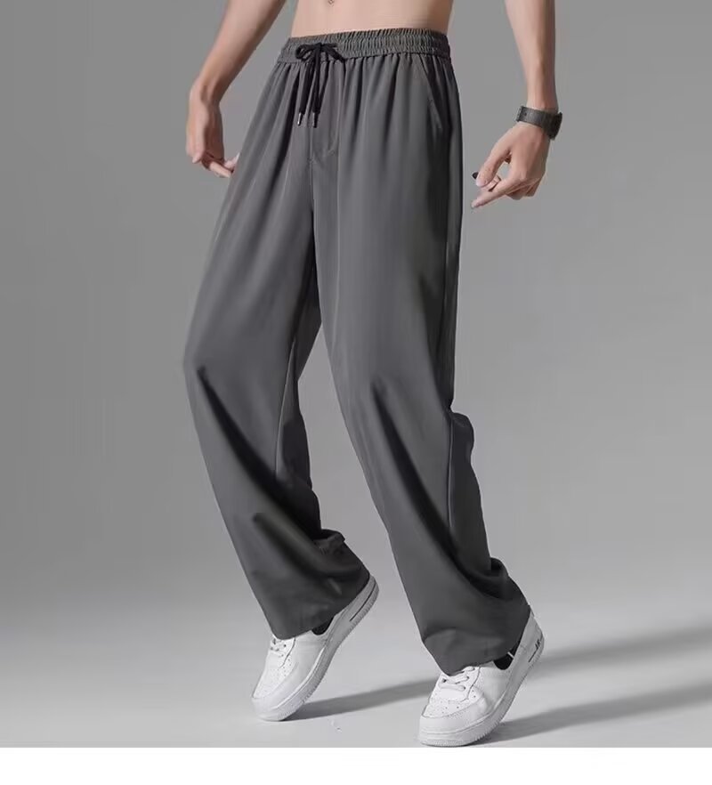남성용 바지 2025 신상 여름 스트레이트 아이스 실크 캐주얼 바지 루즈한 얇은 소년 스포츠 바지 와이드 레그 바지