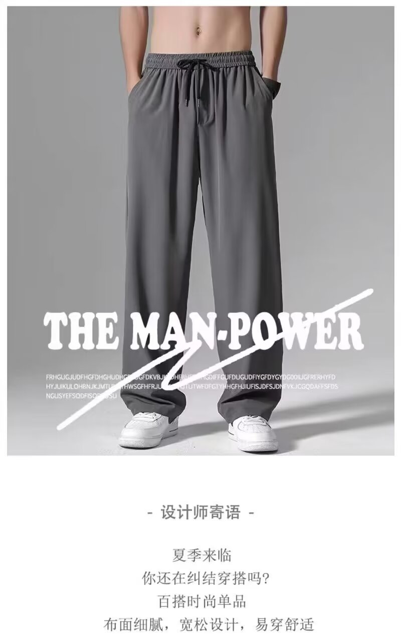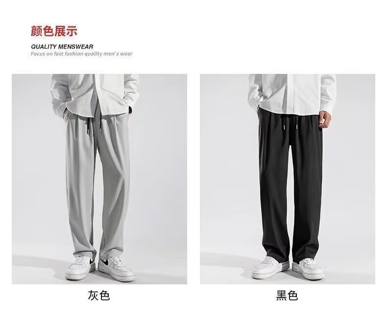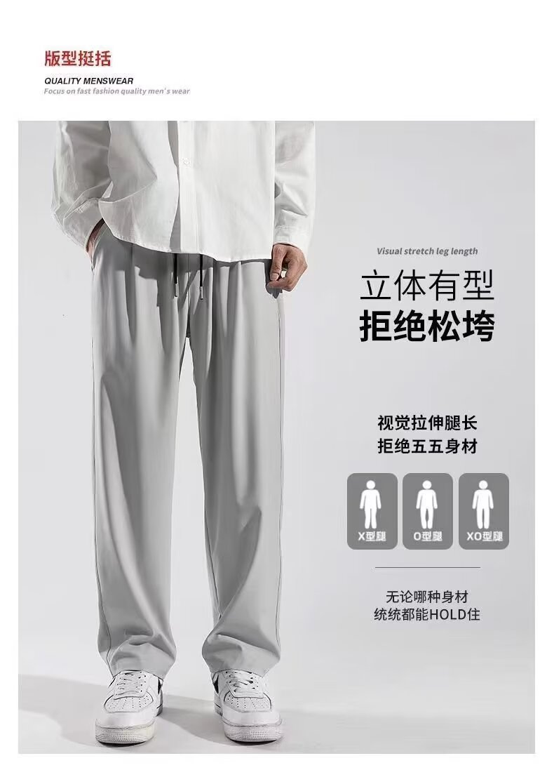 남성용 바지 2025 신상 여름 스트레이트 아이스 실크 캐주얼 바지 루즈한 얇은 소년 스포츠 바지 와이드 레그 바지스토어 가기