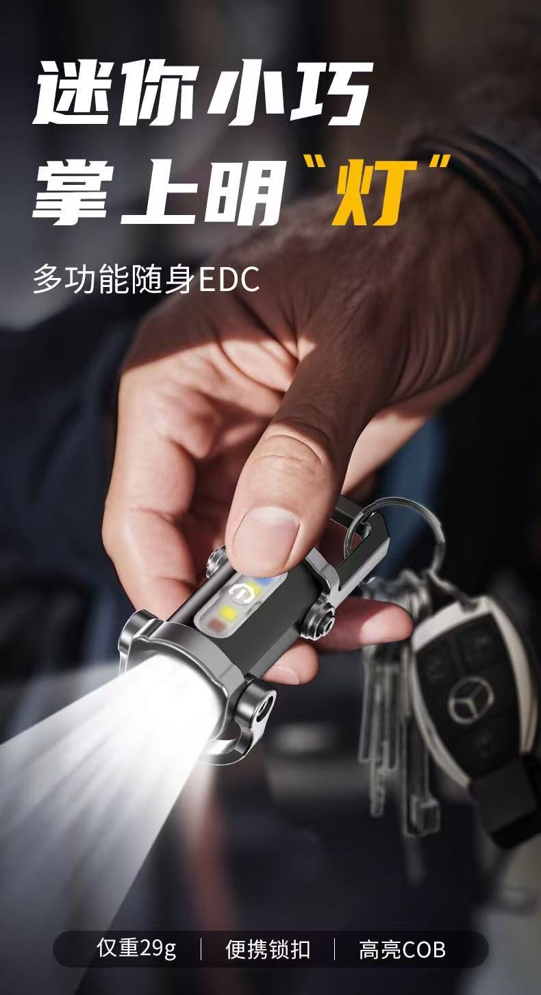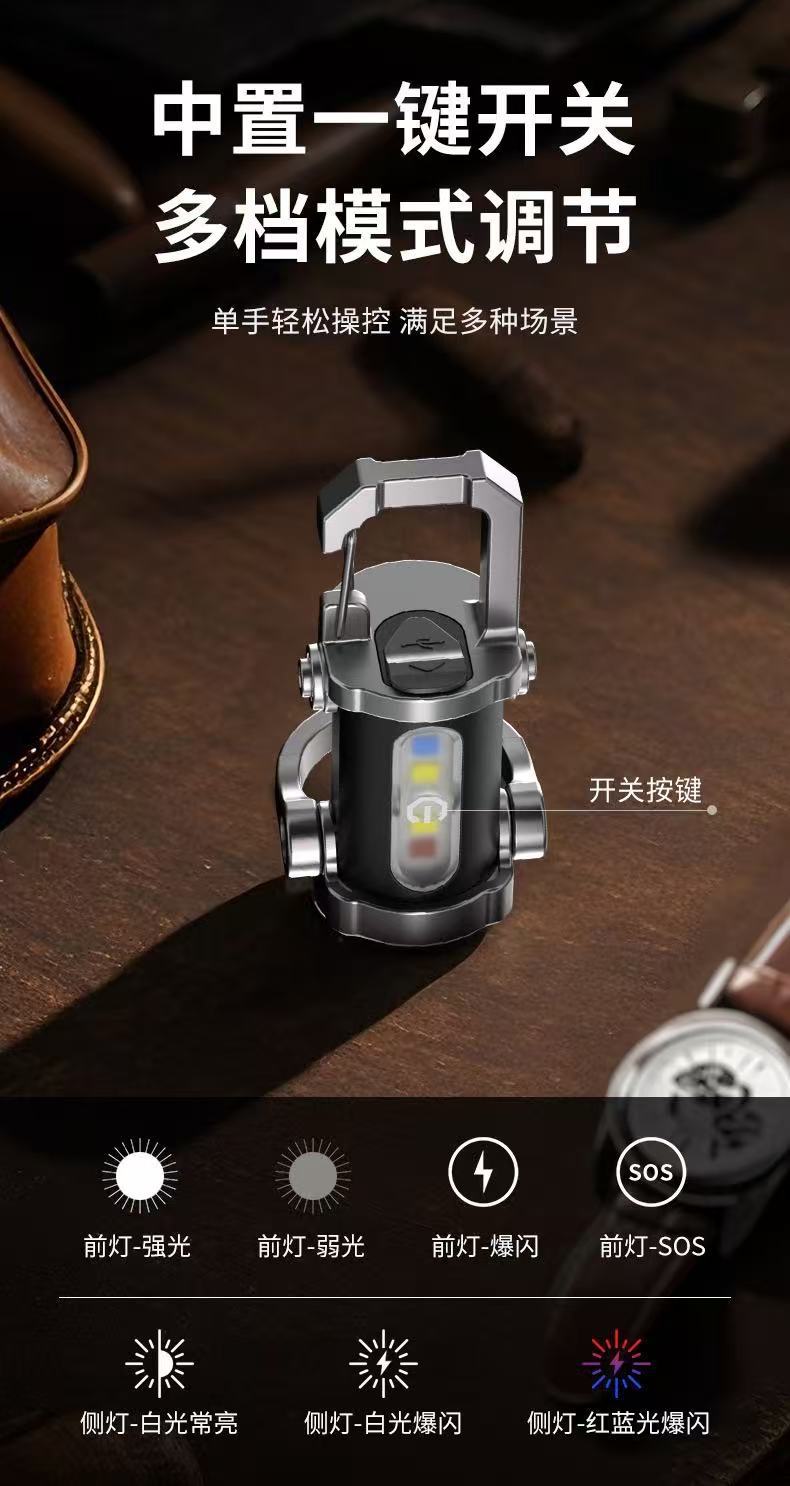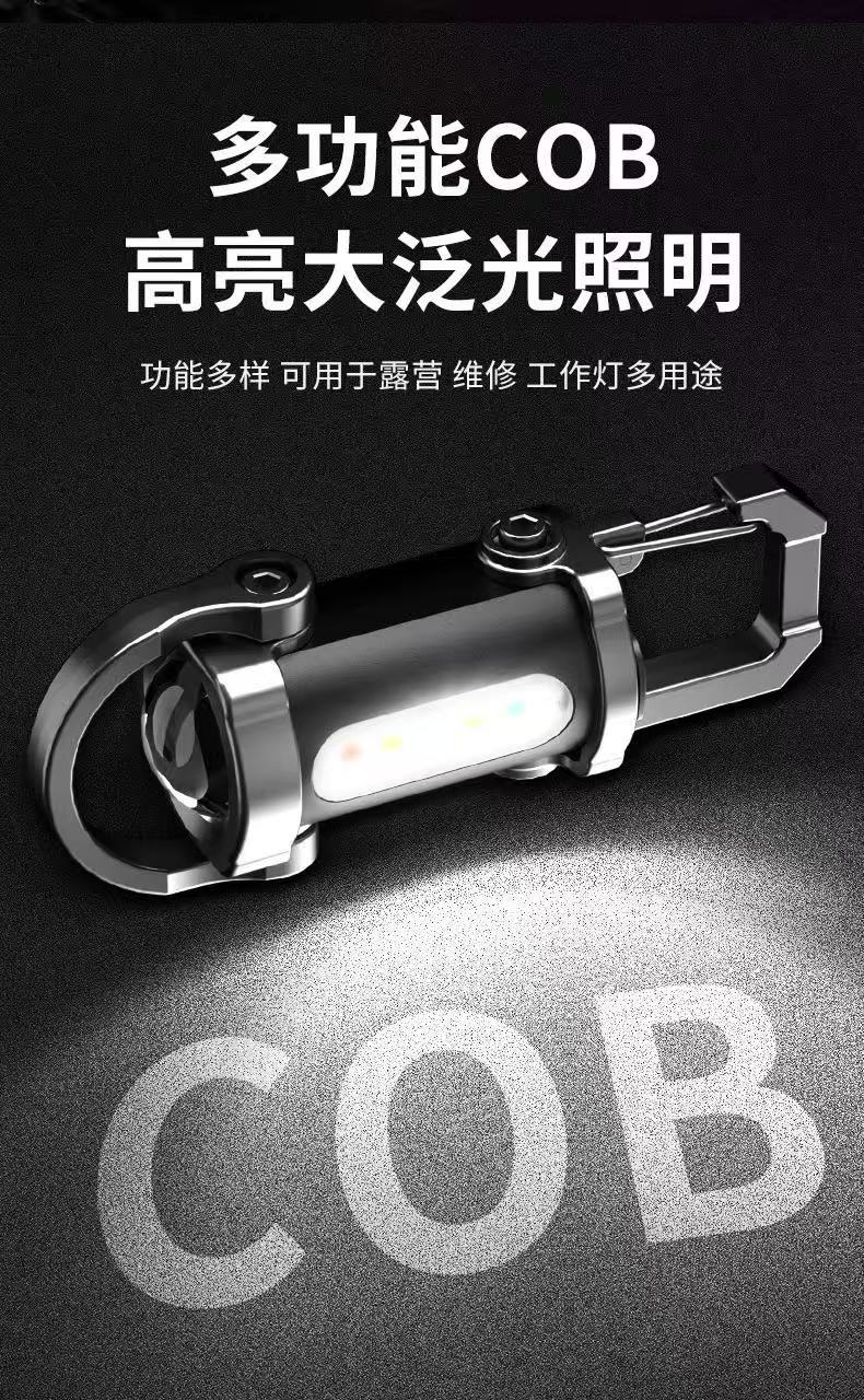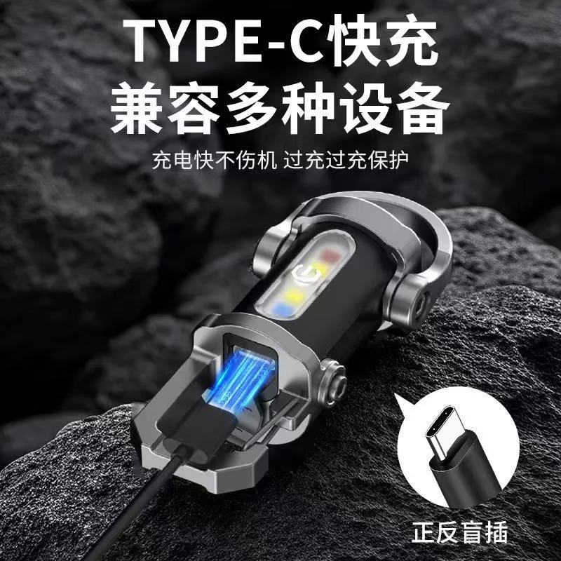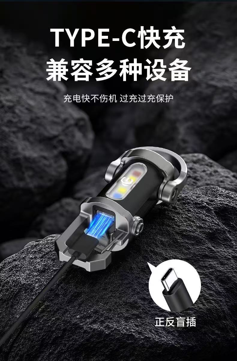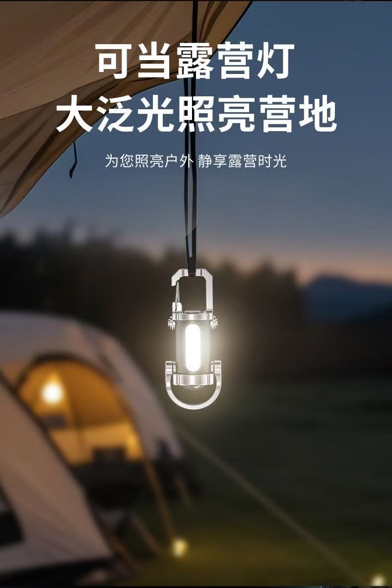 국경 간 새로운 다기능 야외 캠핑 조명 미니 밝은 키 체인 조명 작업 조명 USB 충전식 손전등