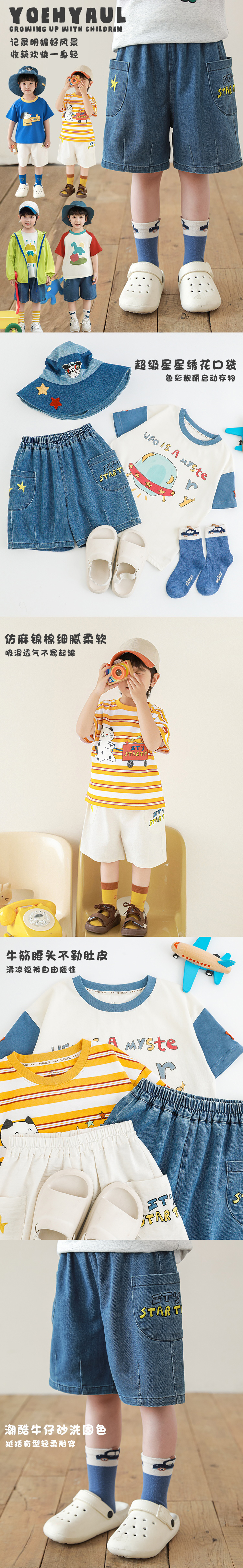 소년의 데님 반바지 여름 조명 어린이 캐주얼 멋진 바지 2025 새로운 패션 바지스토어 가기