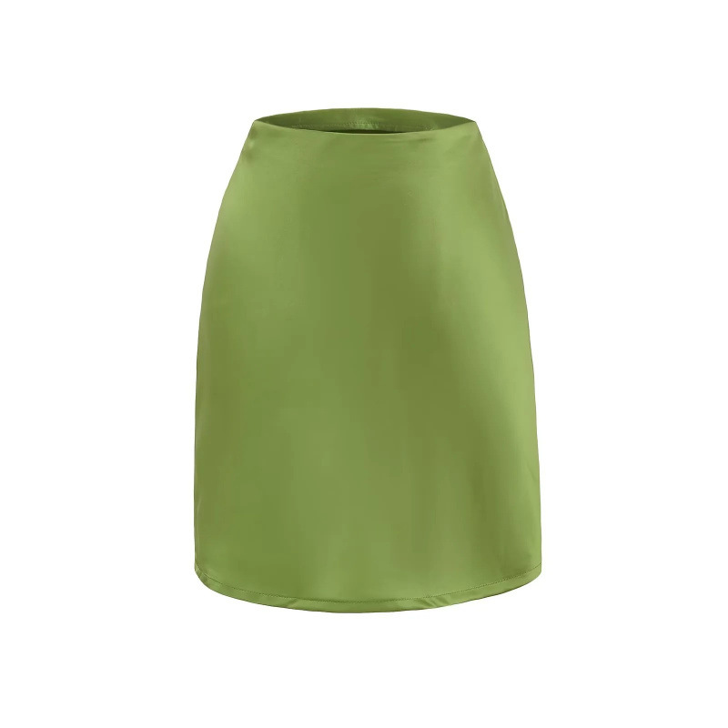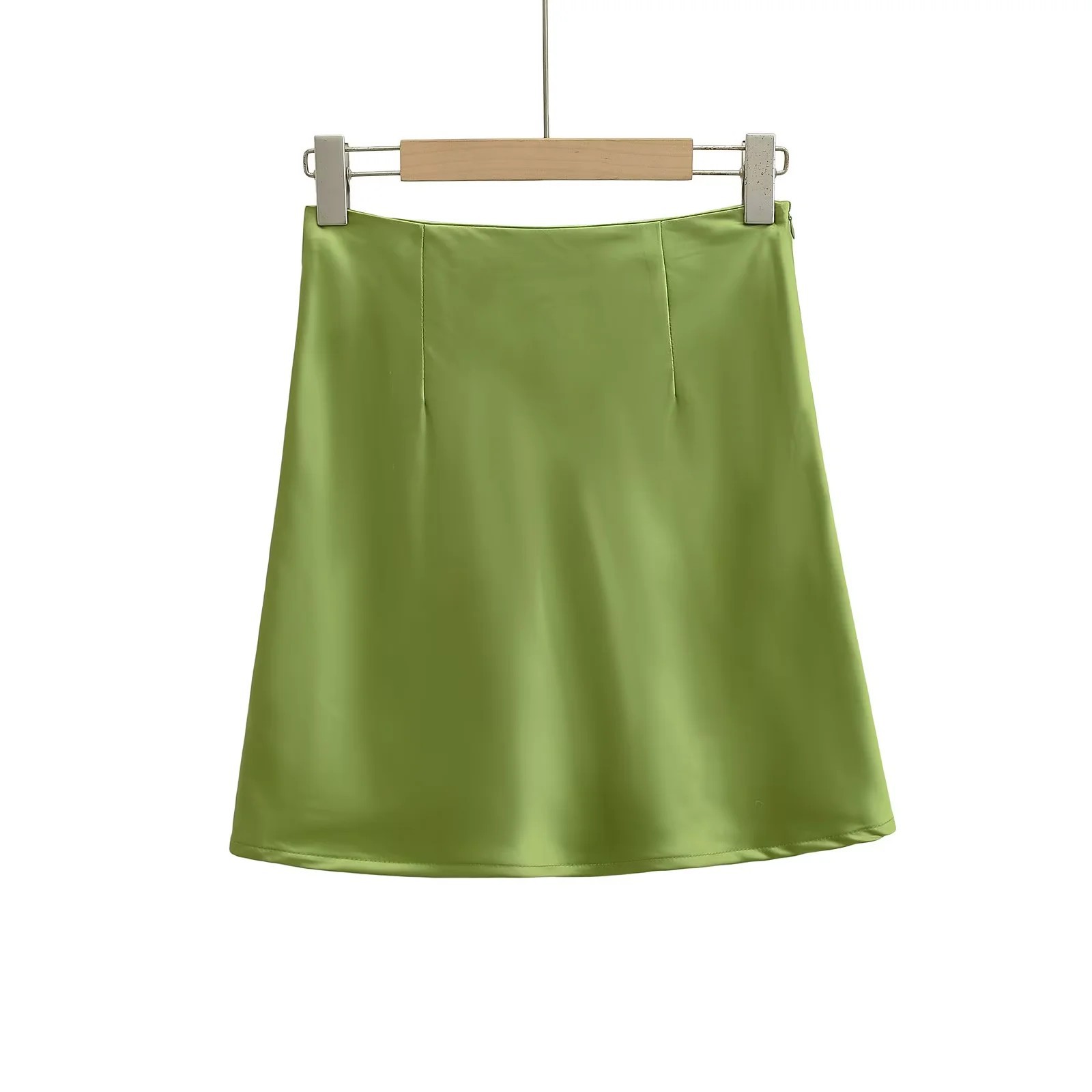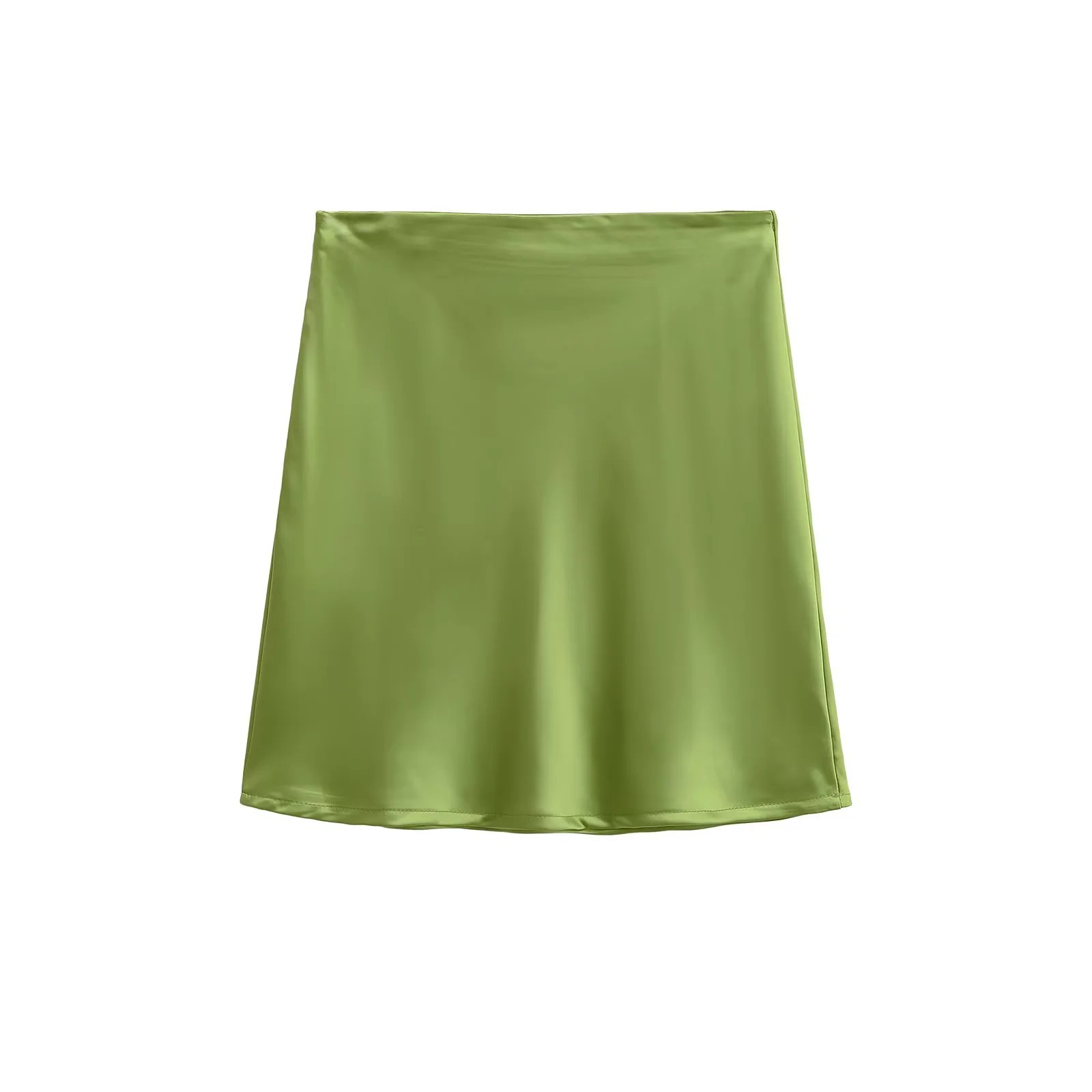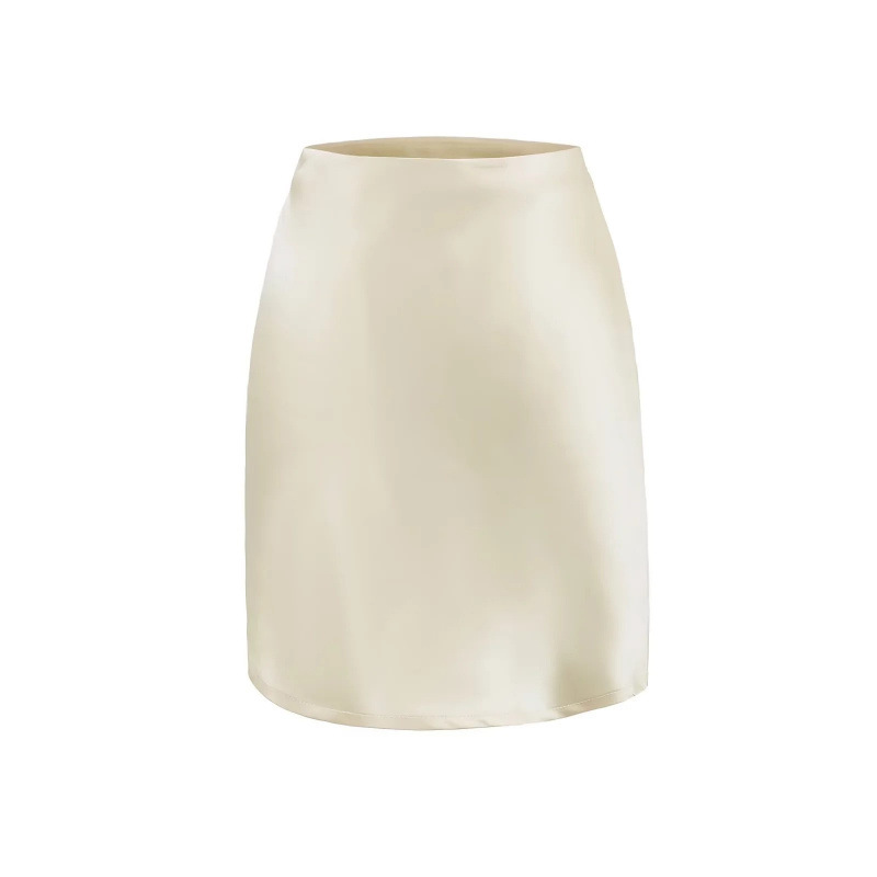 2025 년 여름 새로운 프랑스 레트로 새틴 스커트 짧은 치마 아세테이트 ol 통근 스커트 사이드 지퍼 스커트
