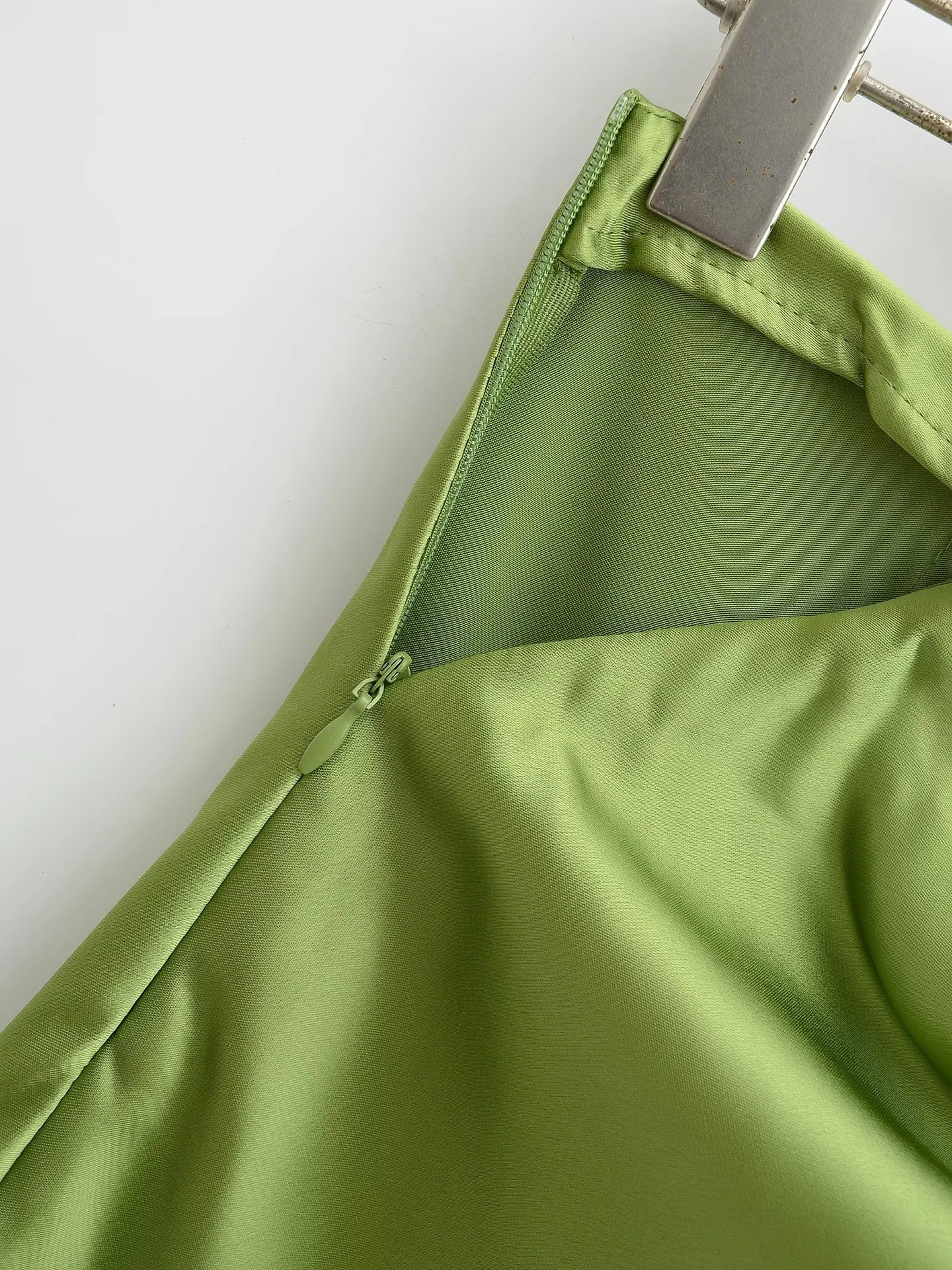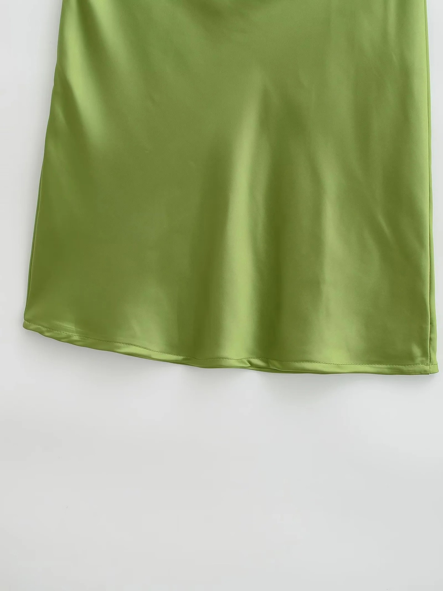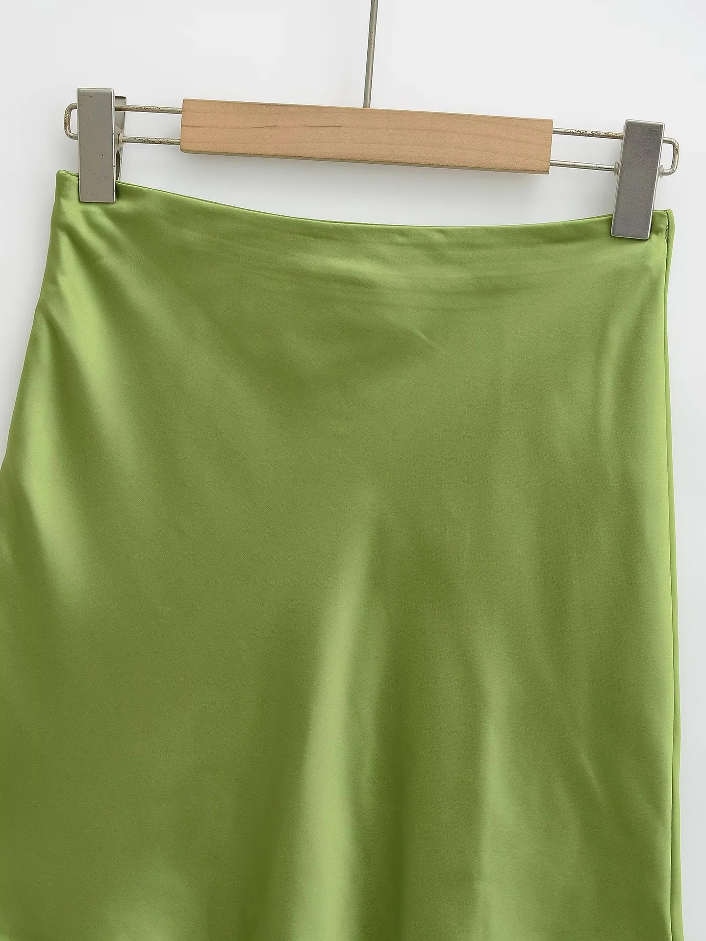 2025 년 여름 새로운 프랑스 레트로 새틴 스커트 짧은 치마 아세테이트 ol 통근 스커트 사이드 지퍼 스커트
