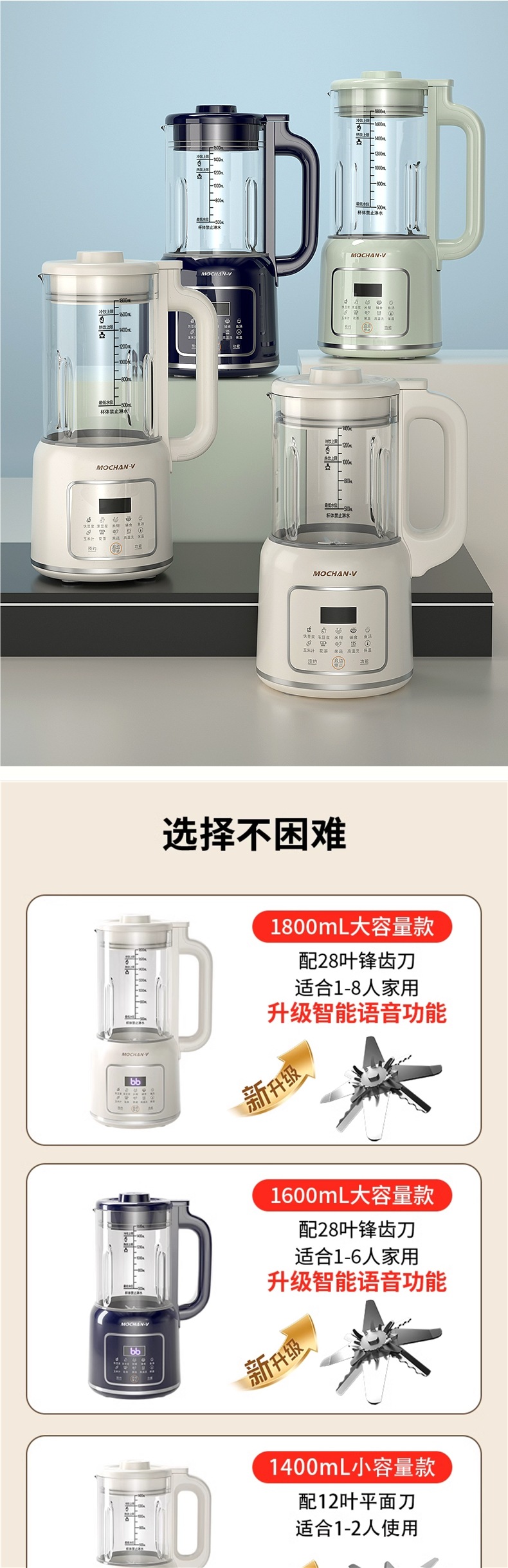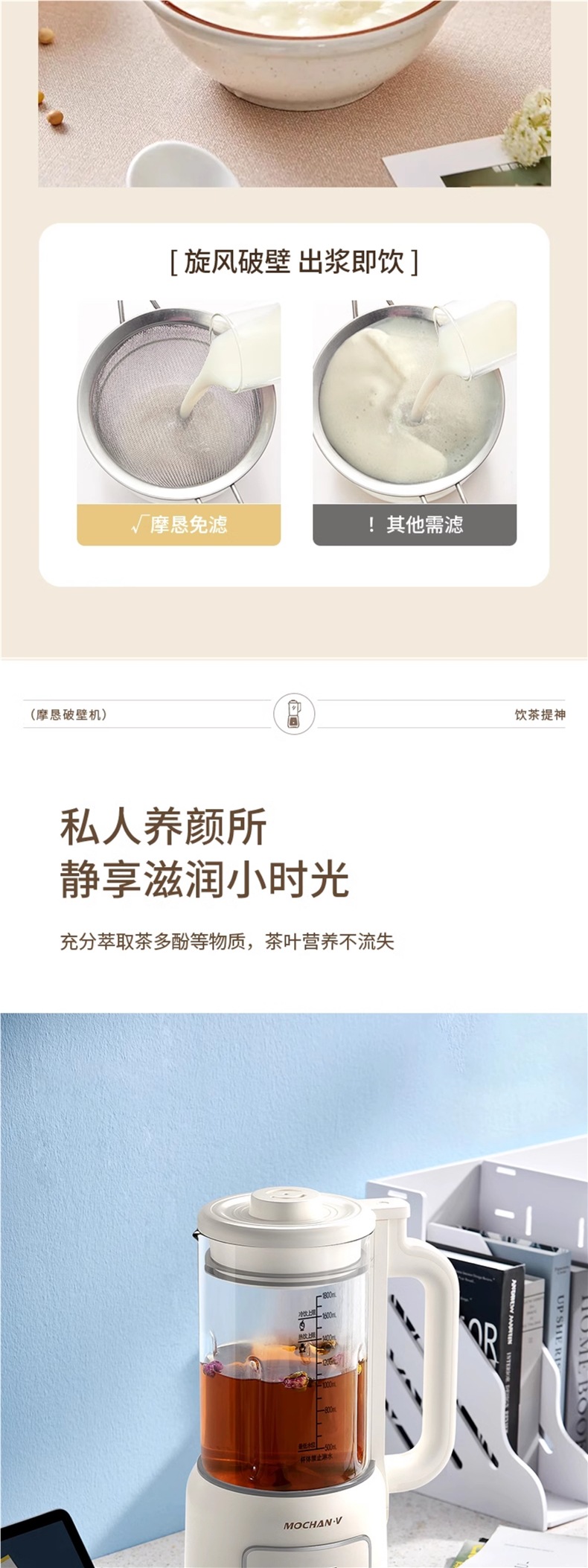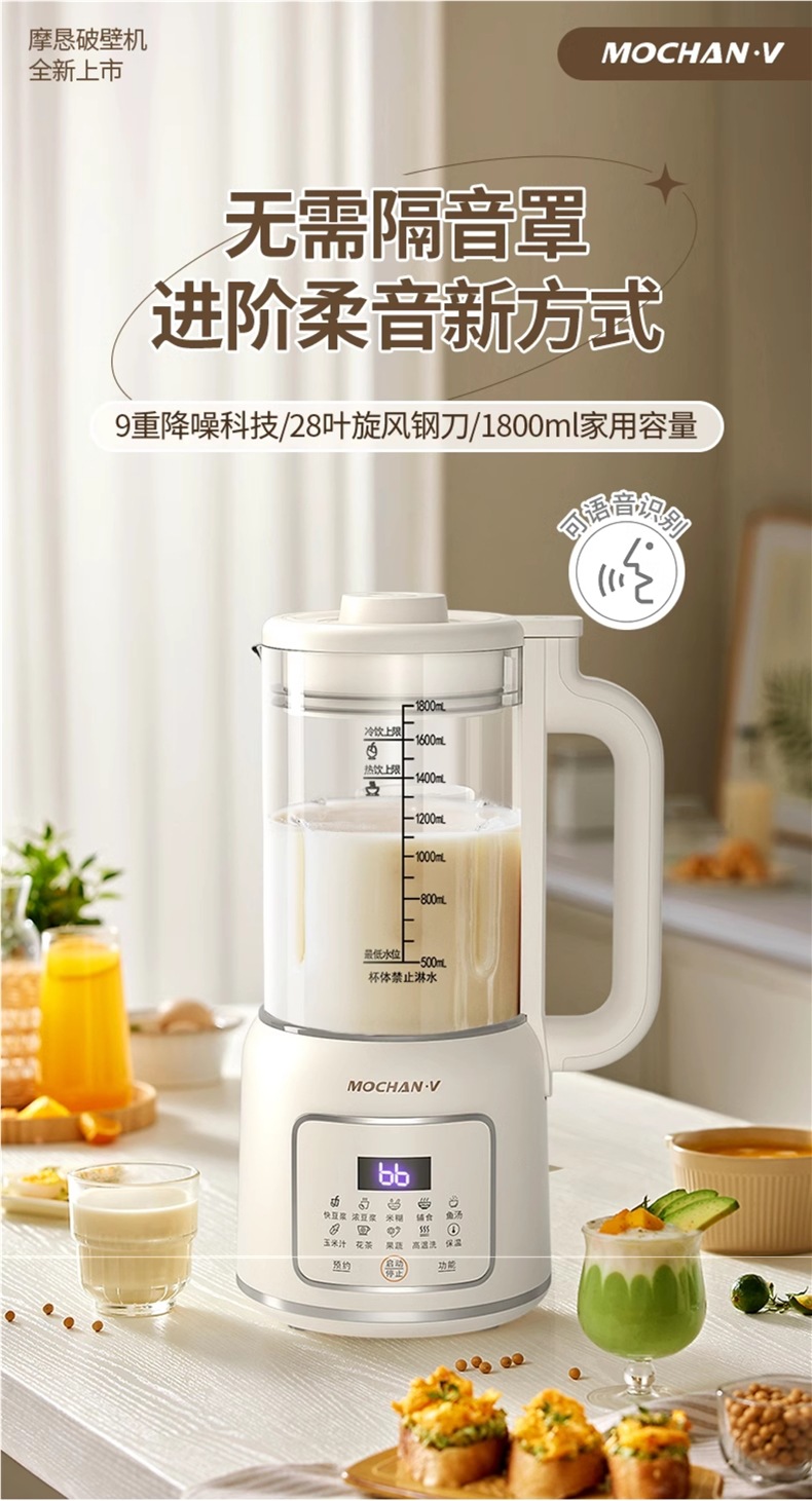 영국 Mochan-v 벽 파괴 기계 가정용 완전 자동 라이트 사운드 새로운 소형 두유 기계 슬래그없는 요리 기계
