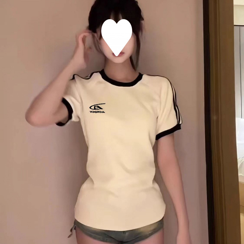 미국식 레트로 3 바 어깨 반팔 티셔츠 여성 여름 디자인 틈새 스파이스 걸스 칙 스포츠 쇼트 탑스토어 가기