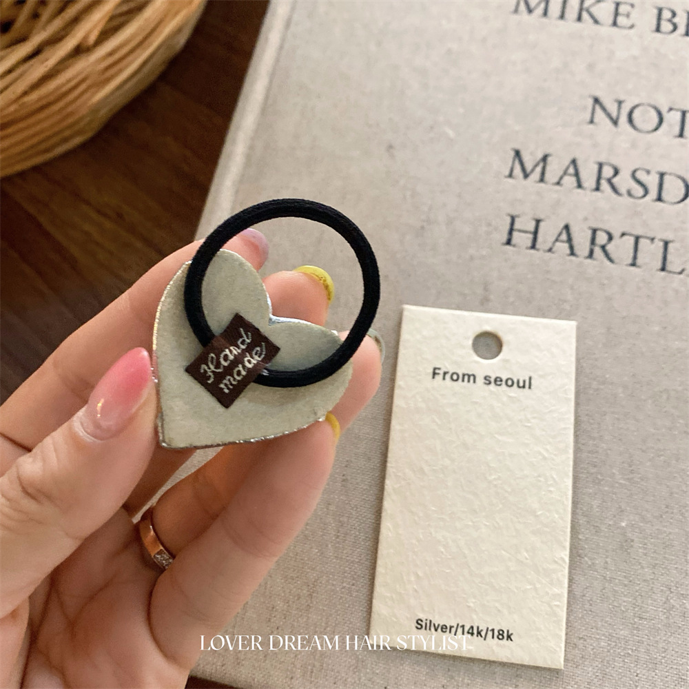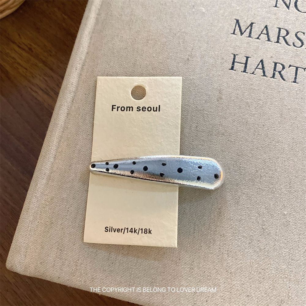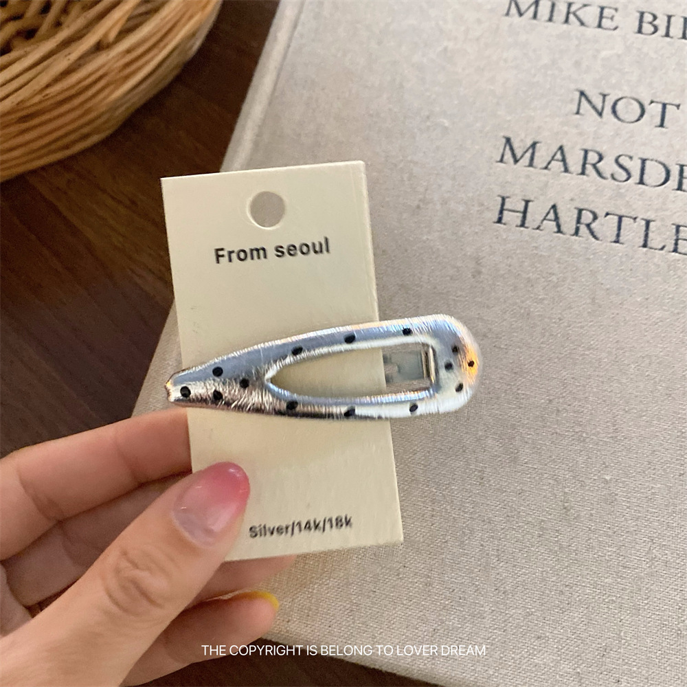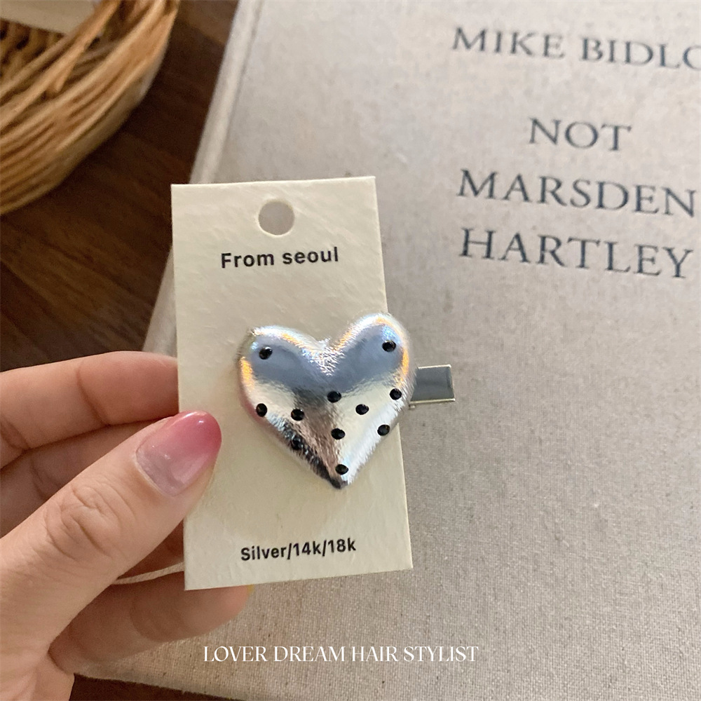 한국 ins 새로운 검은색과 은색 폴카 도트 사랑 모조 가죽 머리핀 세련된 질감 앞머리 클립 머리 장식 여성용 헤어 액세서리스토어 가기