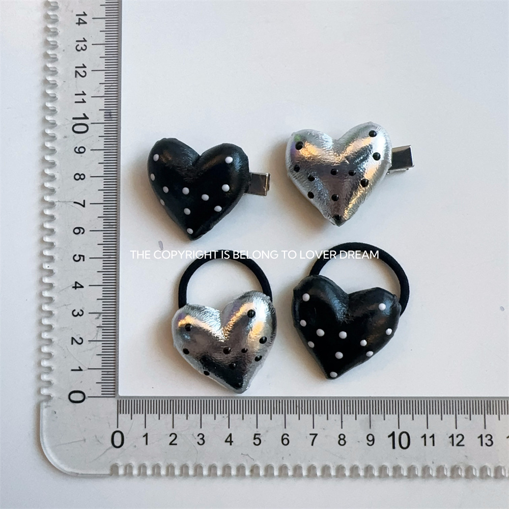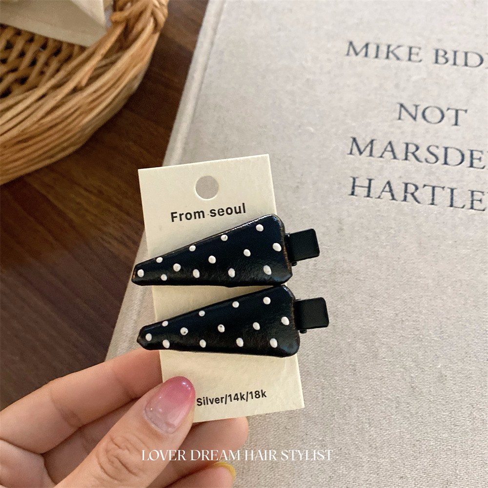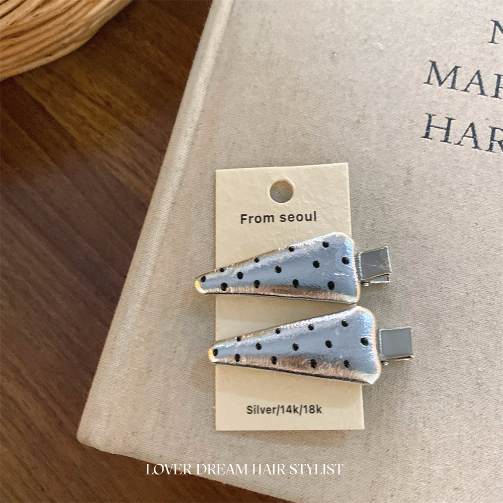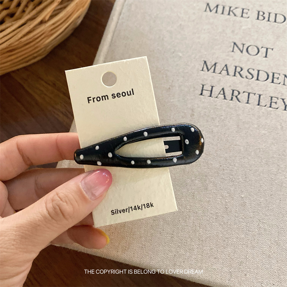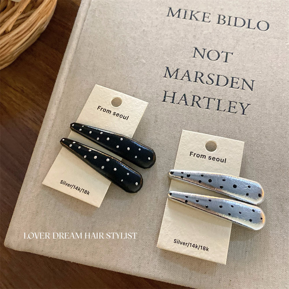 한국 ins 새로운 검은색과 은색 폴카 도트 사랑 모조 가죽 머리핀 세련된 질감 앞머리 클립 머리 장식 여성용 헤어 액세서리