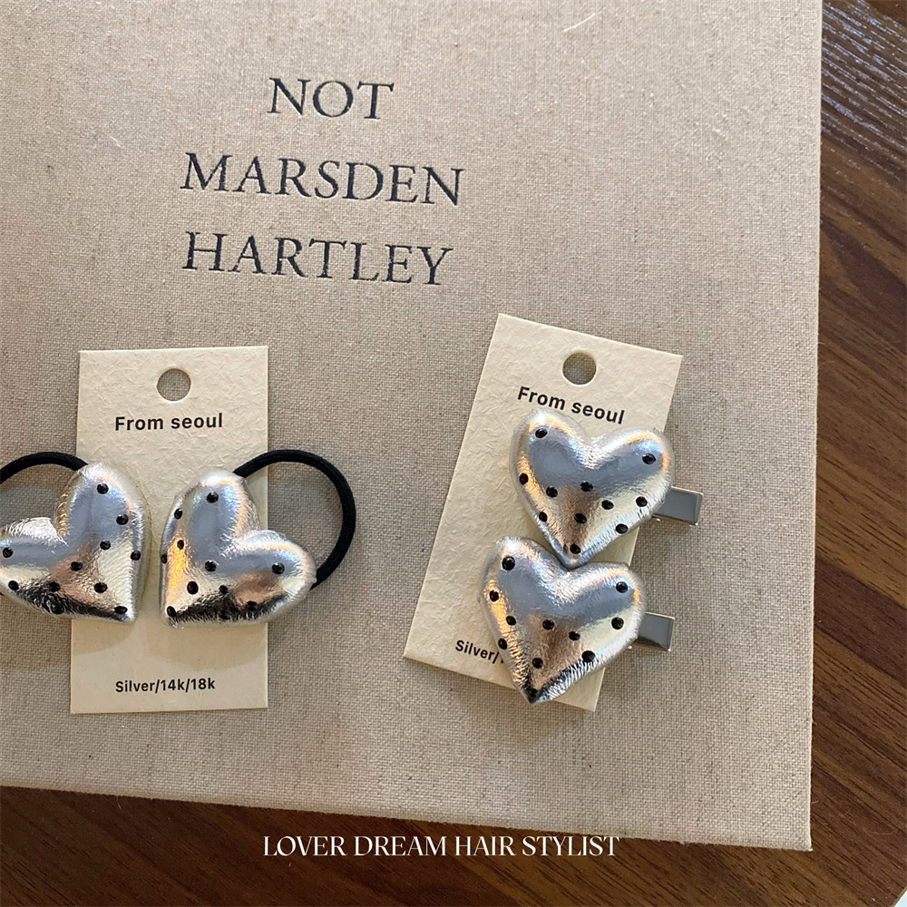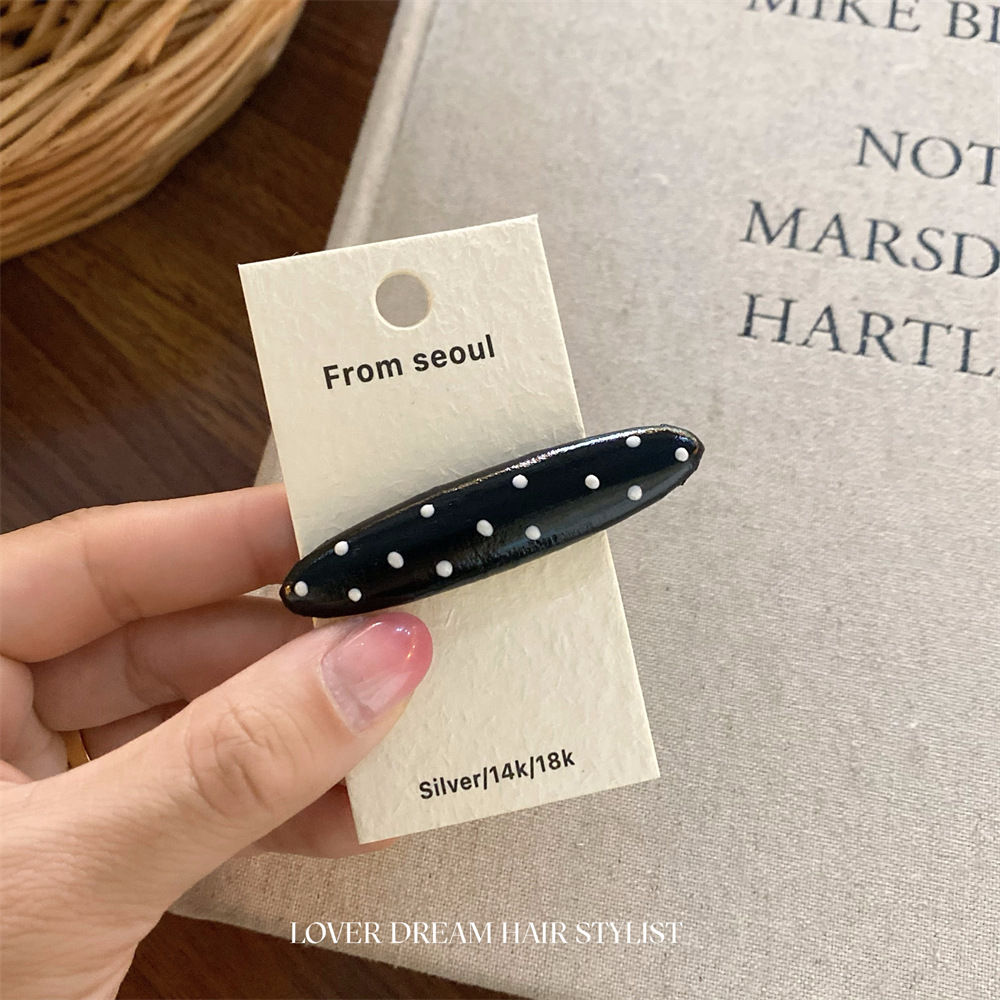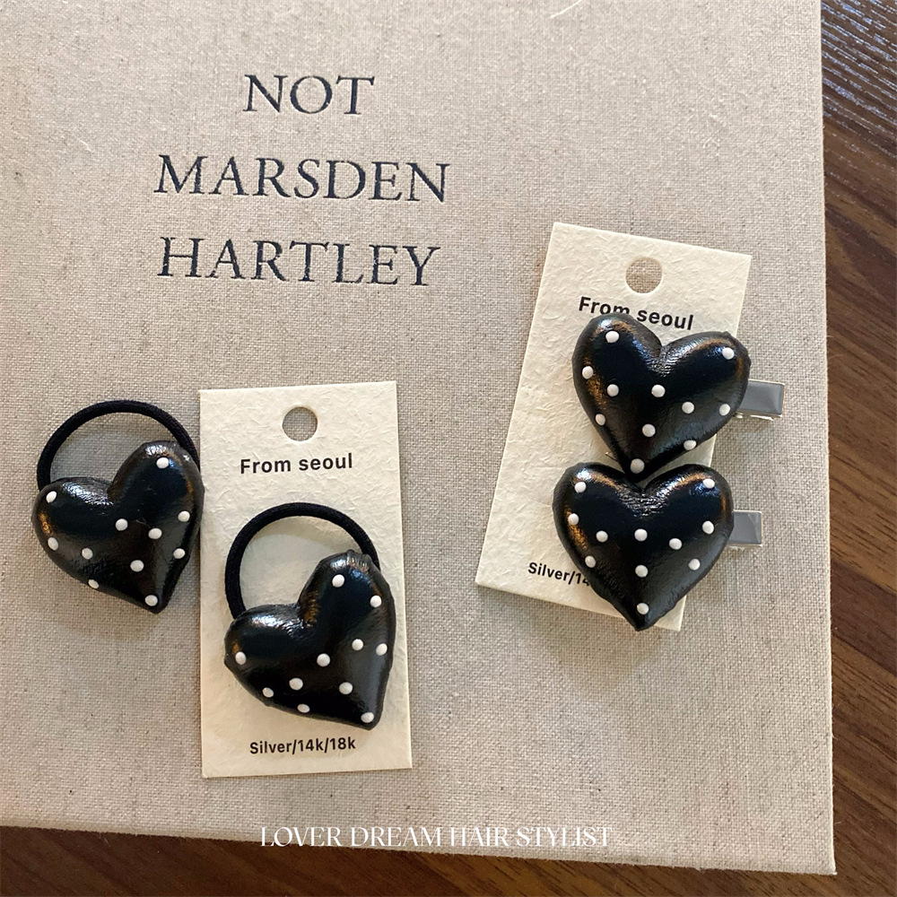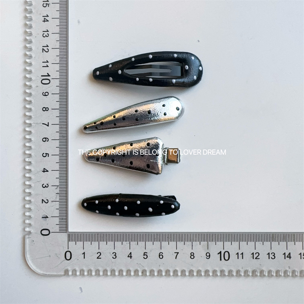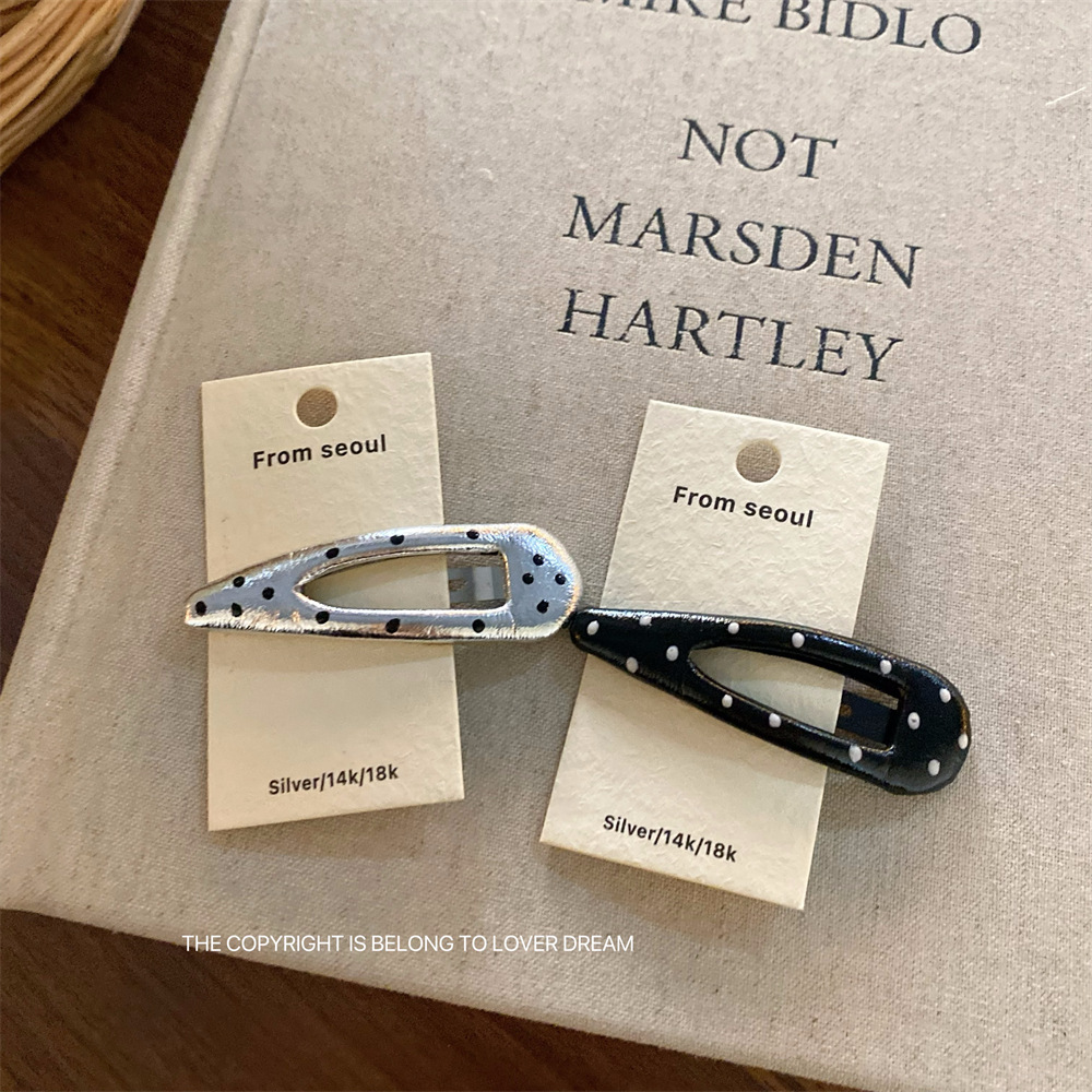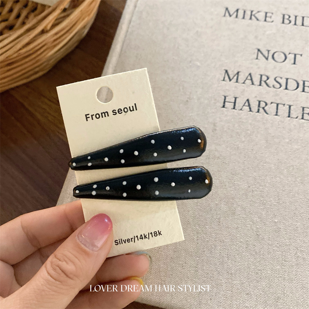 한국 ins 새로운 검은색과 은색 폴카 도트 사랑 모조 가죽 머리핀 세련된 질감 앞머리 클립 머리 장식 여성용 헤어 액세서리