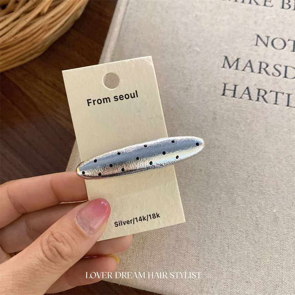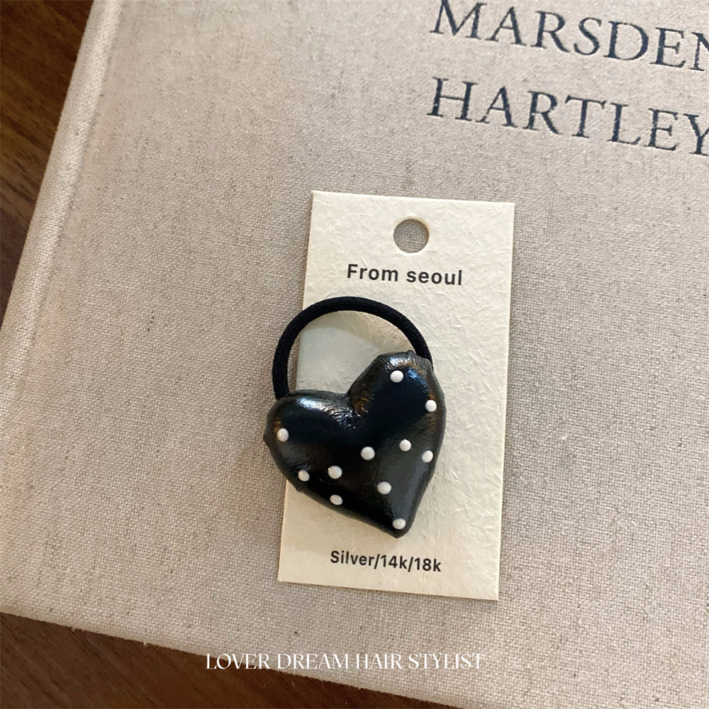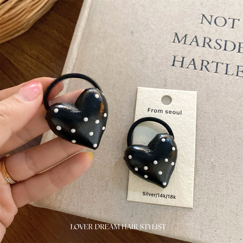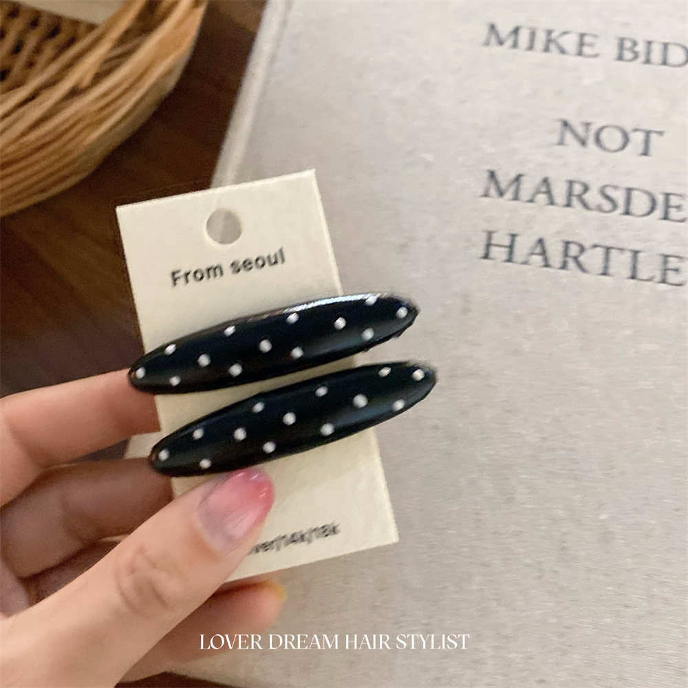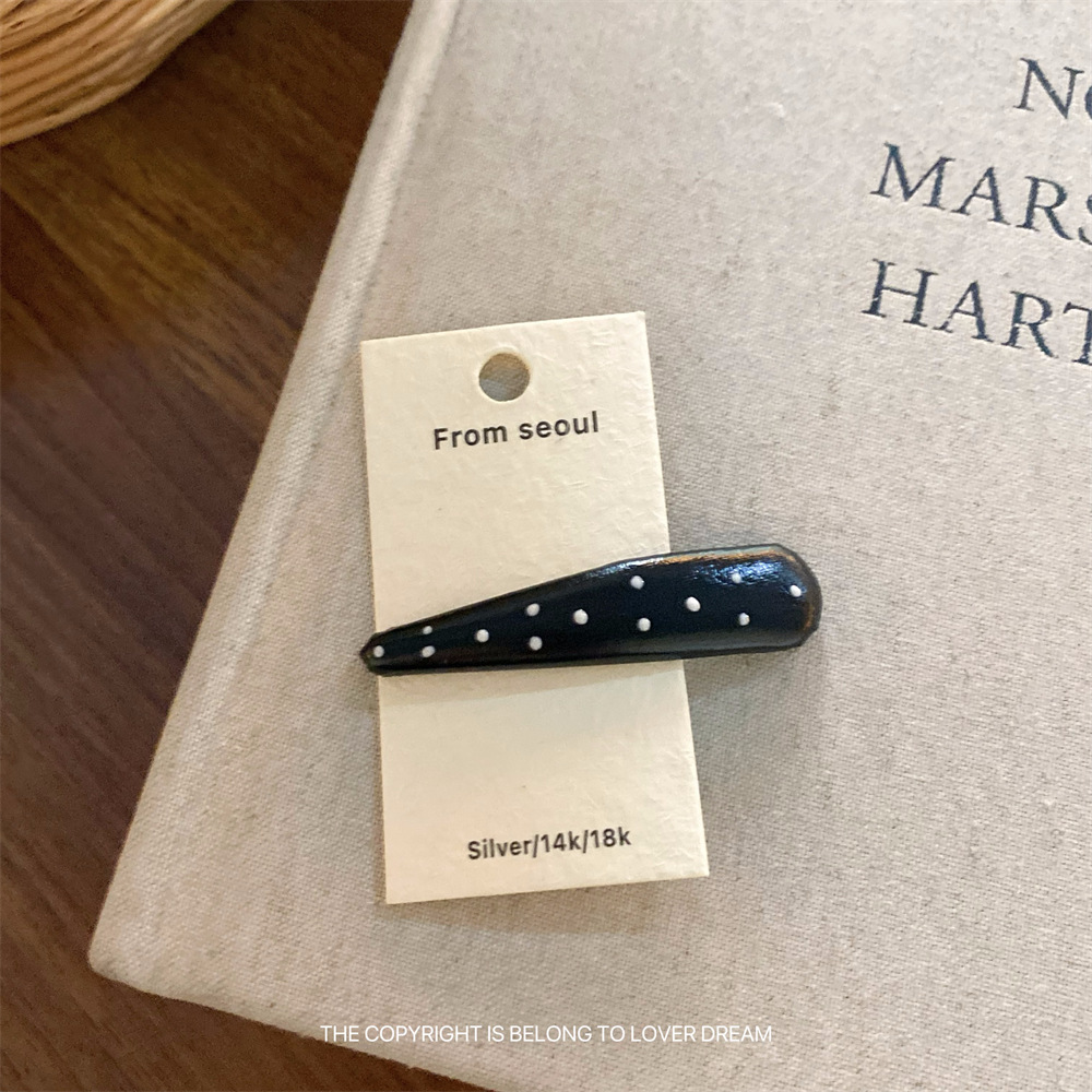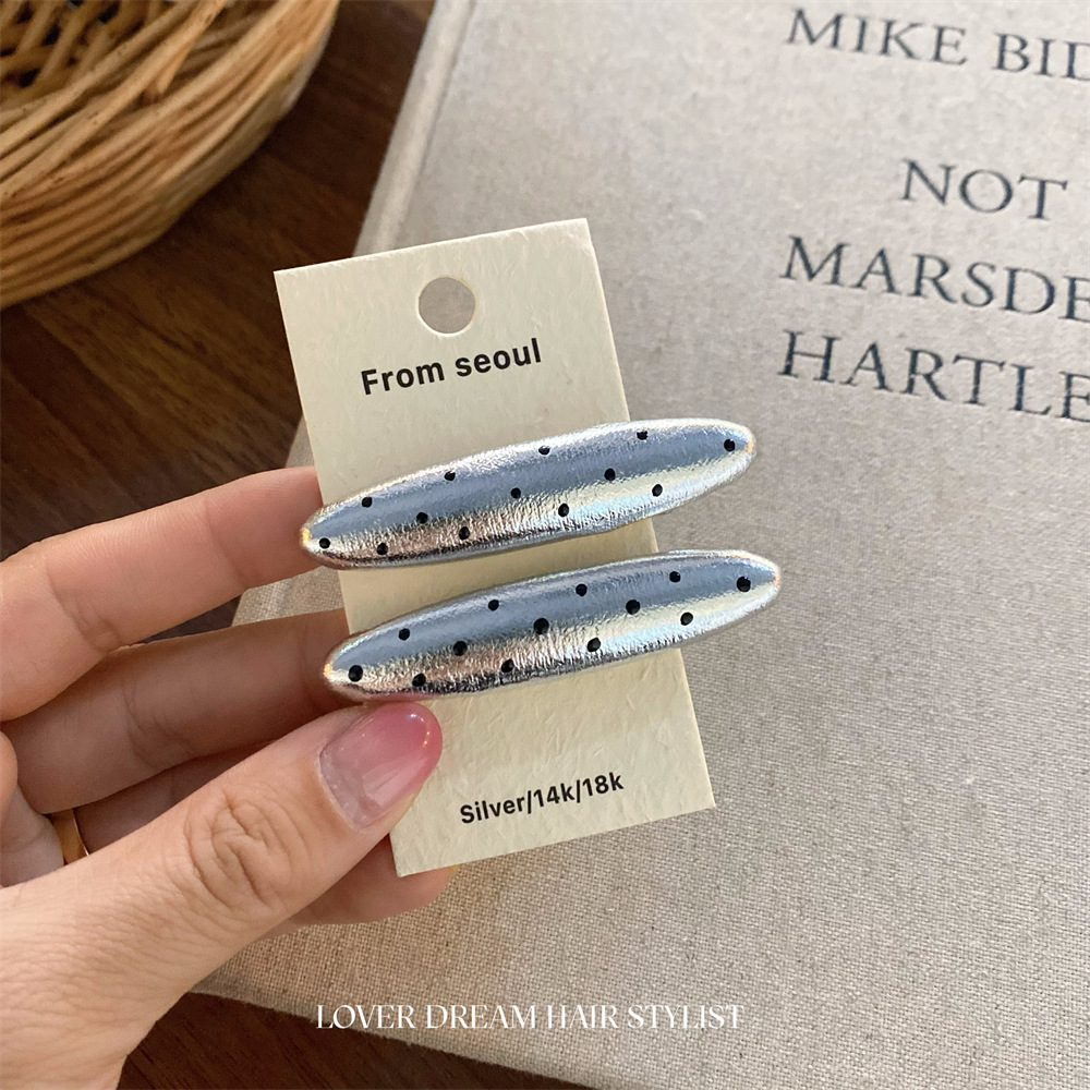한국 ins 새로운 검은색과 은색 폴카 도트 사랑 모조 가죽 머리핀 세련된 질감 앞머리 클립 머리 장식 여성용 헤어 액세서리