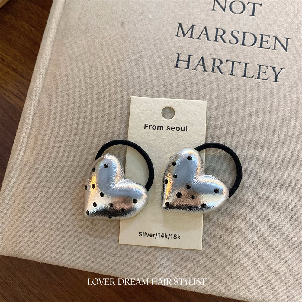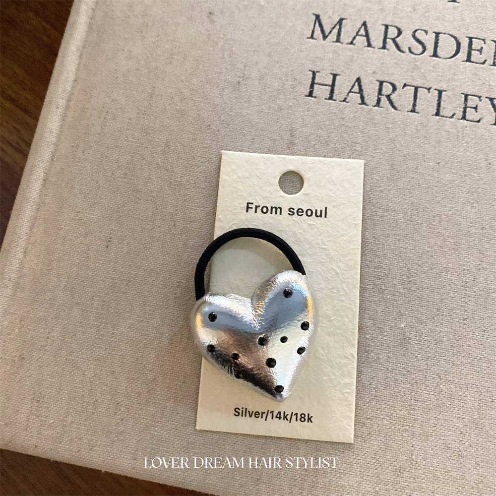 • 실버 폴카 도트 인조 가죽 러브 머리끈
