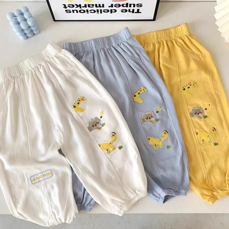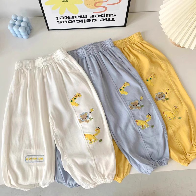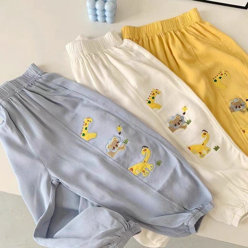 Xiaoxian Ning 어린이 캐주얼 새 스타일 바지 자수 소녀 여름 아기 짠 자수 만화 루즈 팬츠 유행스토어 가기