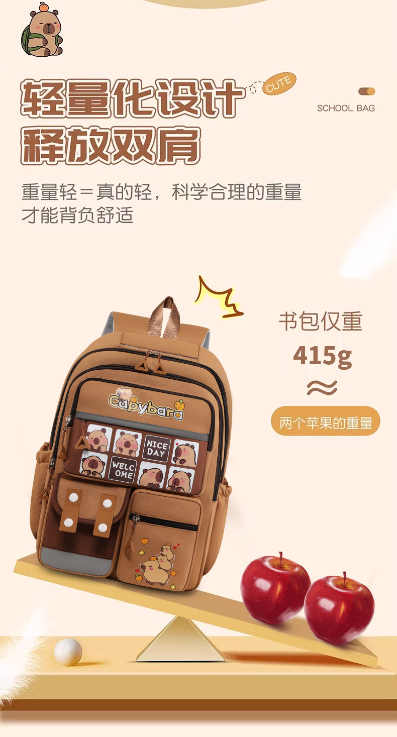 Kapibala 대용량 귀여운 학교 가방 남성과 여성 배낭 중학생 내구성 경량 Capybara 배낭스토어 가기