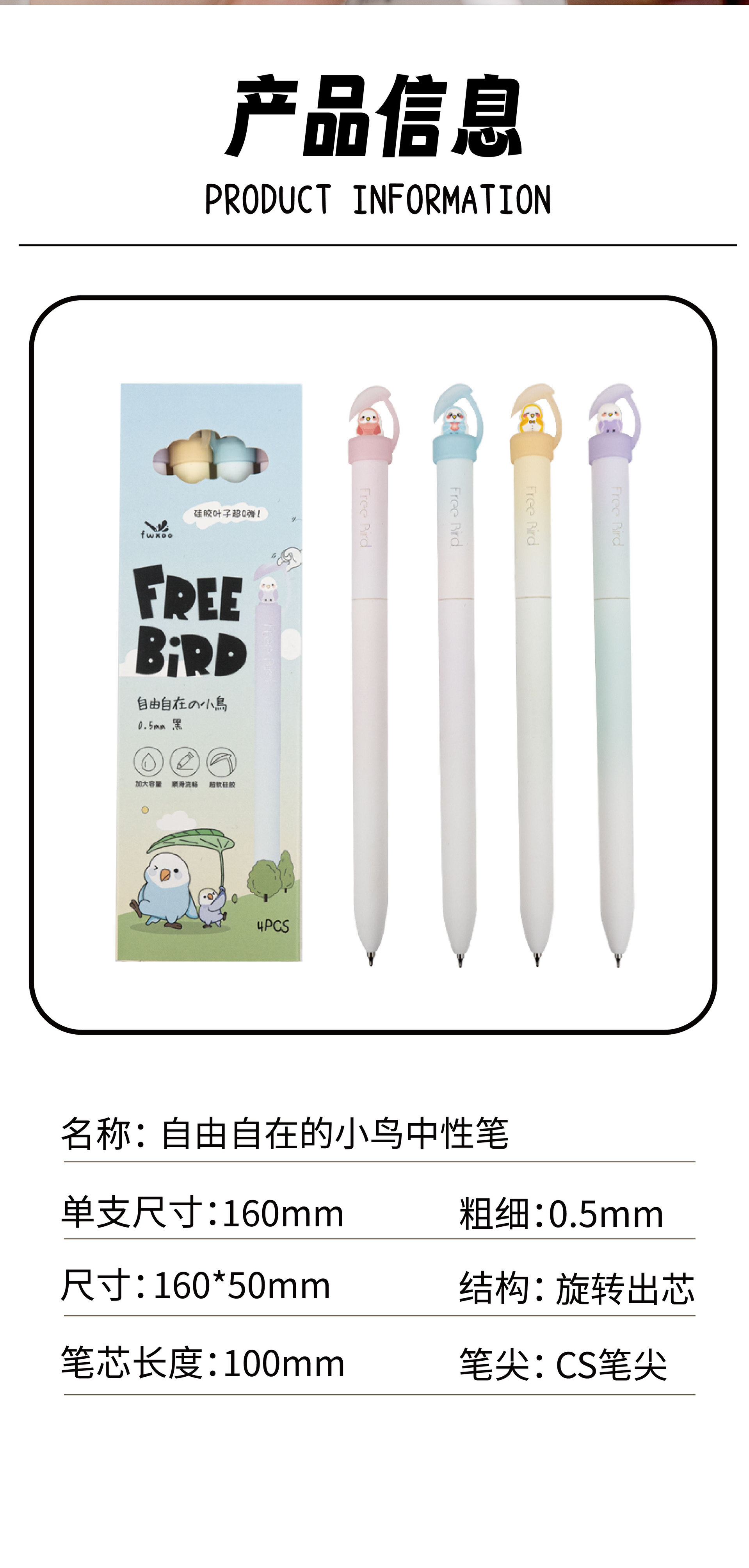 물체가 자유로운 새 창조적 인 회전 젤 펜 0.5 빠른 건조 CS 귀여운 새 서명 펜스토어 가기
