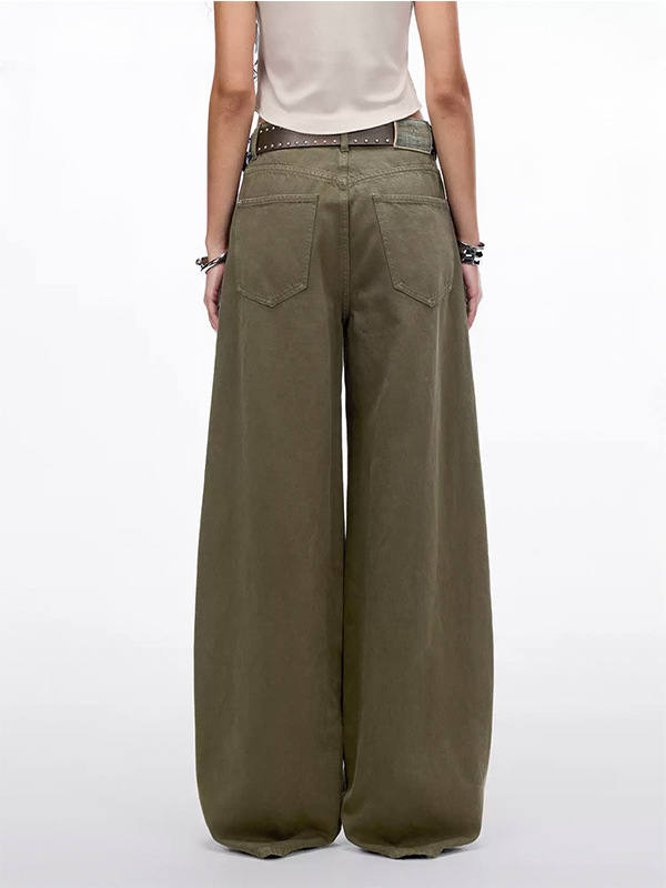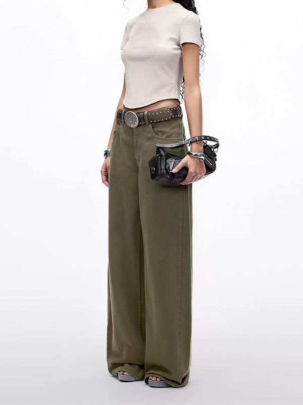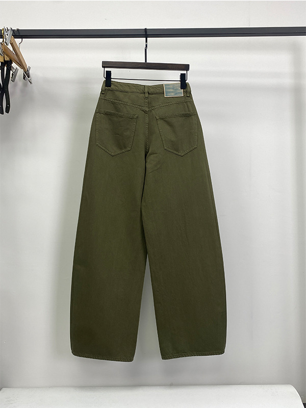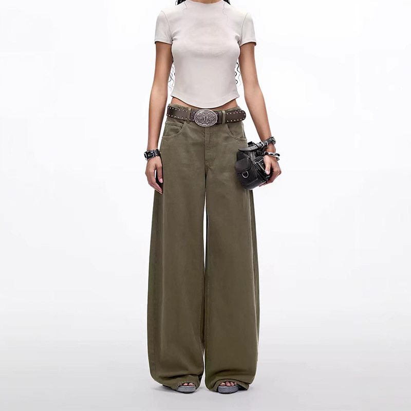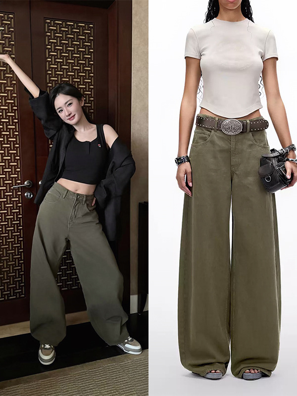 Yang Mi의 같은 스타일 Miss 교체 버전 25 여름 새로운 복고풍 밀리터리 그린 루즈 박스 바지 데님 바지 여성 공장