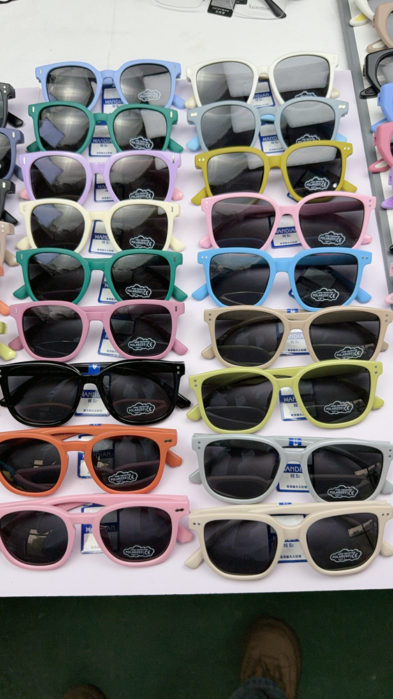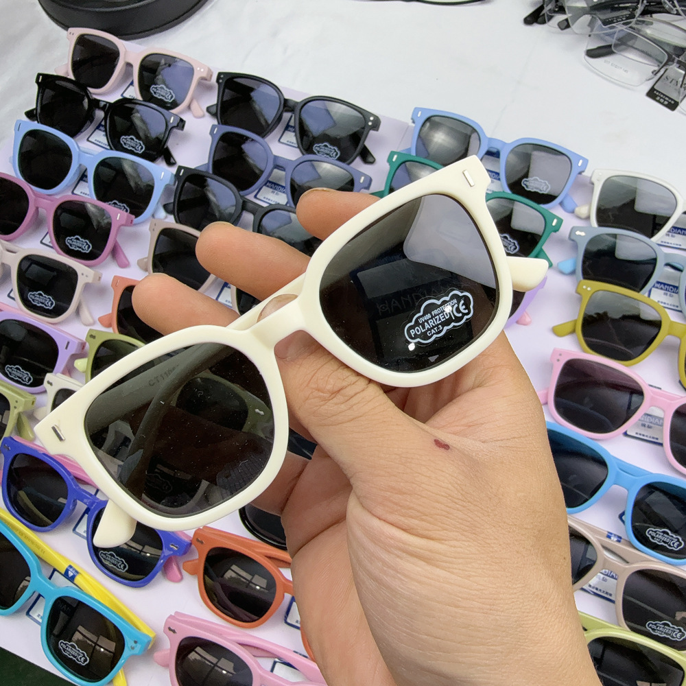 새로운 실리콘 어린이 선글라스 HD 편광 귀여운 부드러운 다목적 크로스 베이비 야외 태양 보호 선글라스 도매스토어 가기