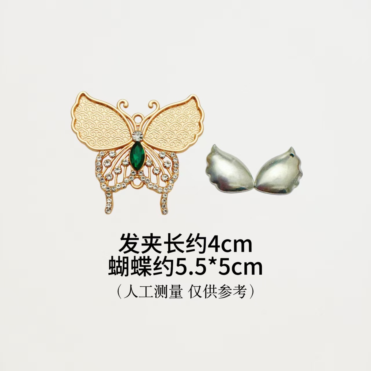 • 13. 그린 다이아몬드 나비 머리핀 + 뚜껑 (매트 골드)