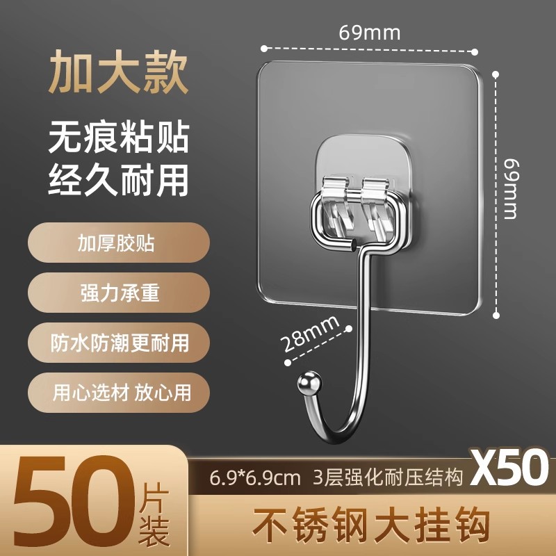 • 【투명 접착식】 스테인리스 대형 걸이 50개입