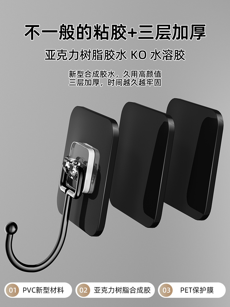 구멍이 없는 후크, 강력한 접착 벽걸이, 투명 가정용 흔적 없는 내하중 주방 접착 후크