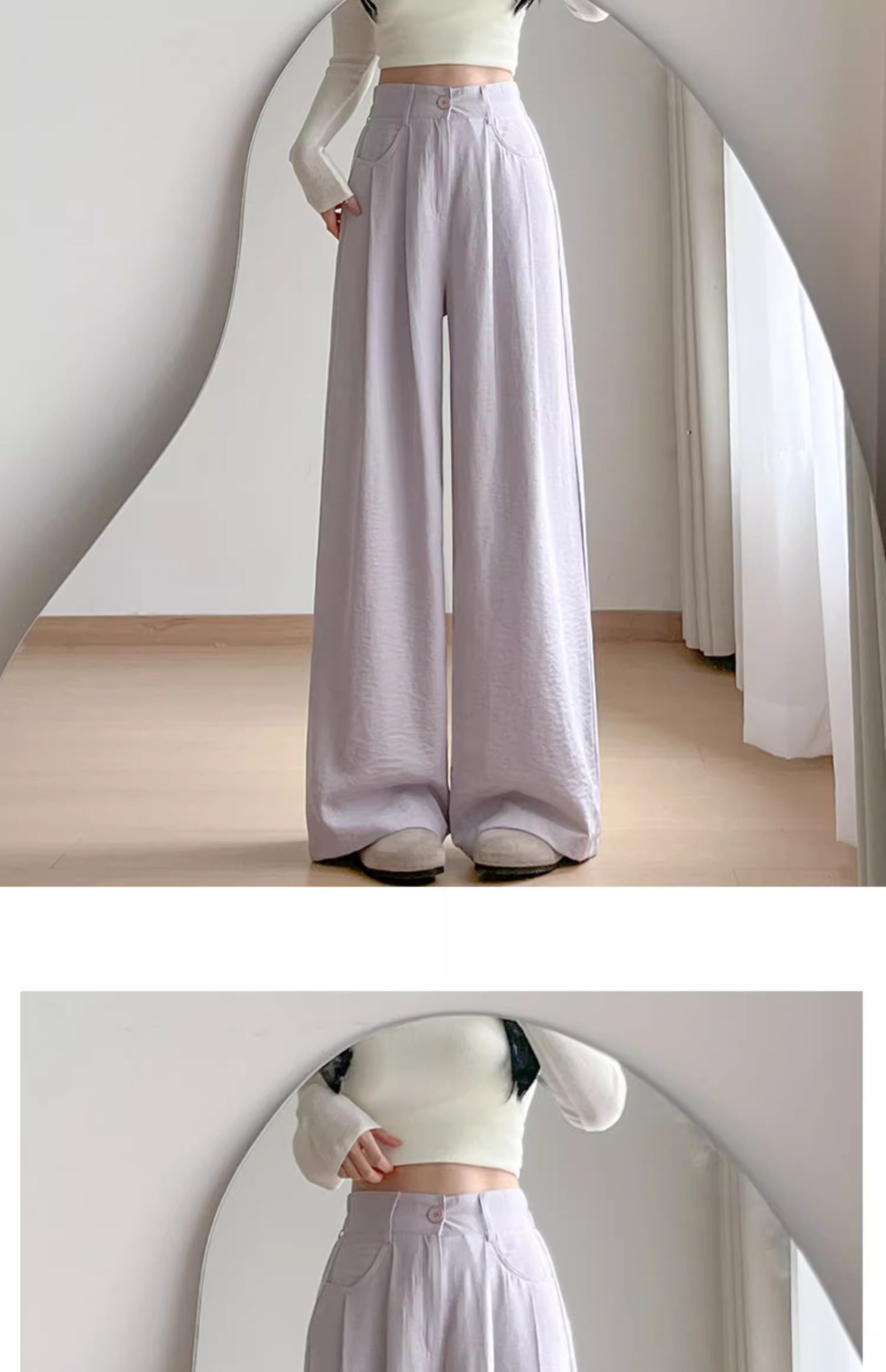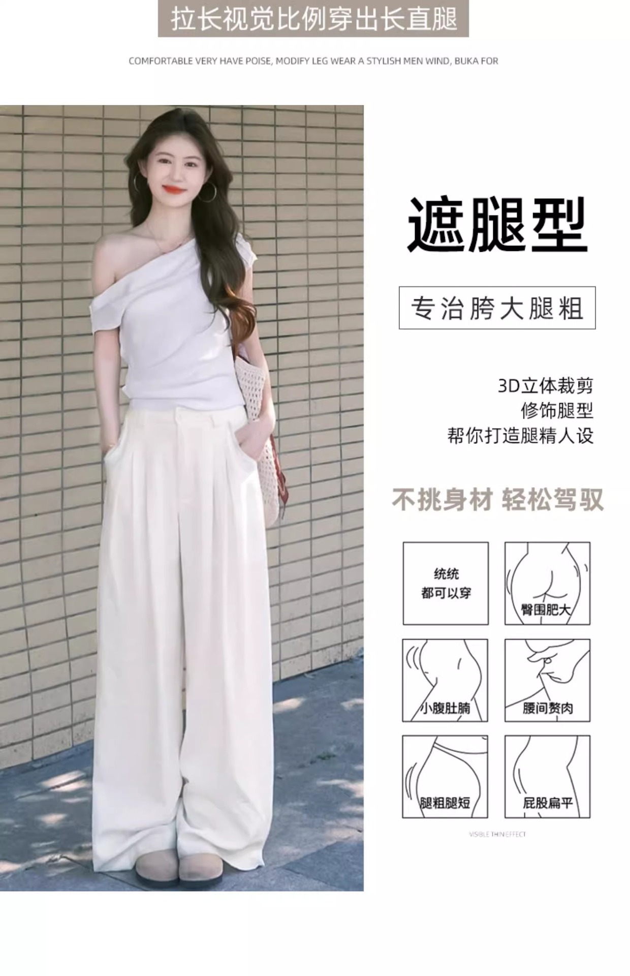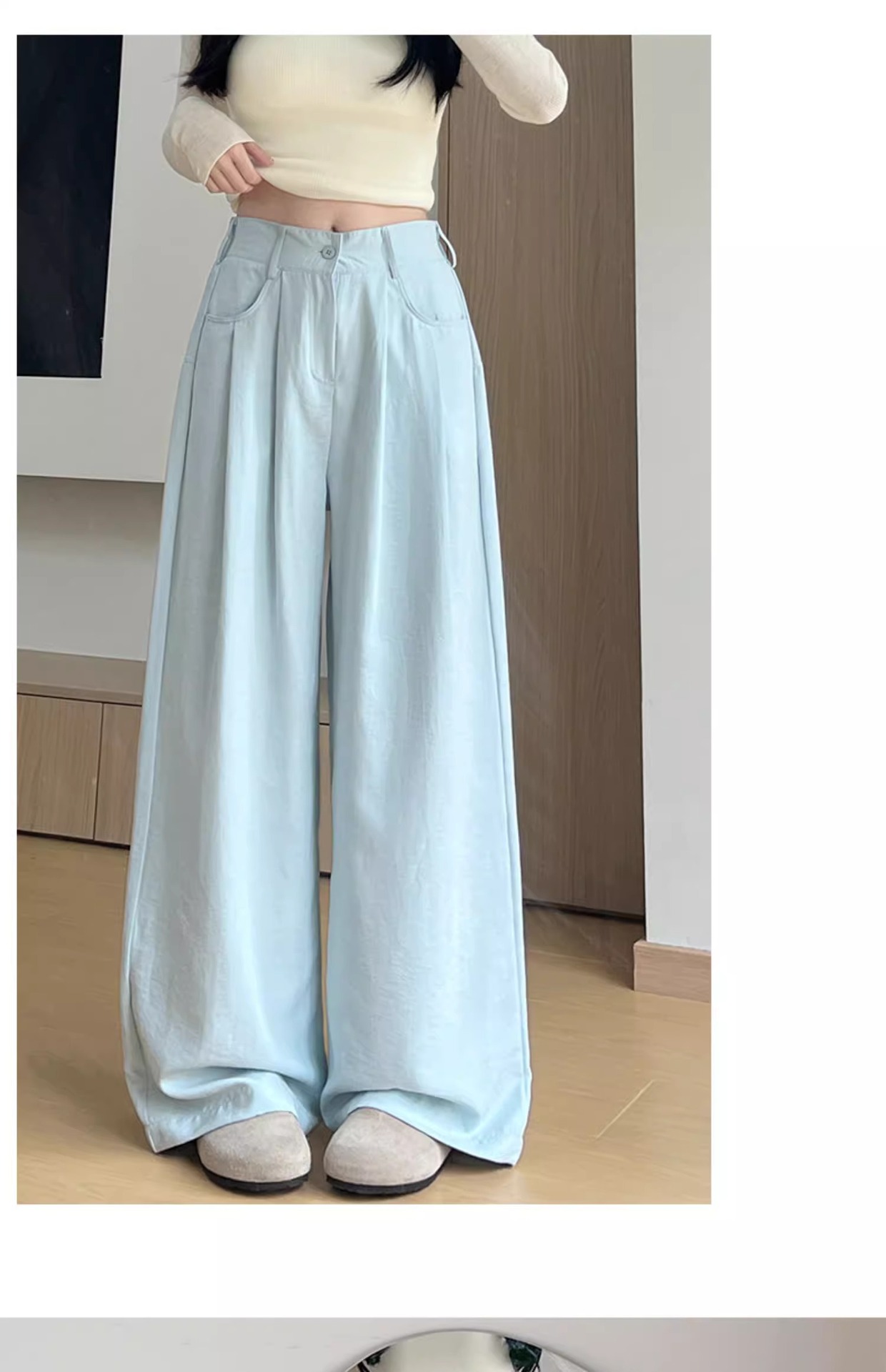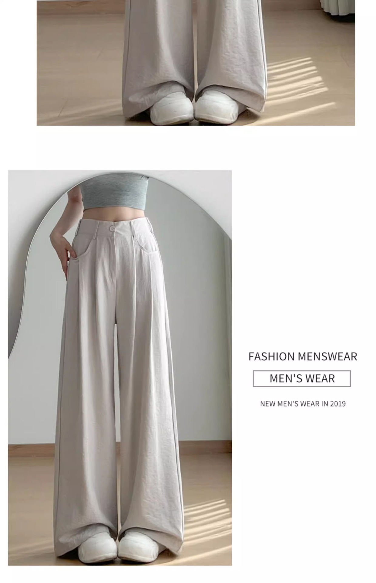 화이트 밀크 푸 바지 여성 여름 2025 새로운 높은 허리 느슨한 복용량 캐주얼 아이스 실크 넓은 다리 바지스토어 가기