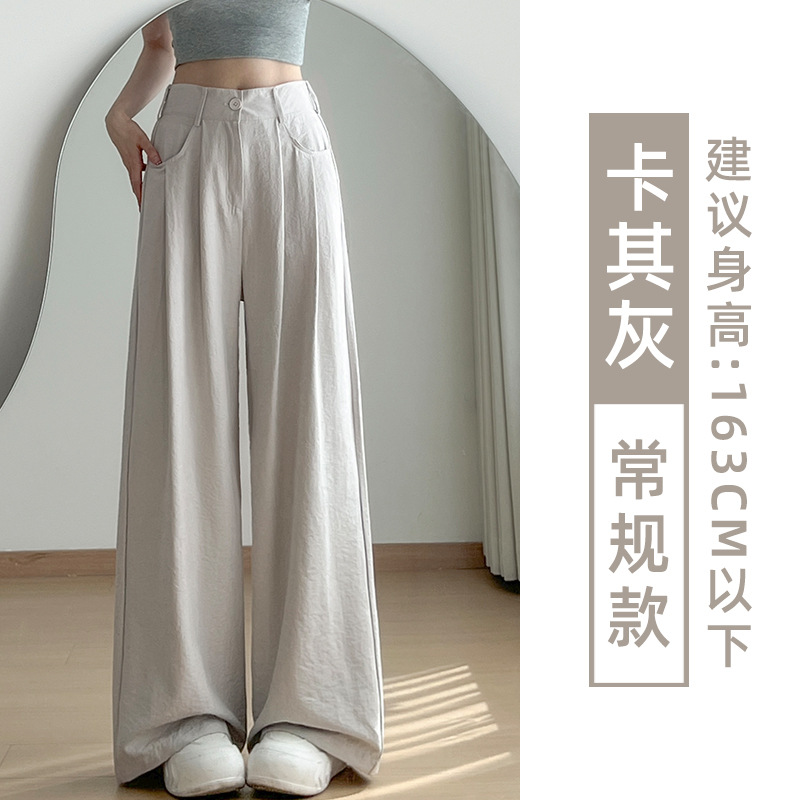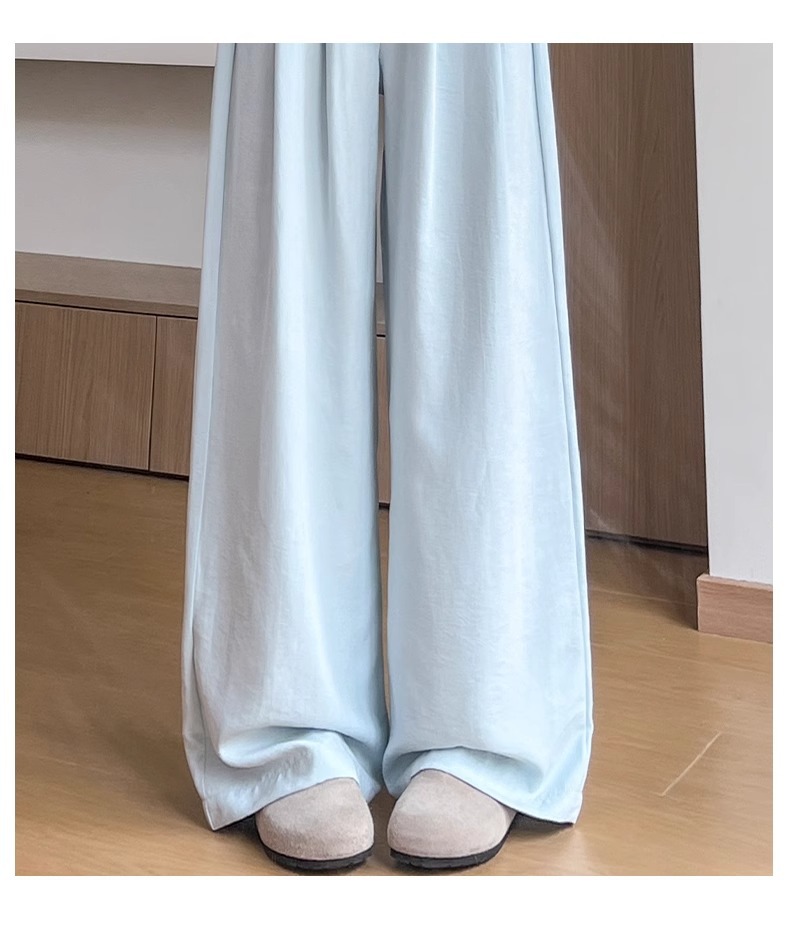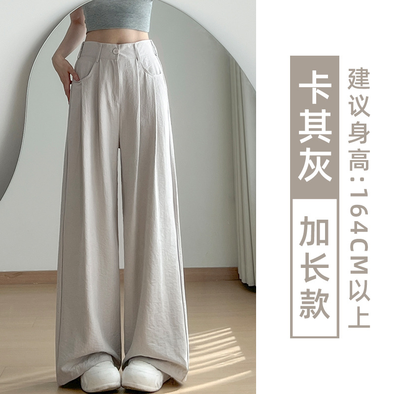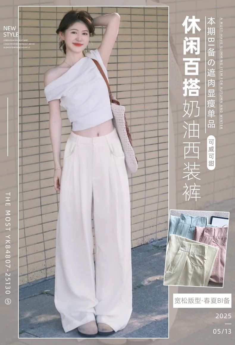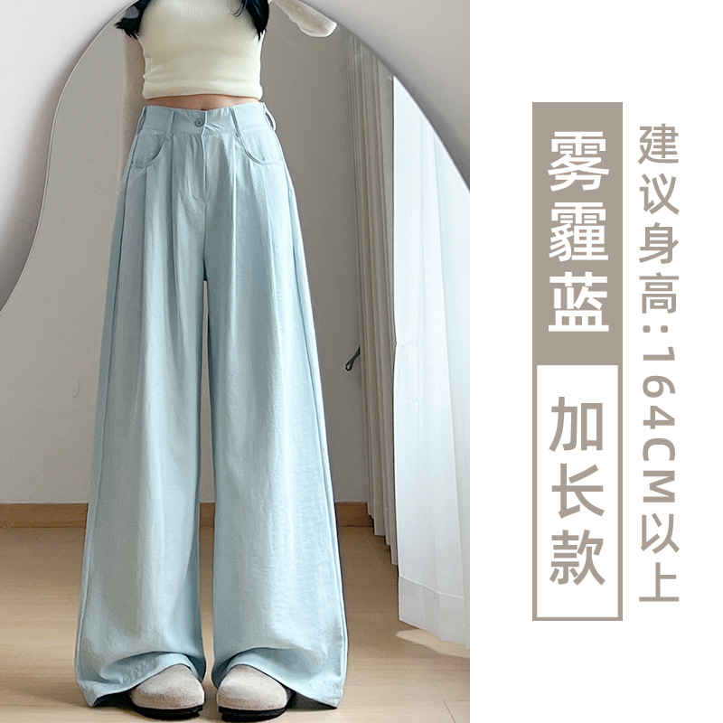 화이트 밀크 푸 바지 여성 여름 2025 새로운 높은 허리 느슨한 복용량 캐주얼 아이스 실크 넓은 다리 바지스토어 가기
