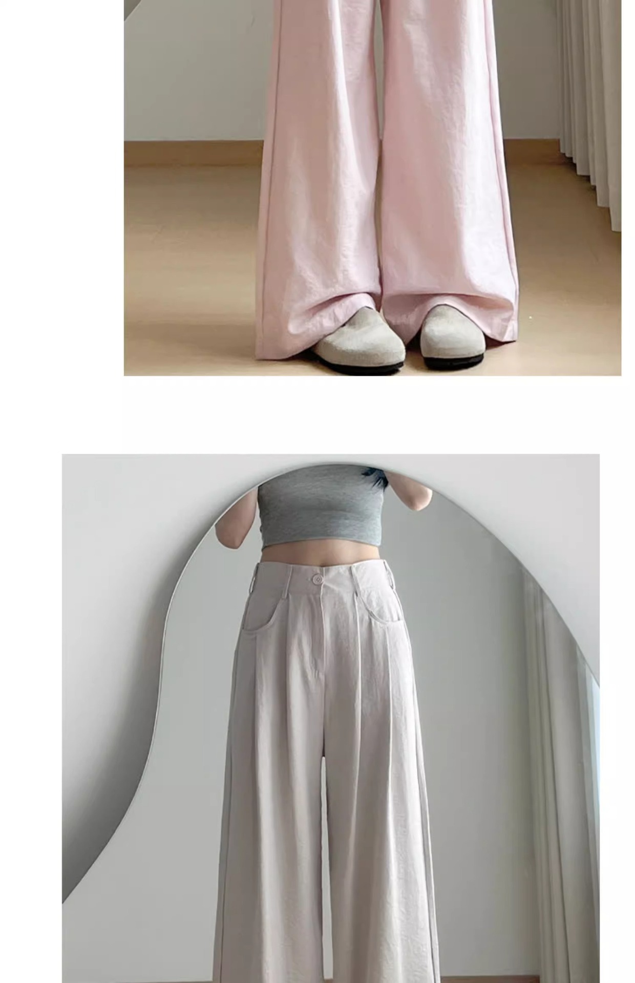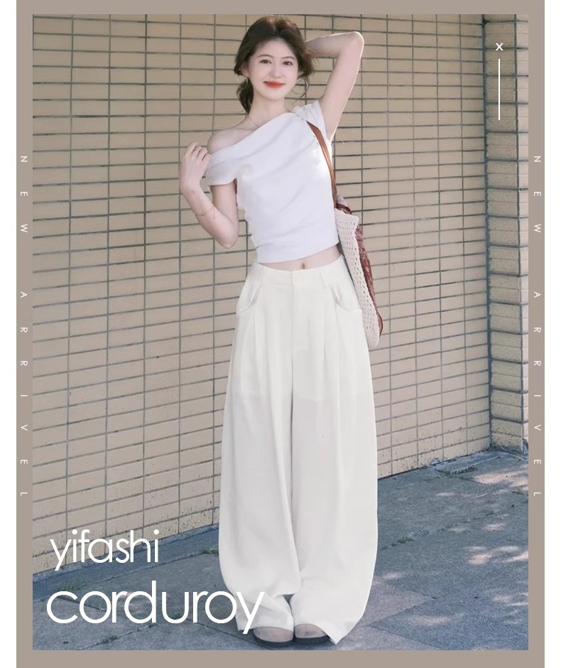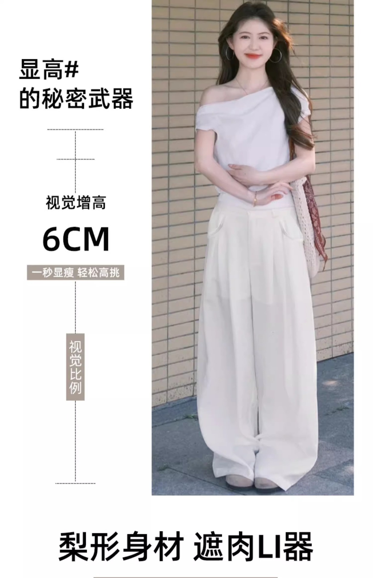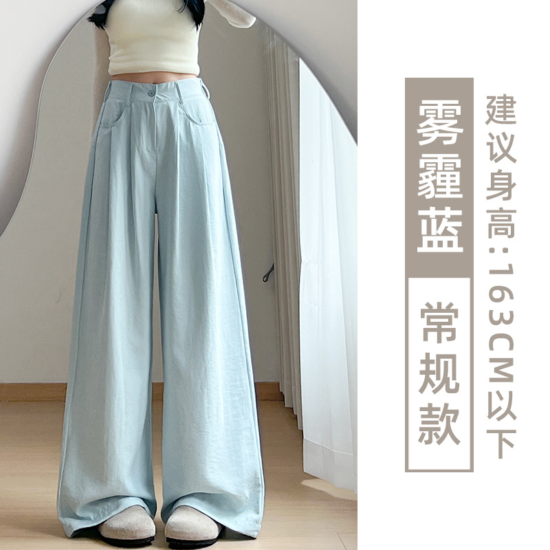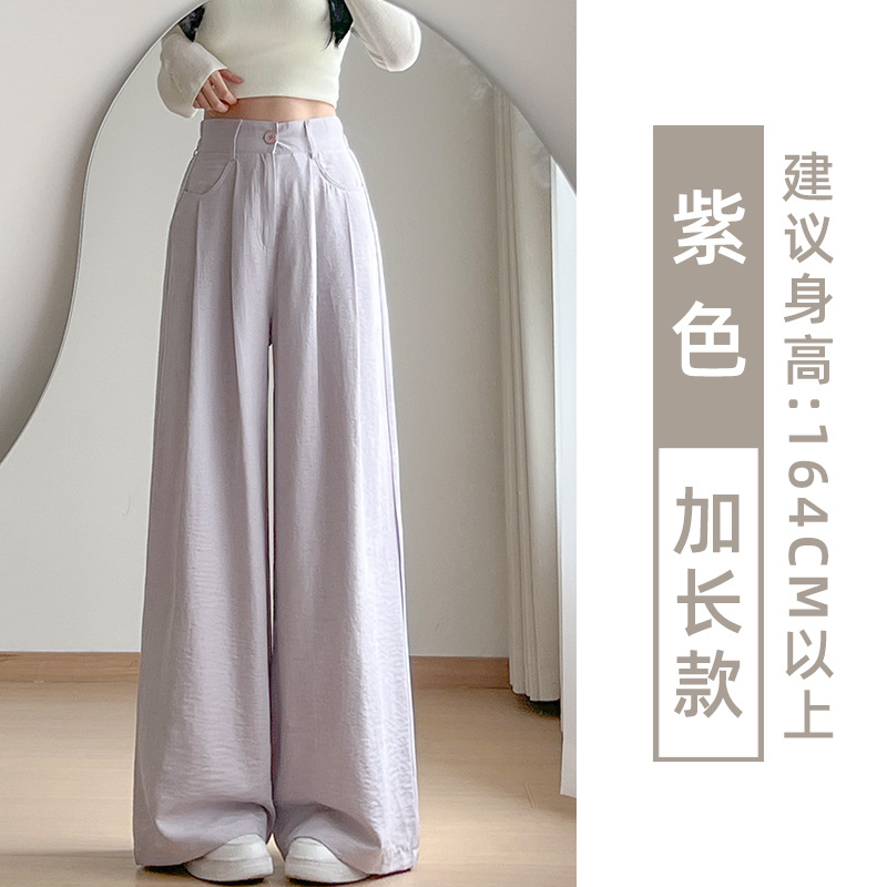 화이트 밀크 푸 바지 여성 여름 2025 새로운 높은 허리 느슨한 복용량 캐주얼 아이스 실크 넓은 다리 바지스토어 가기