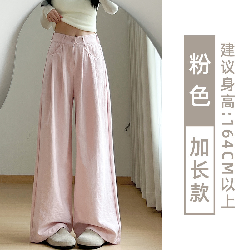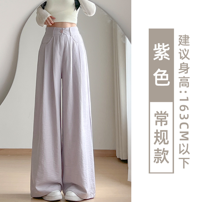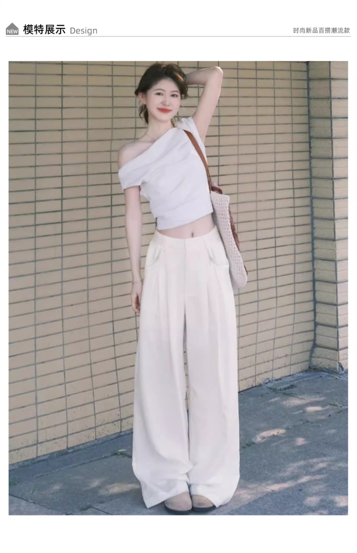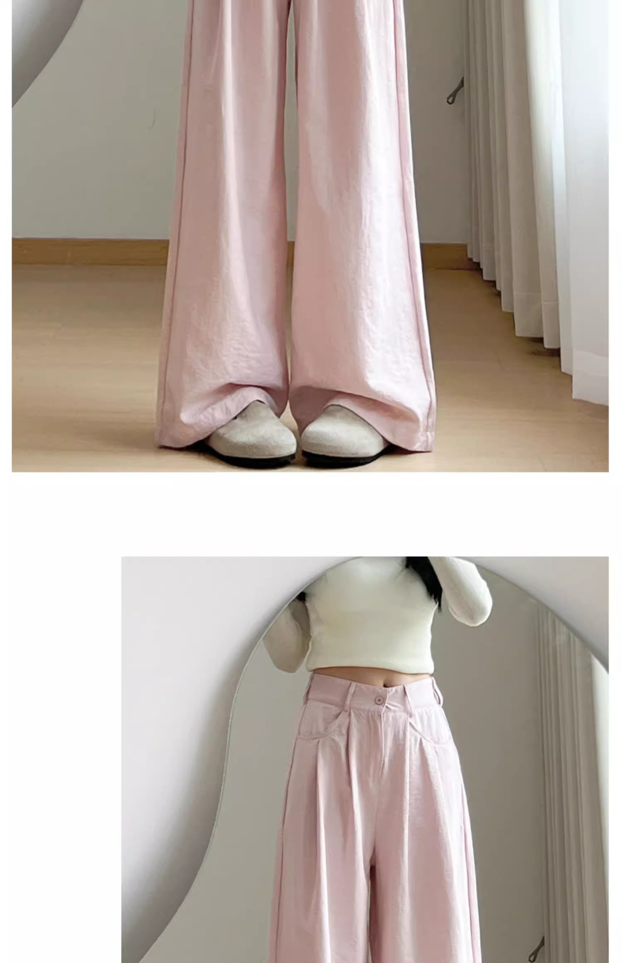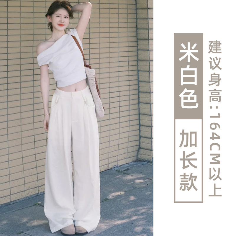 화이트 밀크 푸 바지 여성 여름 2025 새로운 높은 허리 느슨한 복용량 캐주얼 아이스 실크 넓은 다리 바지