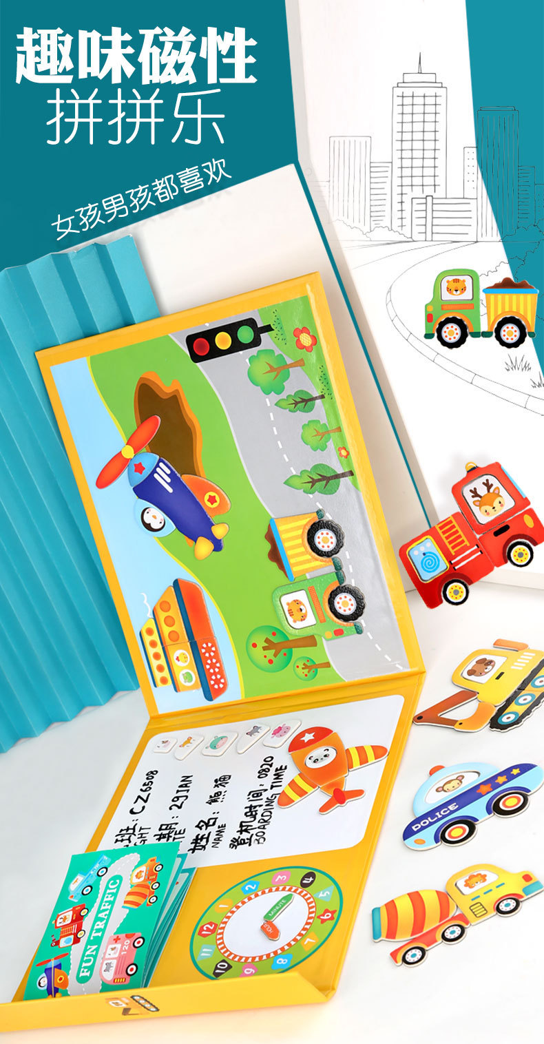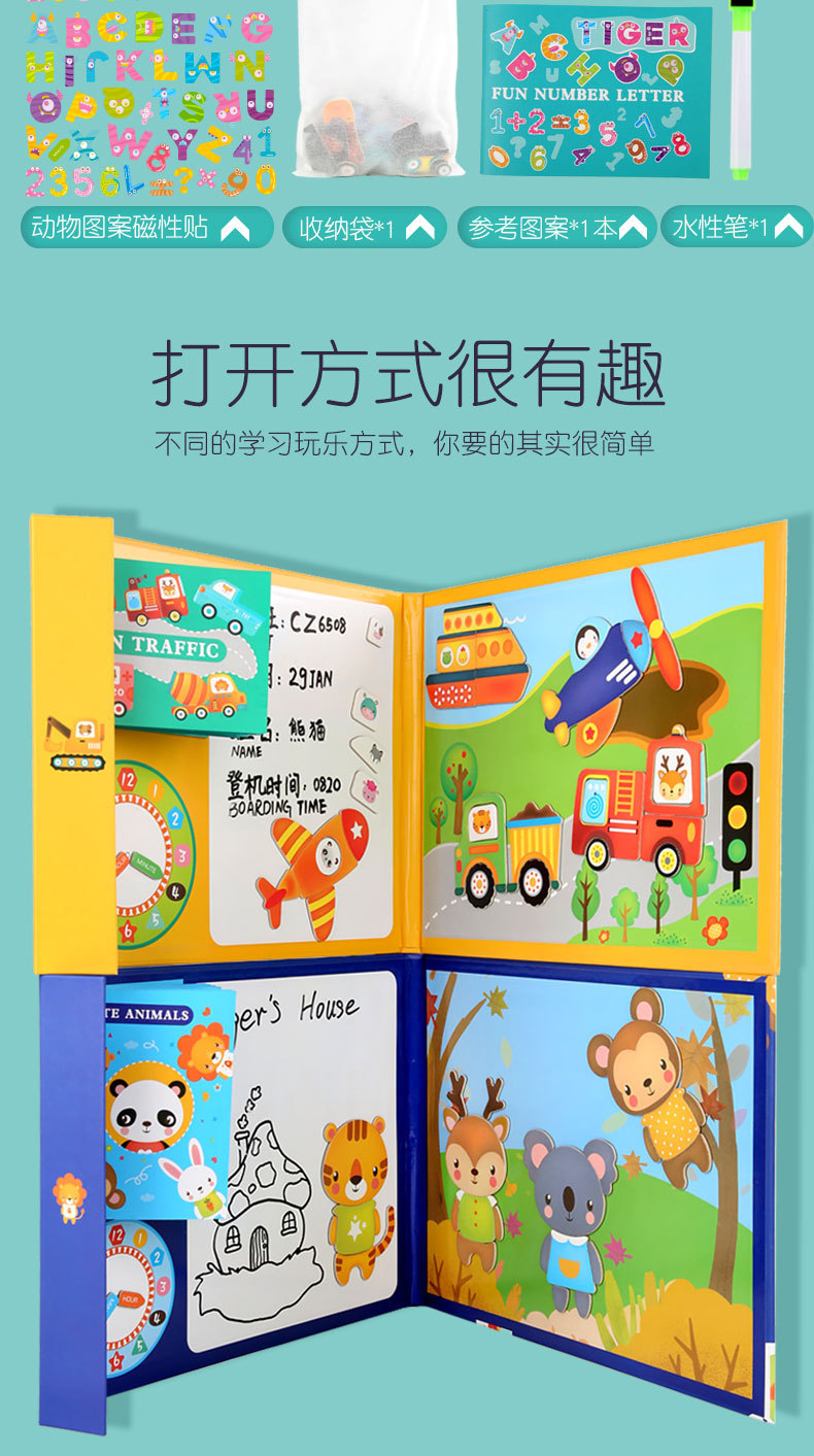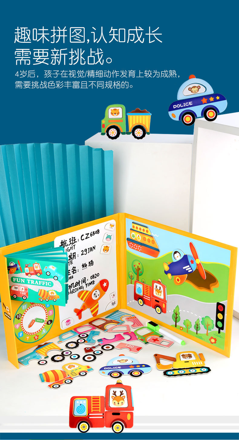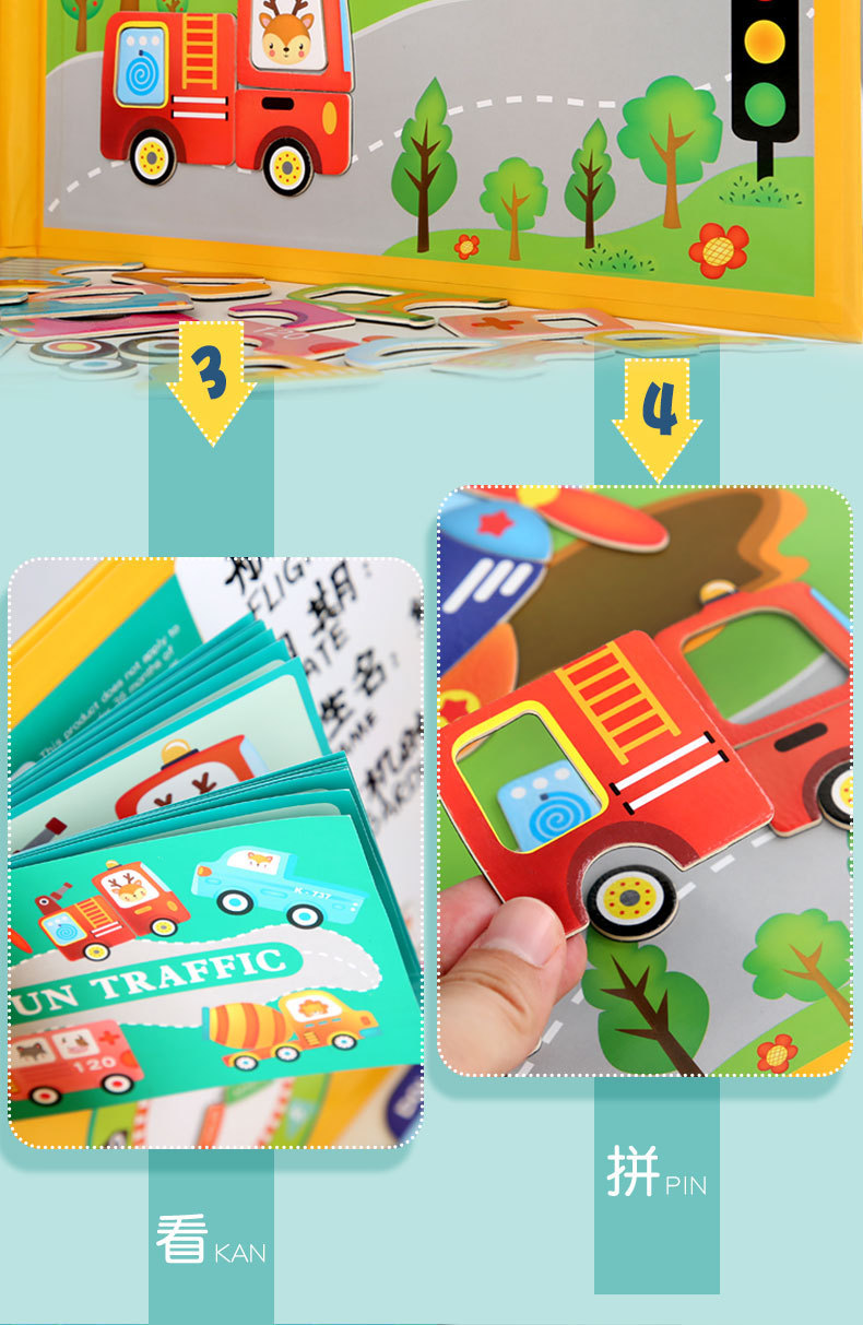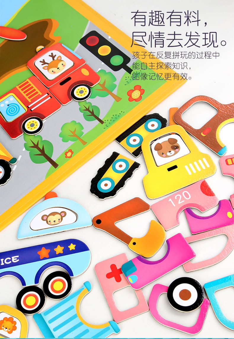 Weiwei Tiger 어린이 장난감 조기 교육 3D 입체 단어 번호 철자 계몽 동물 교통 나무 어린이 장난감스토어 가기