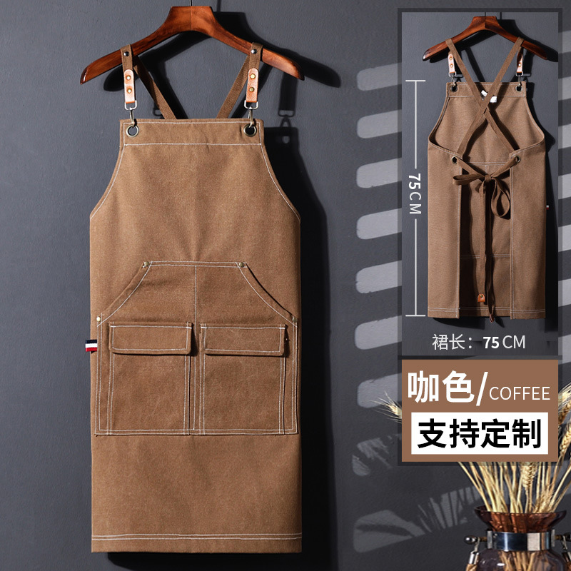 고급 두꺼운 방수 캔버스 바리스타 앞치마 맞춤형 로고 밀크 티 샵 바 바텐더 장인 작업복