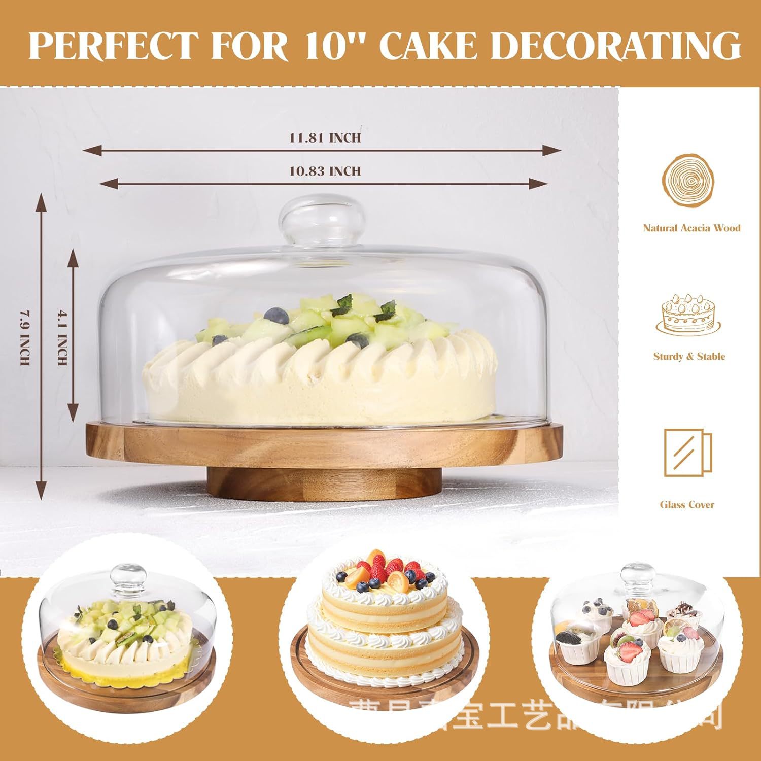나무 회전식 케이크 접시 디저트 트레이 투명 아크릴 커버 디저트 테이블 단단한 나무 과자 과일 디스플레이 트레이