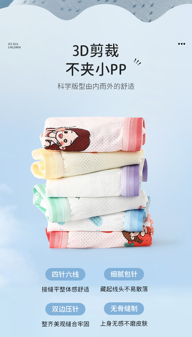 봄과 여름 어린이 나무 어린이 작은 얼음 피부 복서 팬티 남성과 여성 아기 만화 인쇄 항균 통기성 복서 팬티